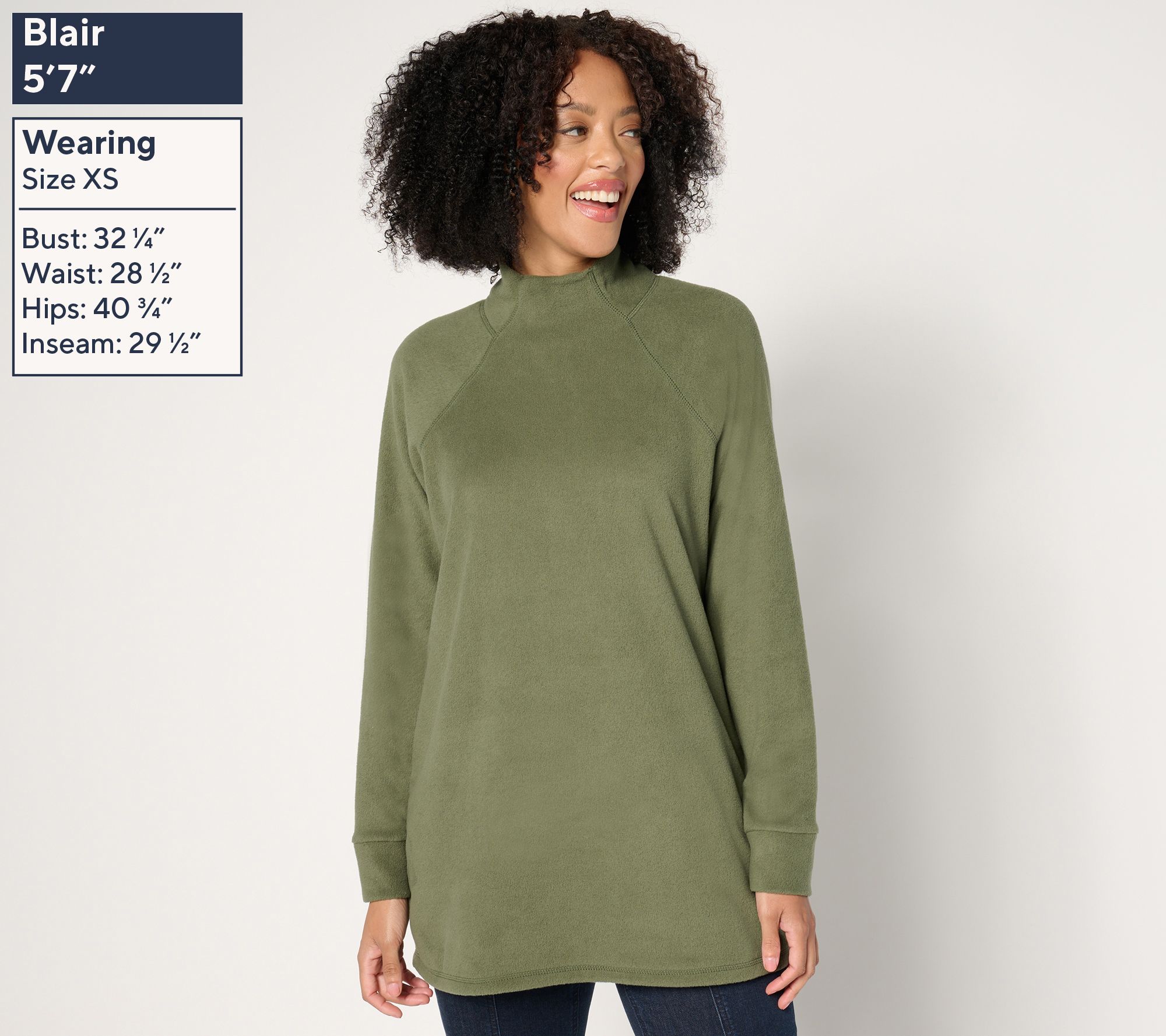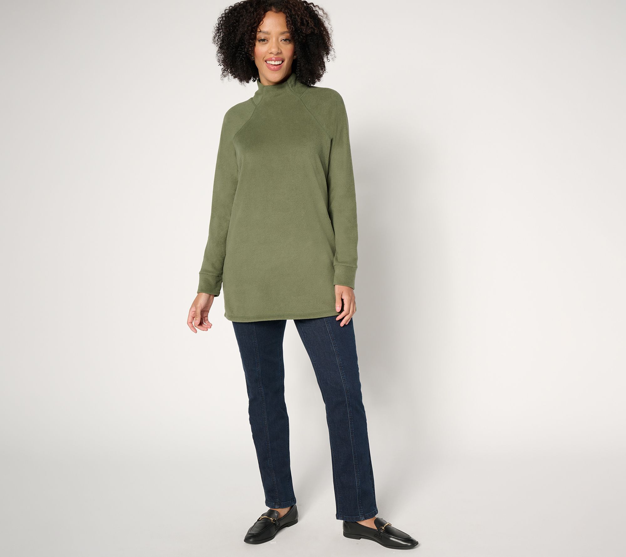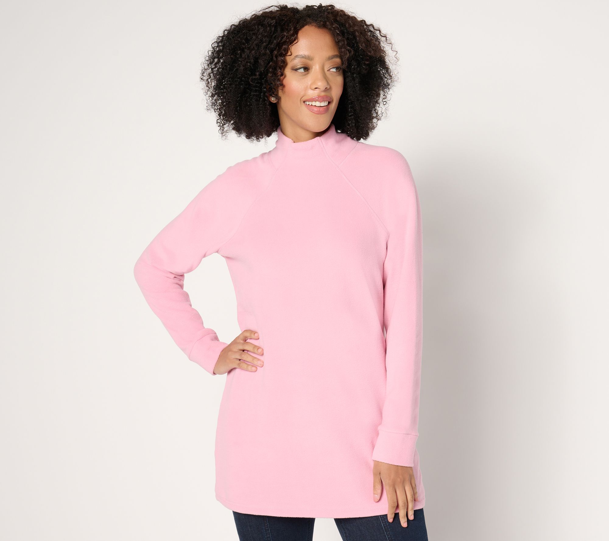 Here's a cozy choice for your busy days. This brushed fleece top offers the perfect blend of comfy coverage and flattering style with its funnel neck and legging-loving tunic length. From Denim & Co.® Fashions.
