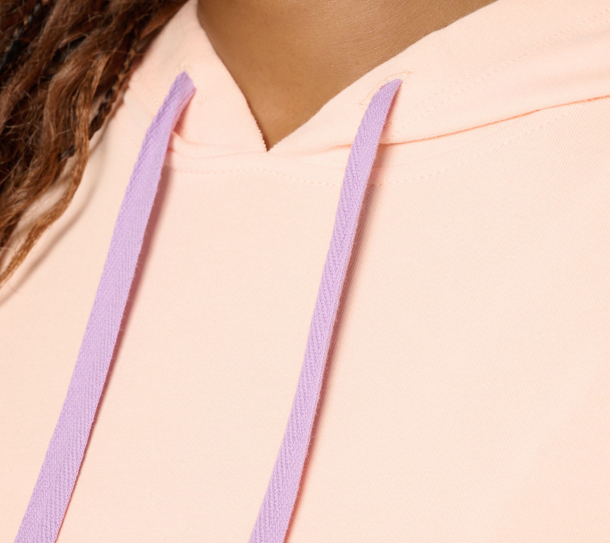 • Features: hood, pullover style, tunic length, 3/4-length sleeves, drawcord hood, kangaroo pocket, side slits, contrast whipstitch details