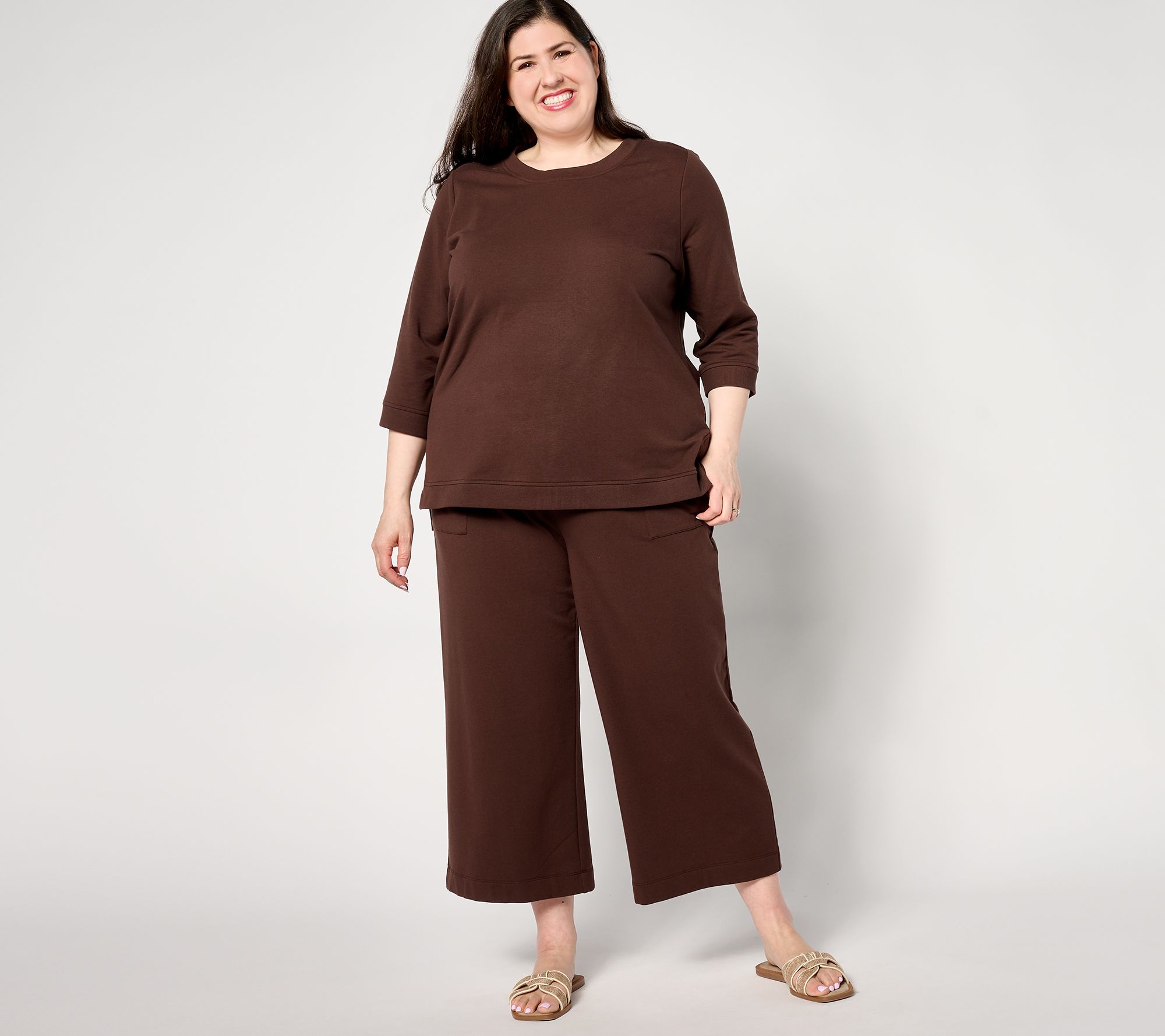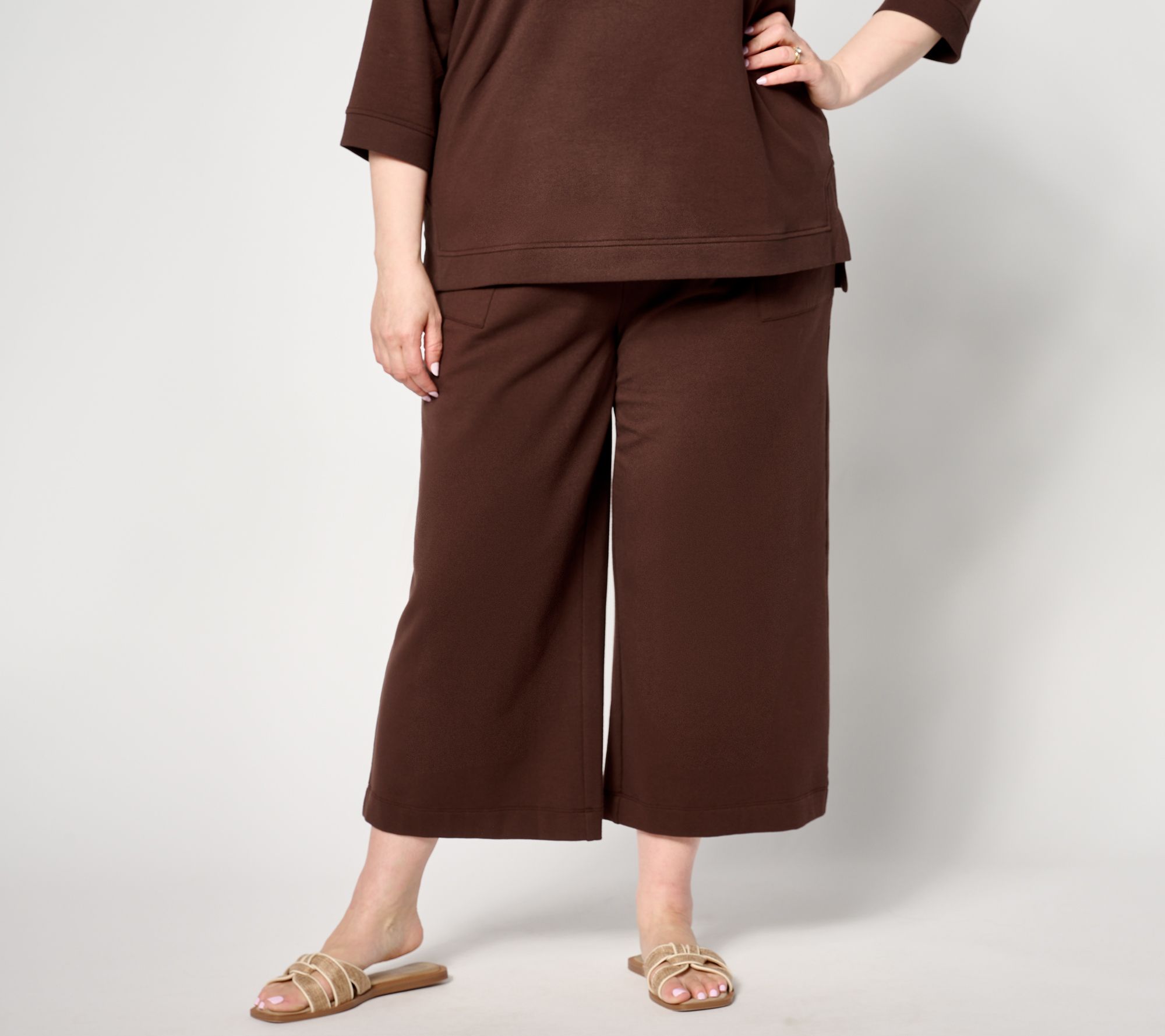 "As Is" Denim & Co. Active Reg French Terry Wide Leg Crop Pant