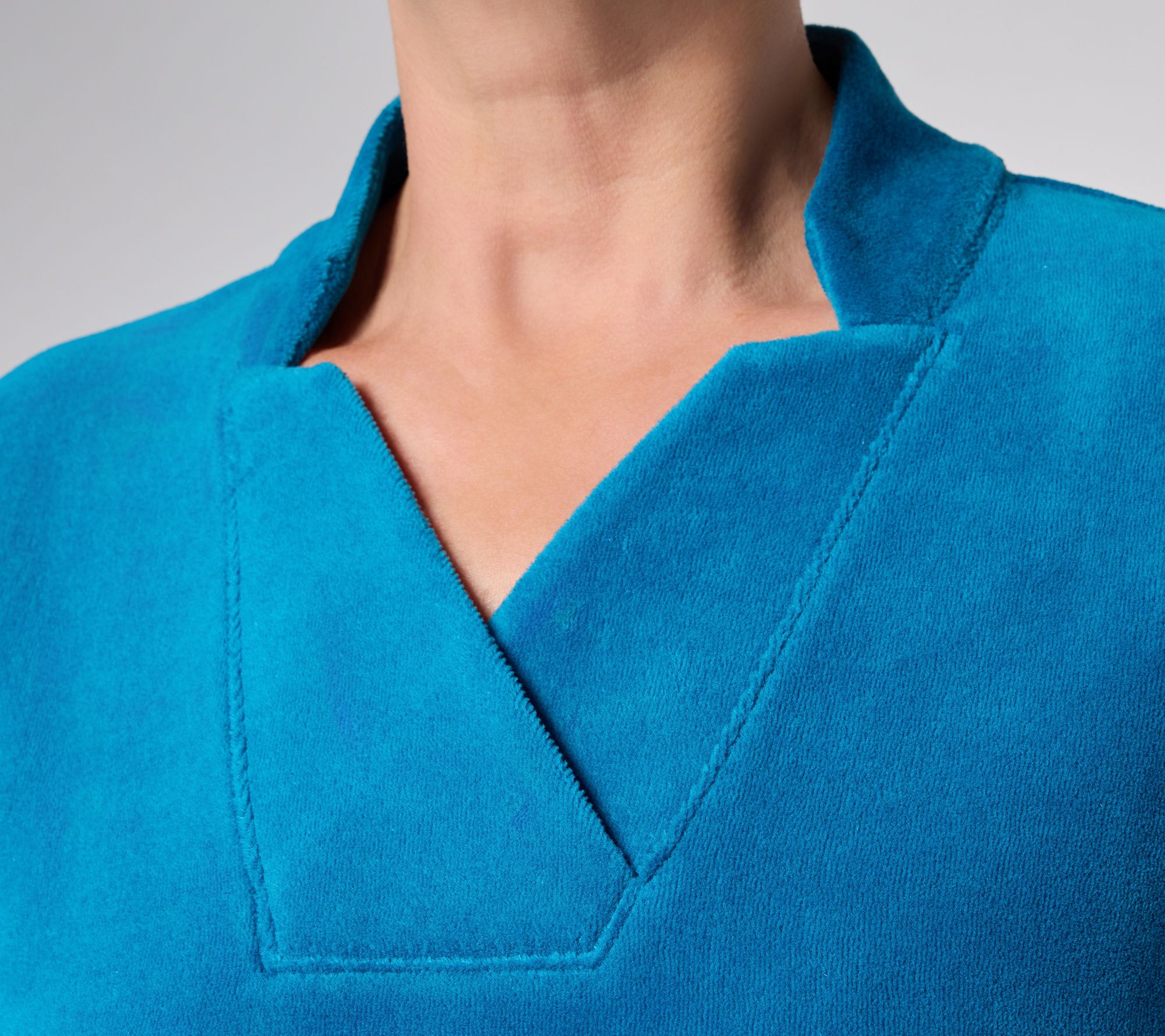 "As Is" Denim & Co. Active Reg Velour Notch Collar Tunic