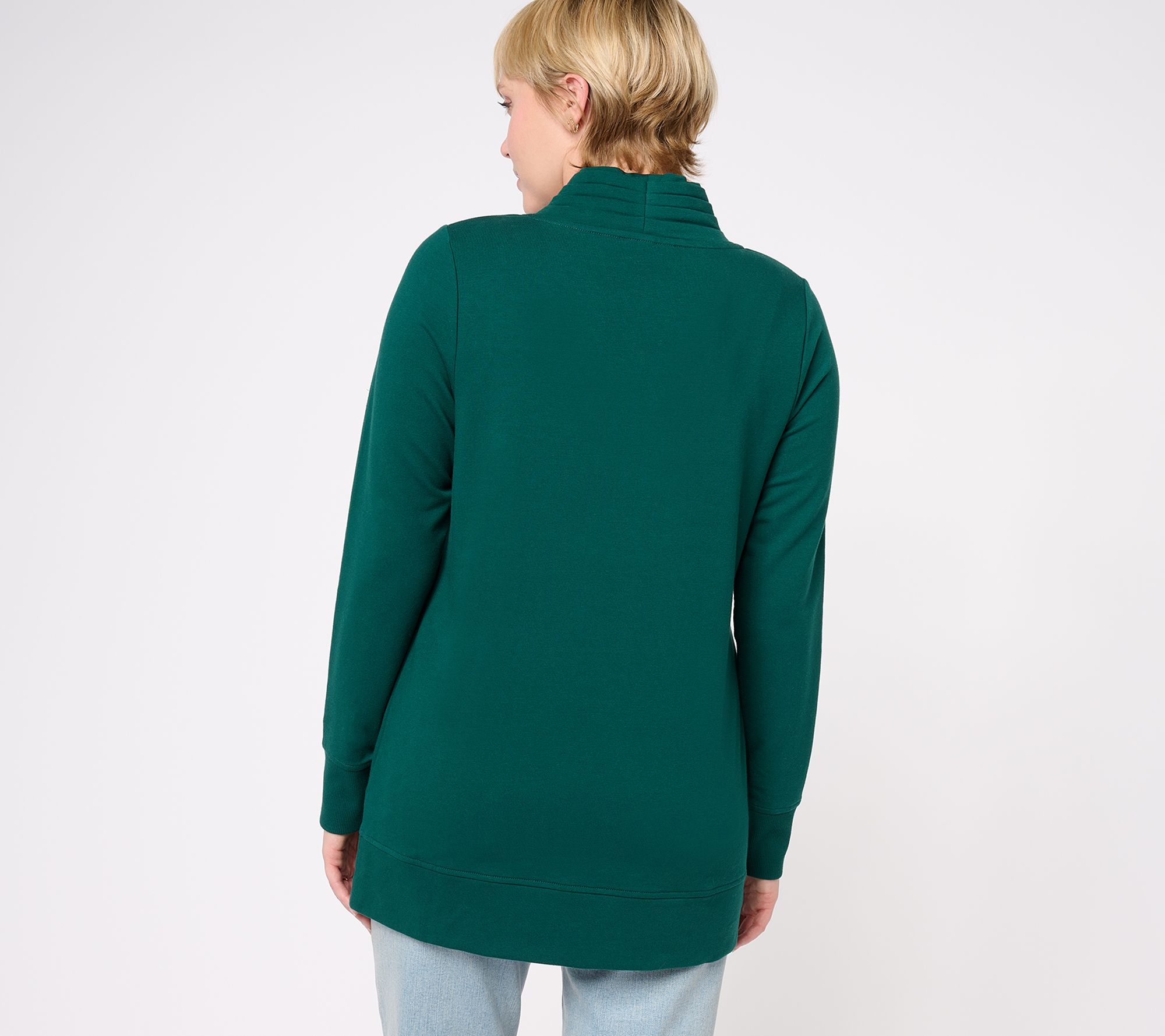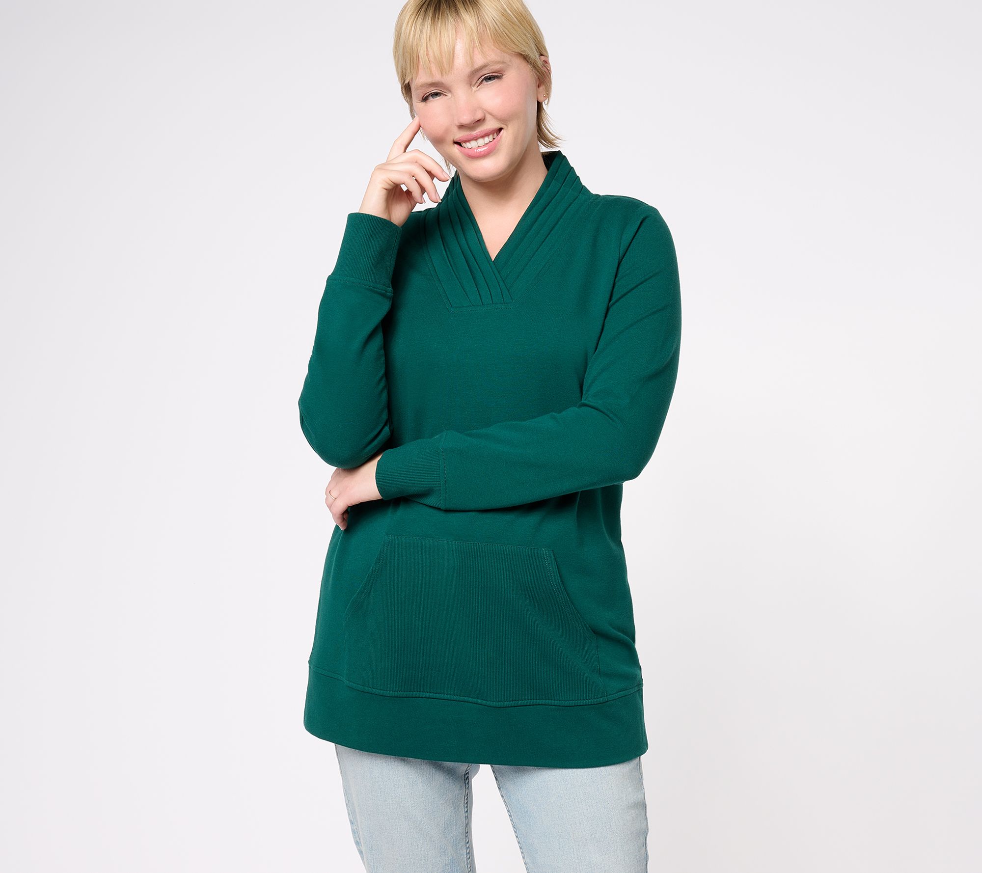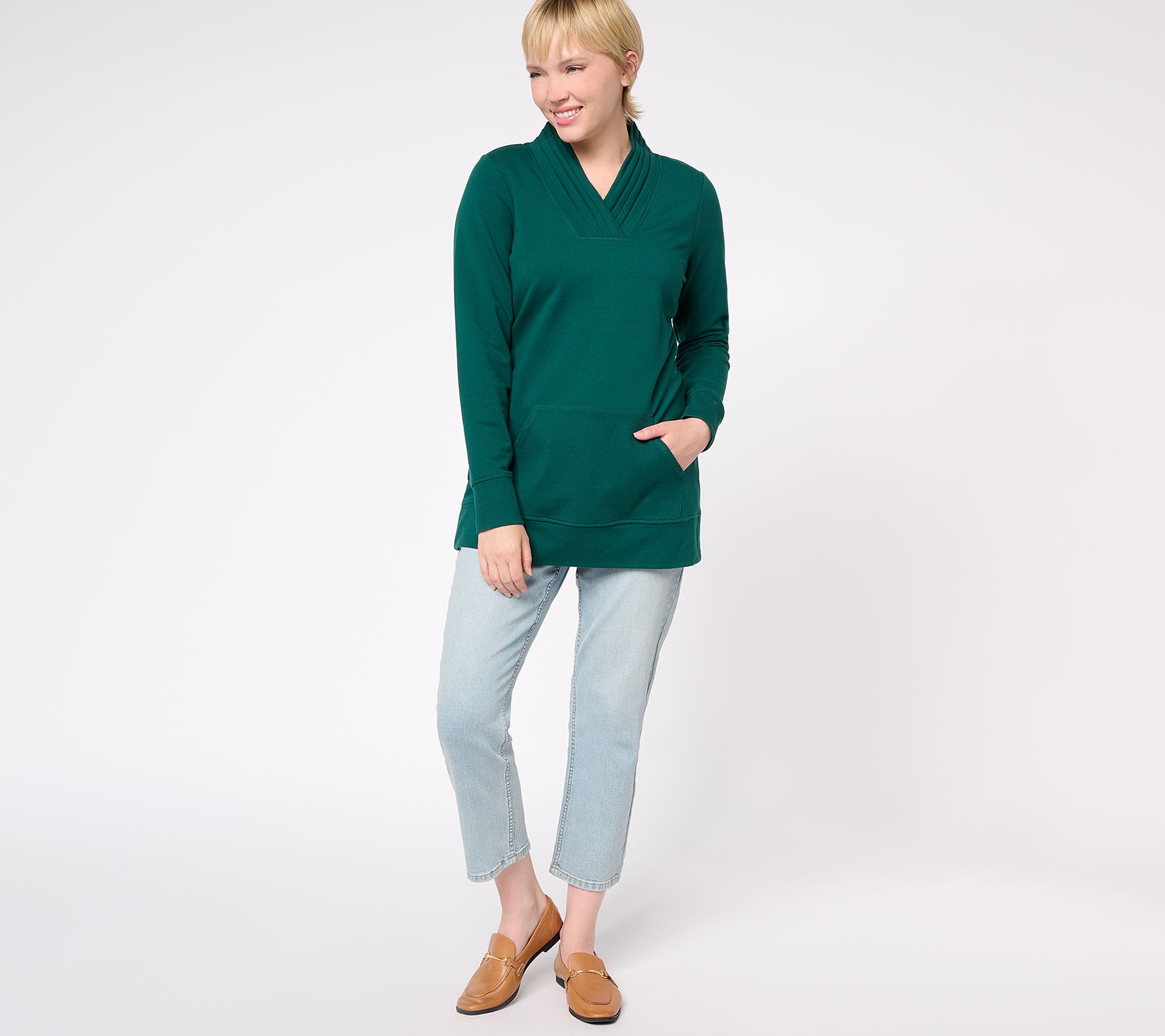 You crave comfort, but the occasion calls for a bit more polish. What to do. What to do. Then, you remember you have this cozy French terry tunic with pretty pleated details waiting in your closet, and all the warm and fuzzy feels come rushing in as you (and your confidence) step out the door. From Denim & Co.® Fashions.