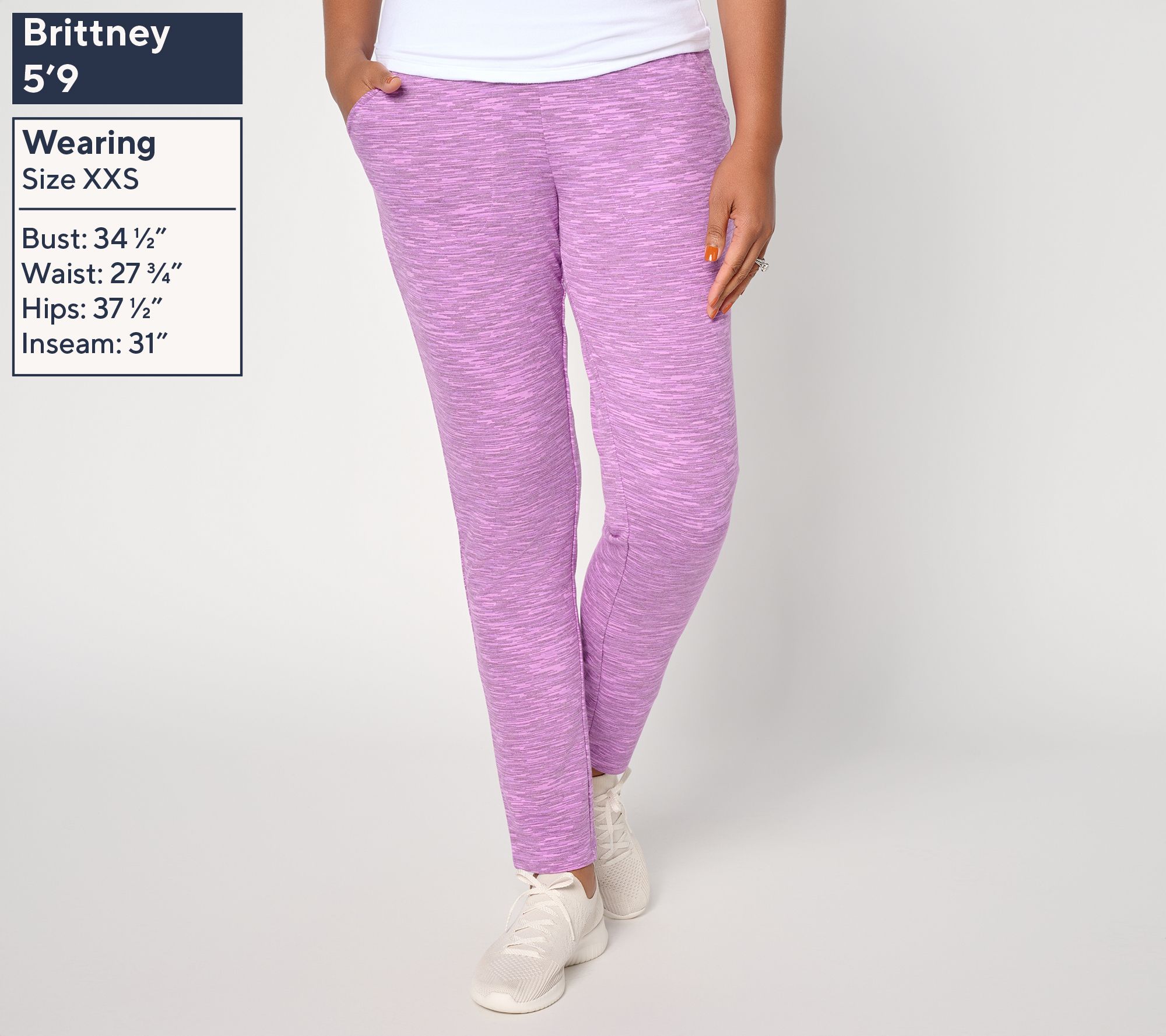 Active day? You can dress comfortably and still look cute with Denim & Co.'s pocketed knit pants. Take on morning errands or work from home in a soft silhouette that flatters with a slim straight leg and space-dyed print. Head to yoga class or hit the neighborhood coffee spot in a full-length pant that moves with you wherever the day leads. From Denim & Co.® Fashions..