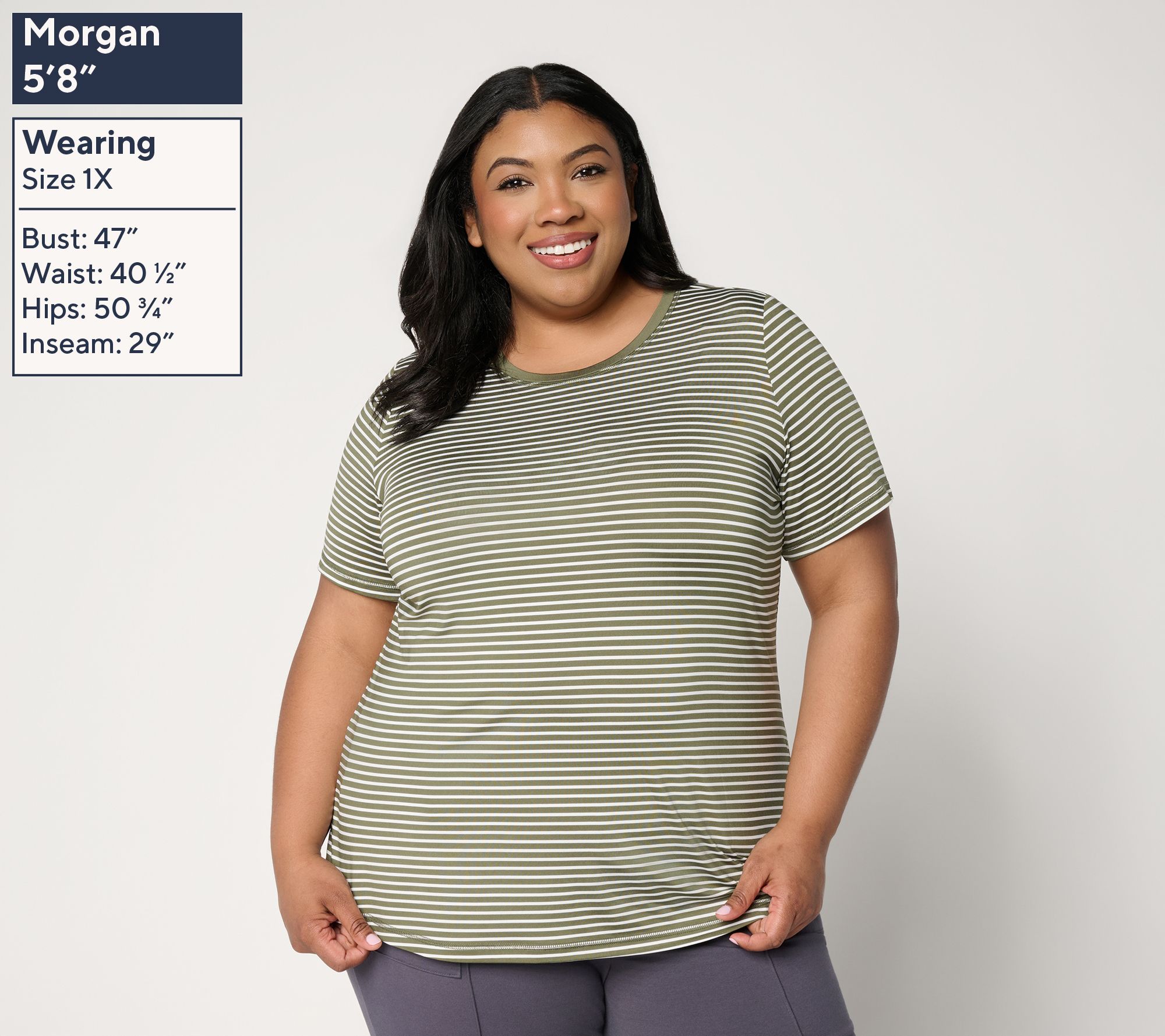 "As Is" Denim & Co. Active Striped Cool to the Touch Top