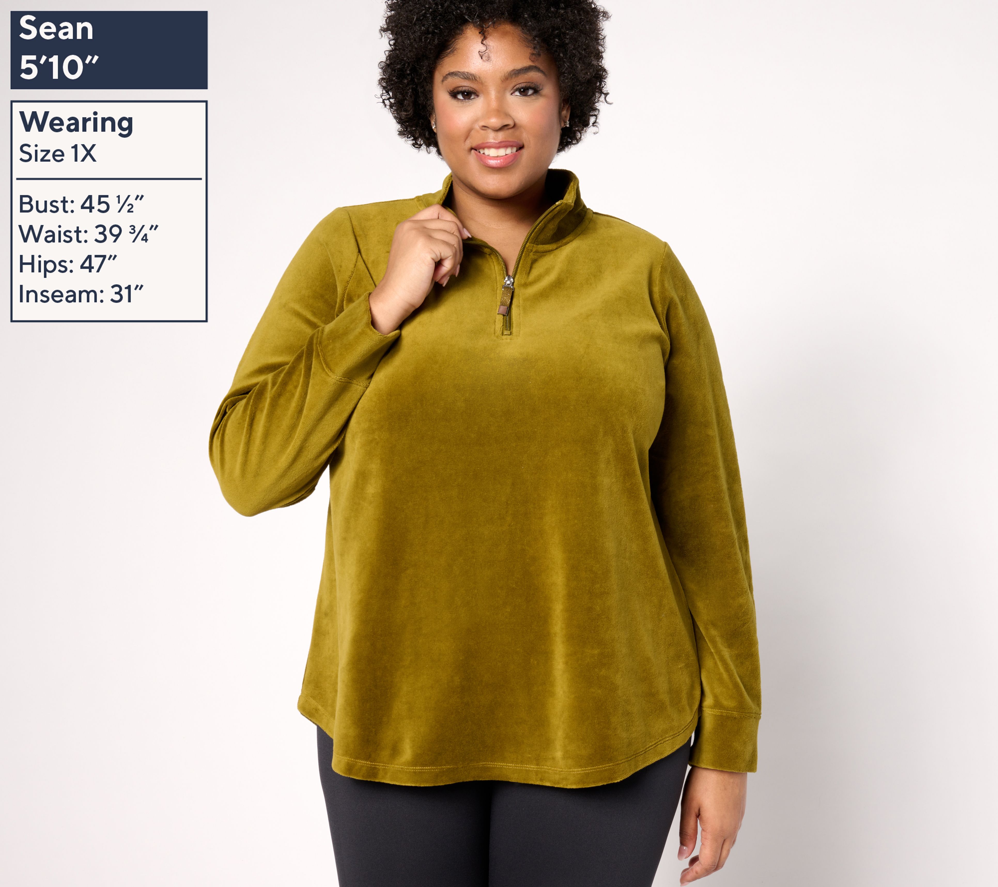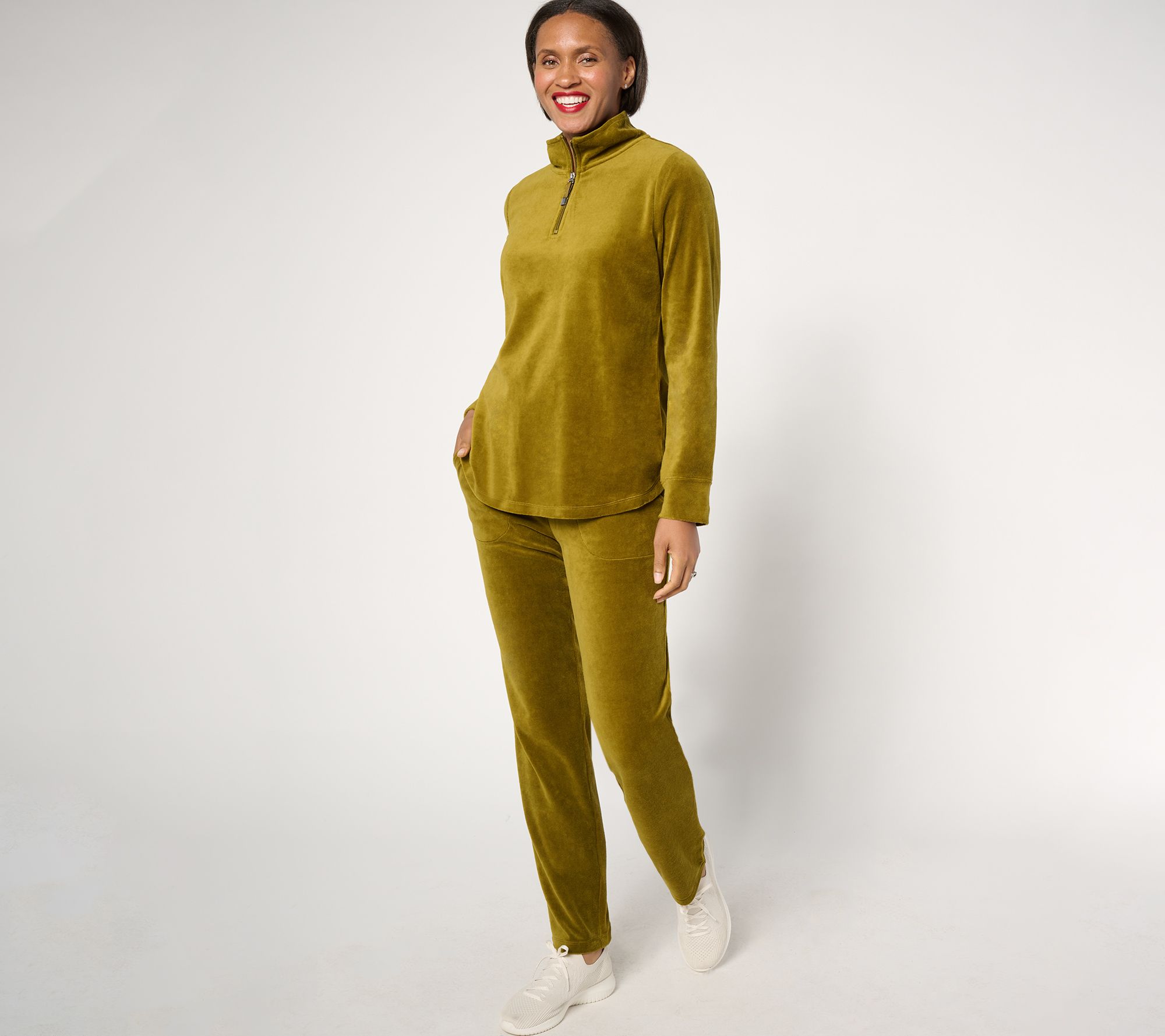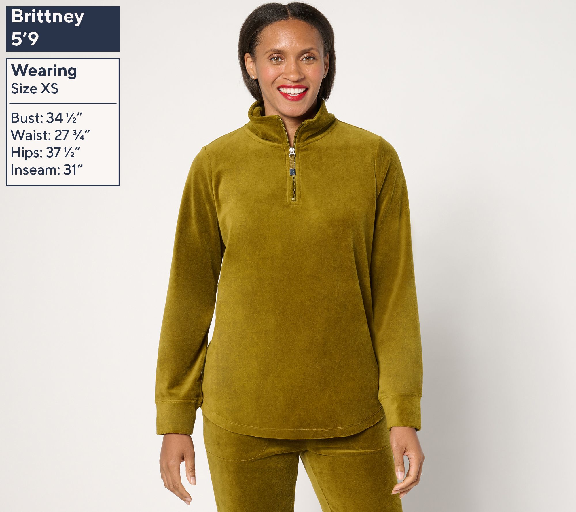 "As Is" Denim & Co. Active Velour Quarter Zip Top