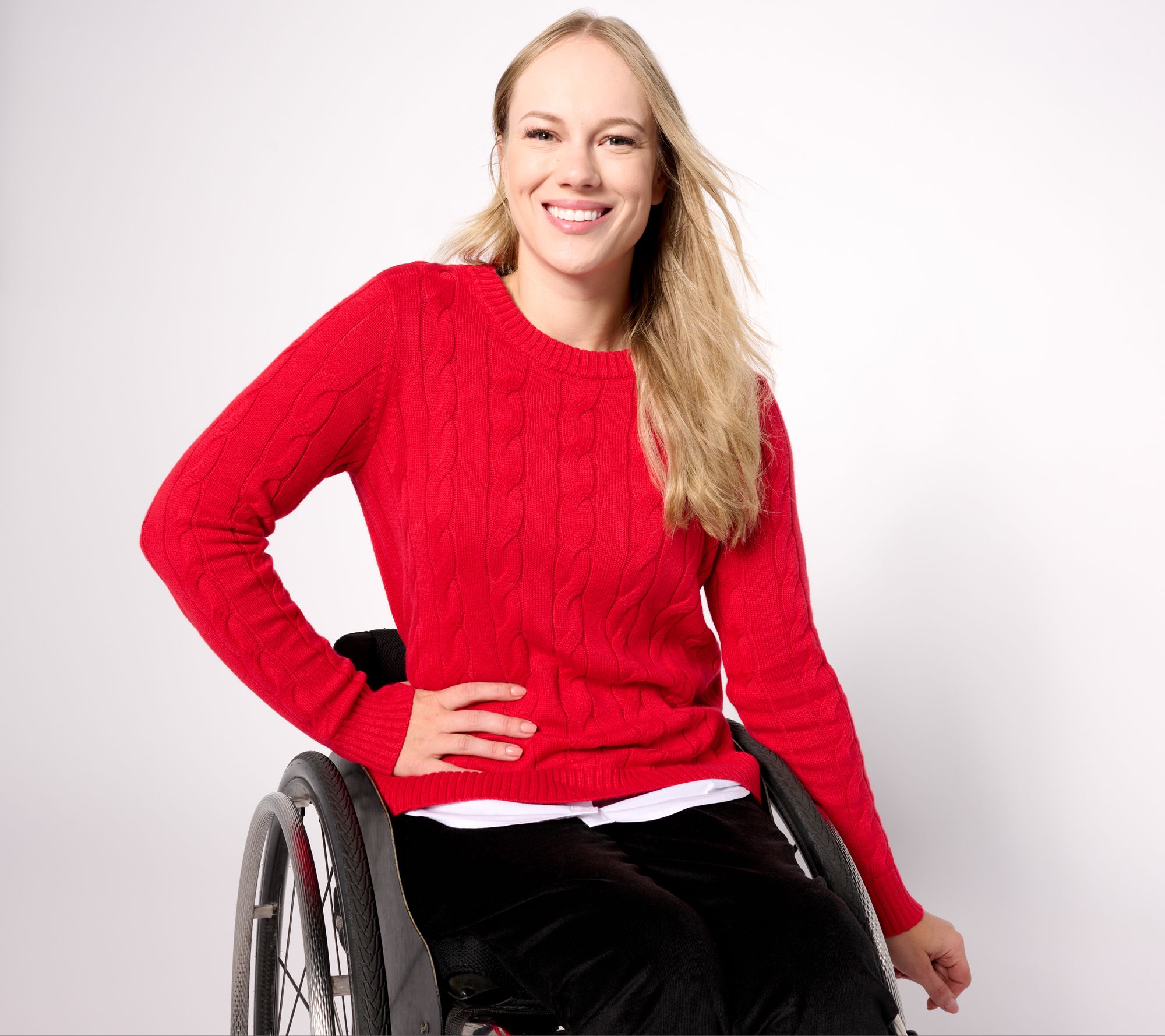 "As Is" Denim & Co. Adaptive Crewneck Long-Sleeve Sweater
