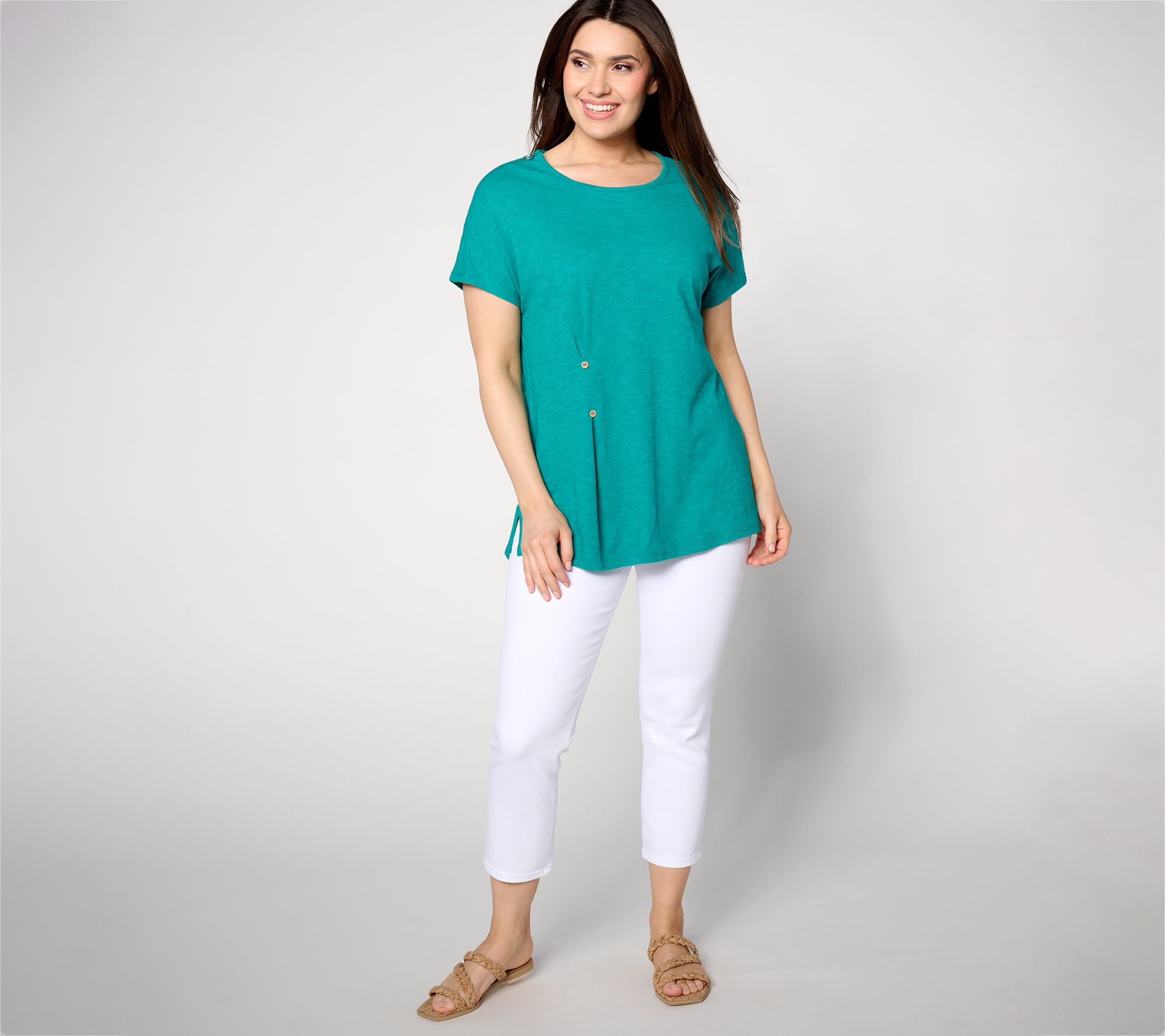 Summer style? Right this way! This adaptive linen-blend tunic quickly becomes a go-to, thanks an invisible zip closure at the neckline that supports easier dressing. From Denim & Co.® Fashions.
