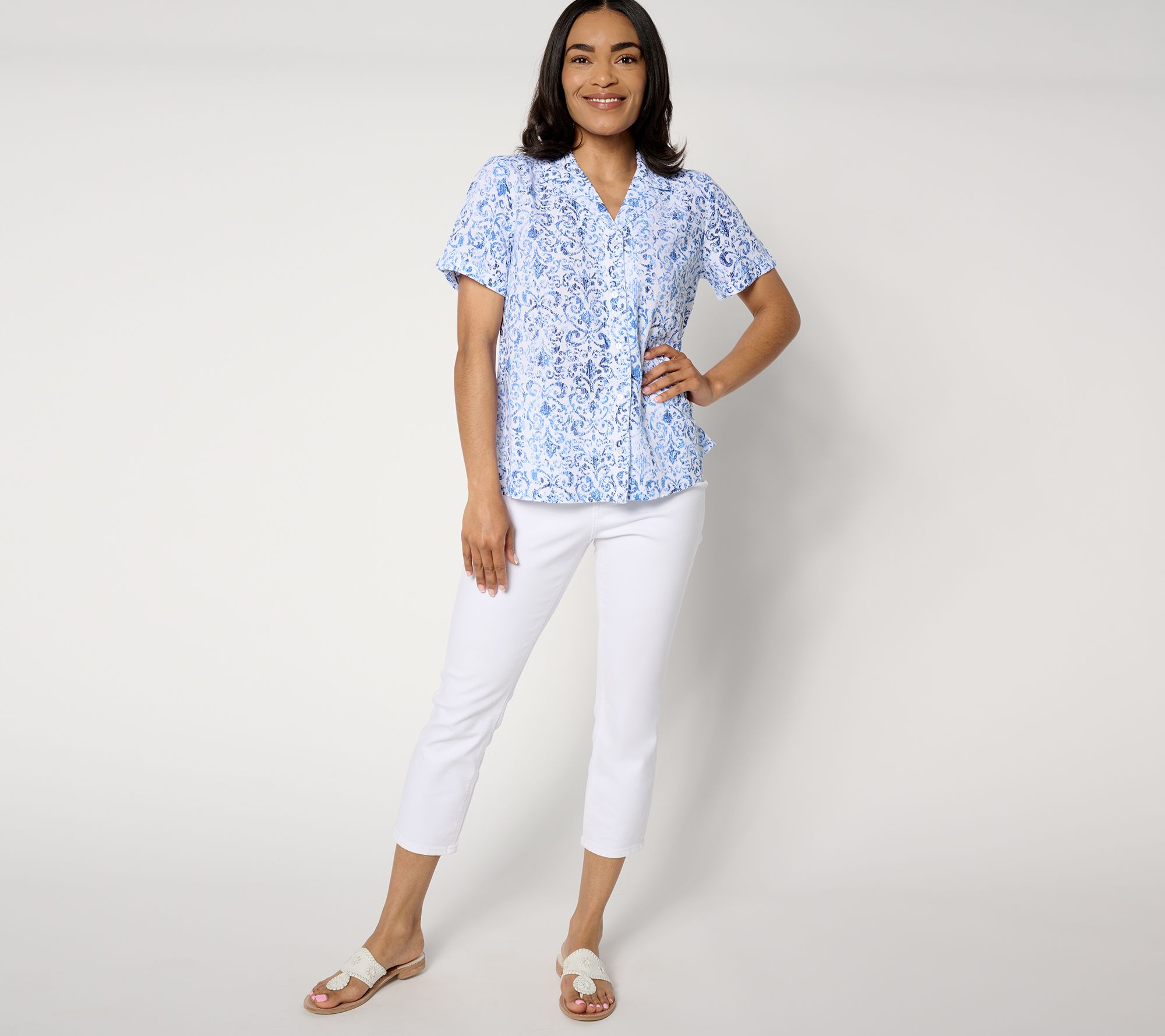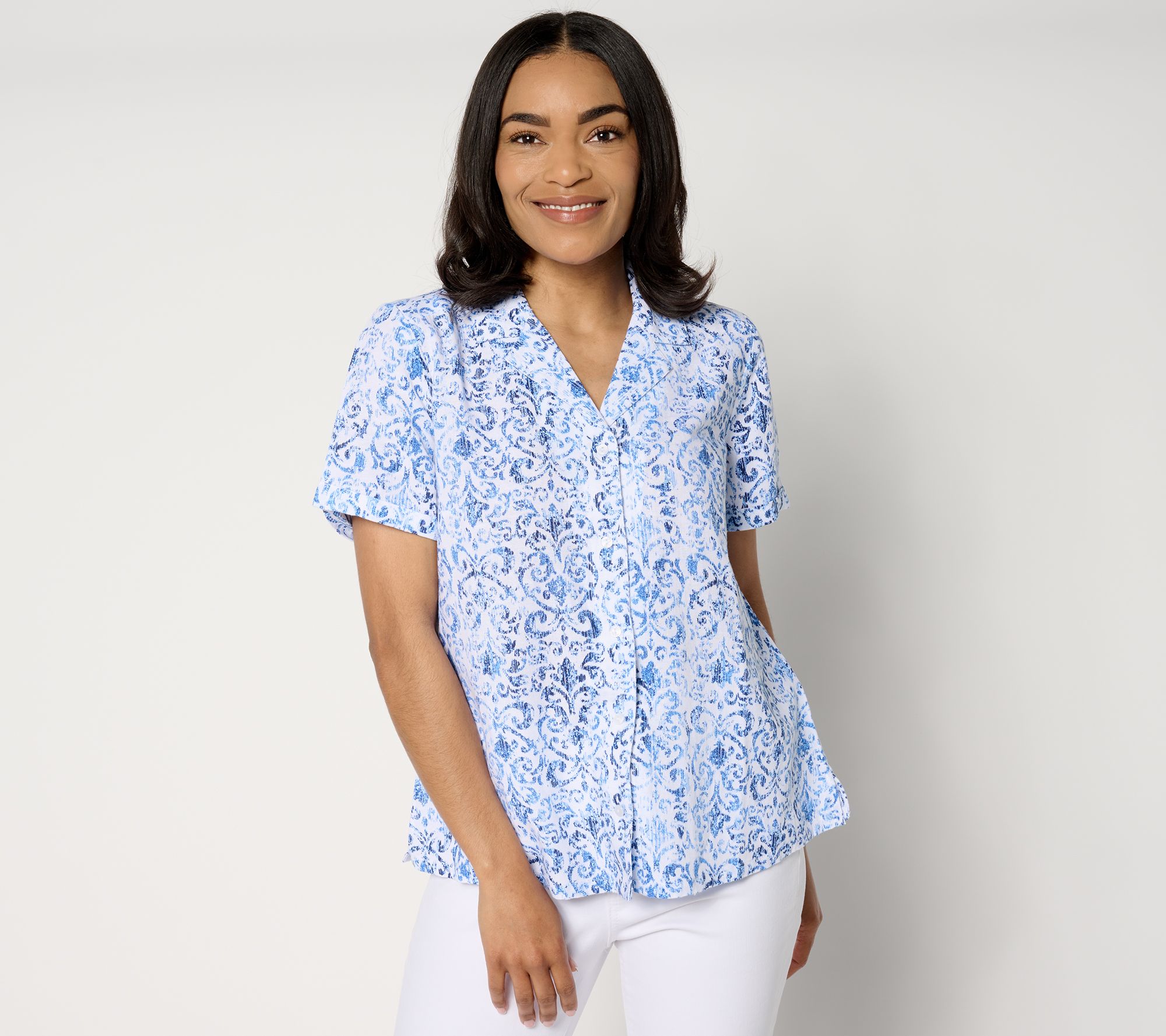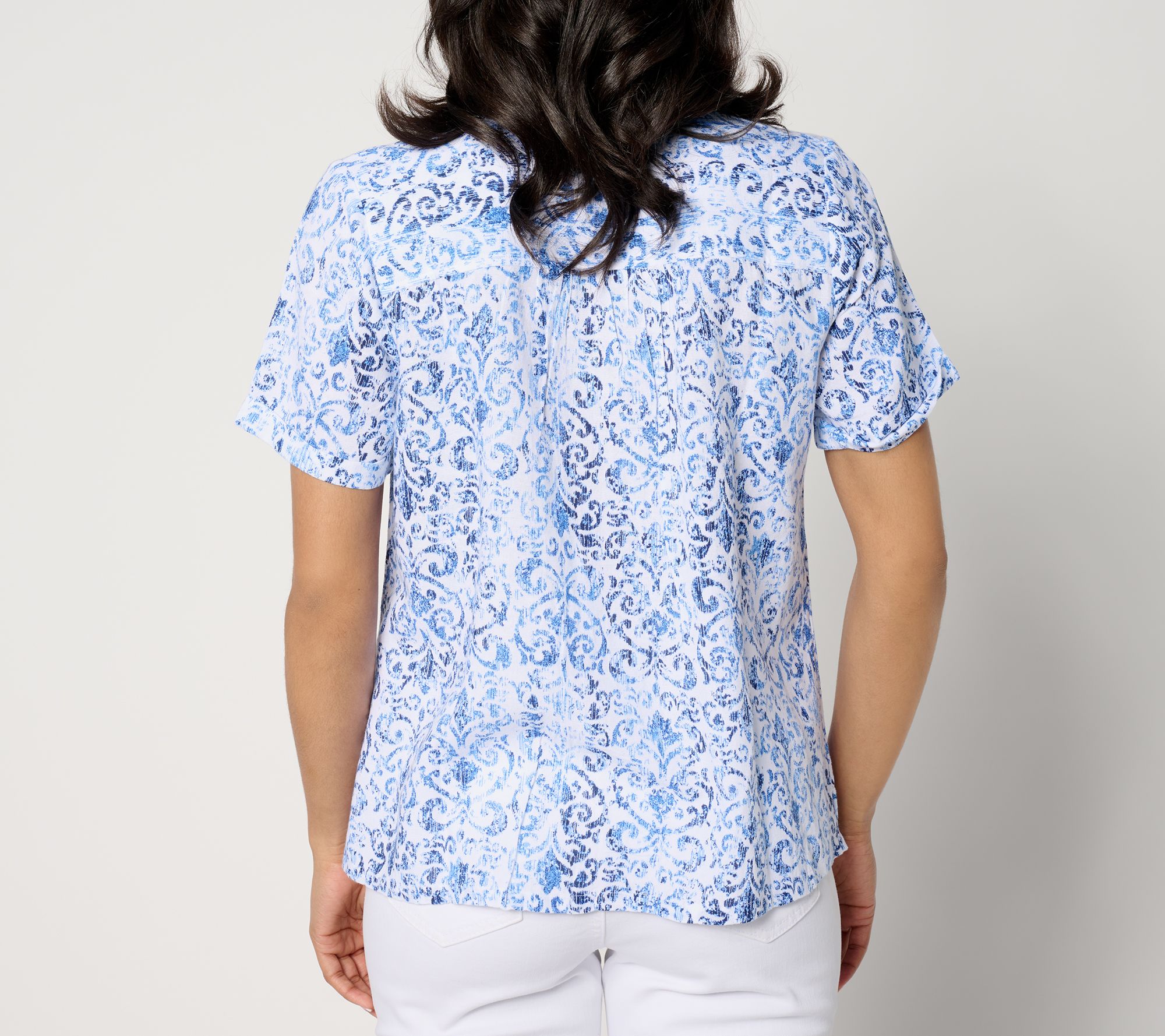"As Is" Denim & Co. Adaptive Printed Button Down Shirt with Side Slits