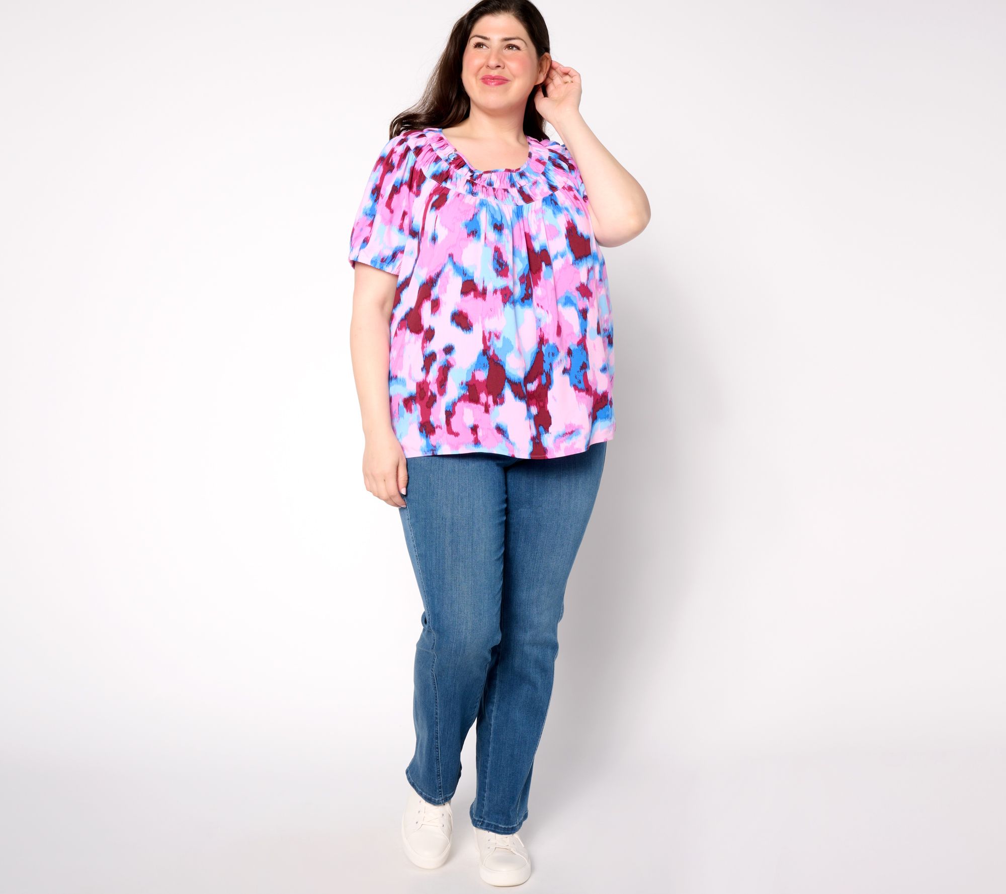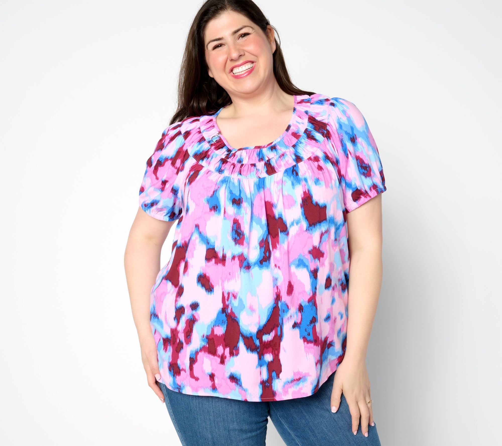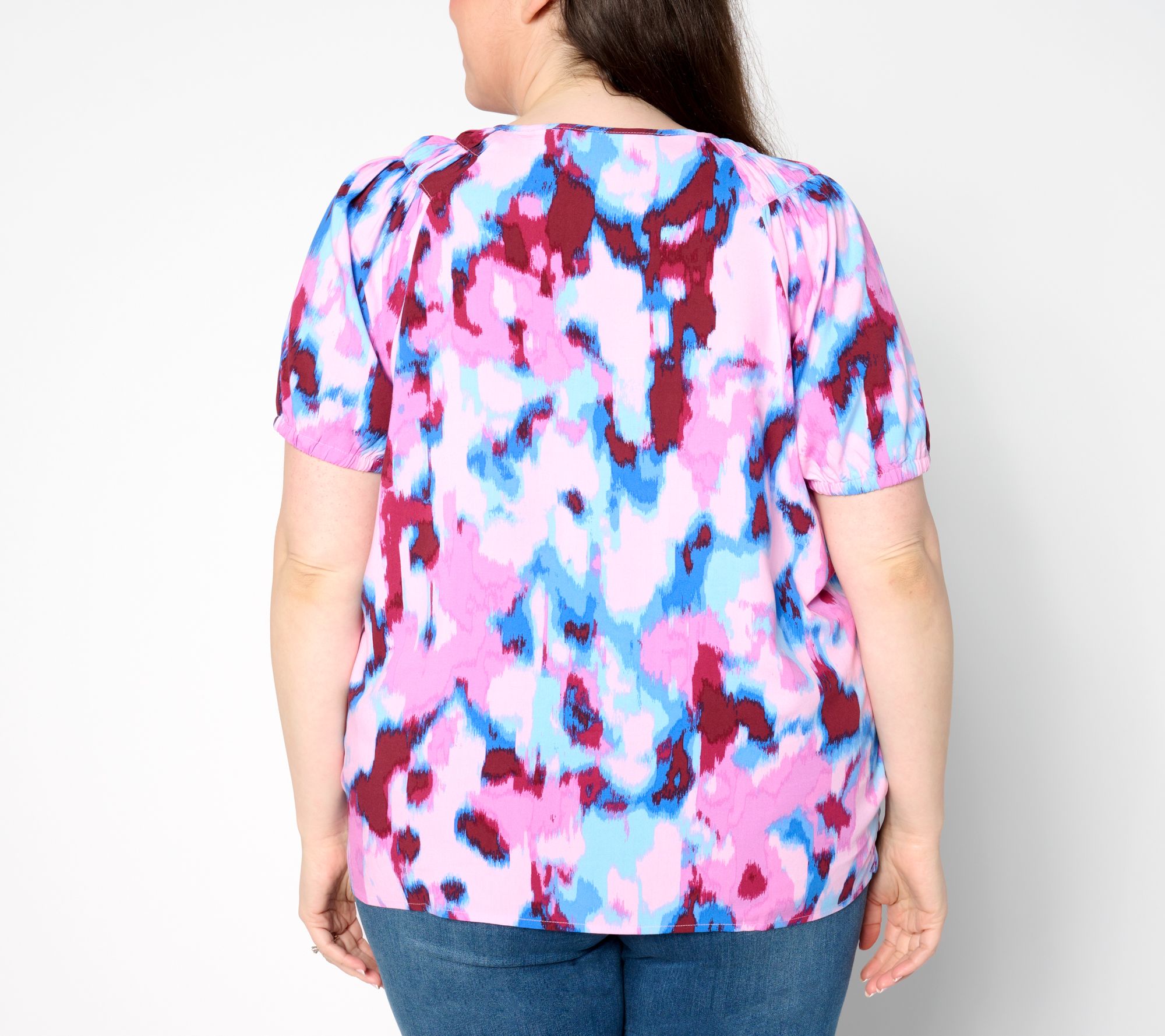 "As Is" Denim & Co. Adaptive Printed Short Sleeve Blouse