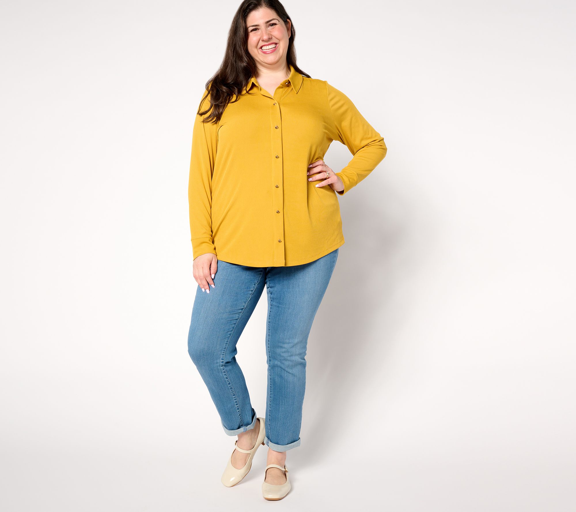 "As Is" Denim & Co. Adaptive Rib Knit Button Front Blouse