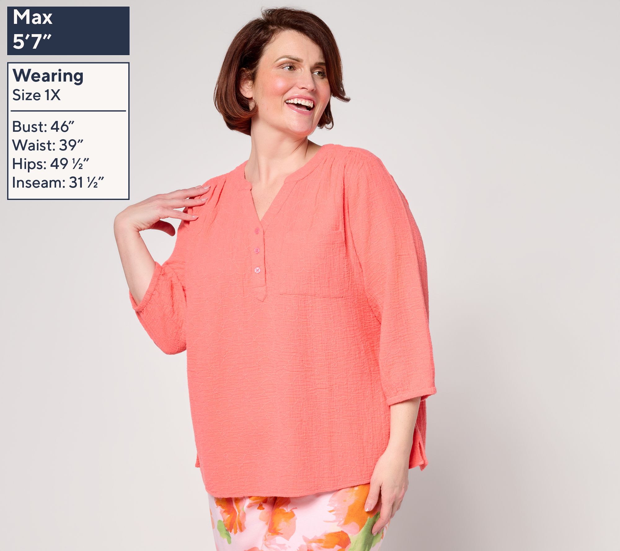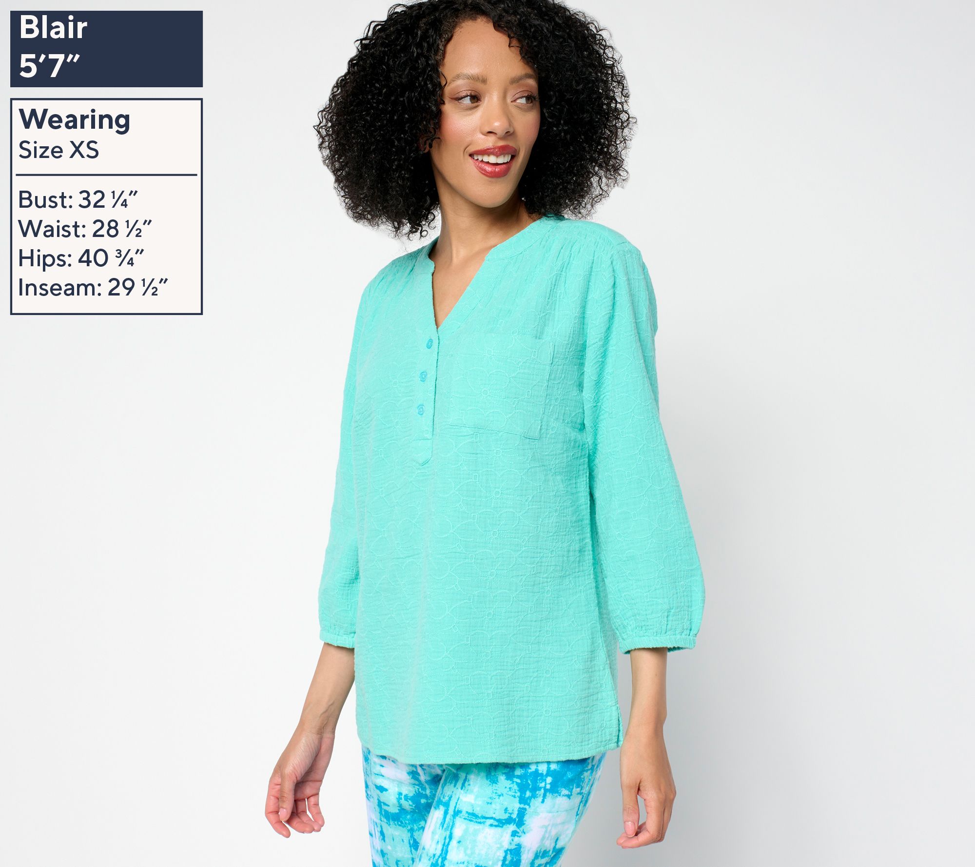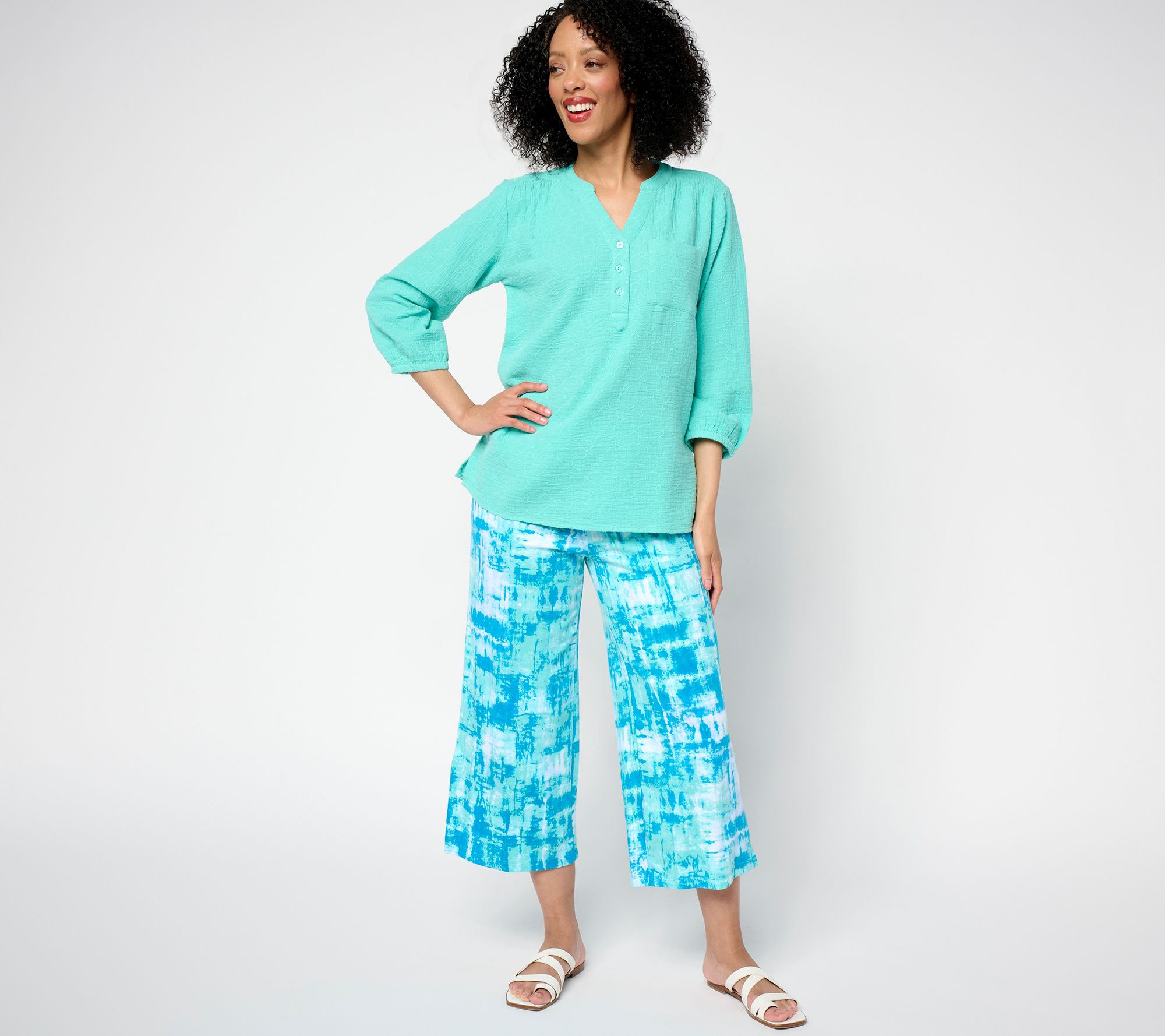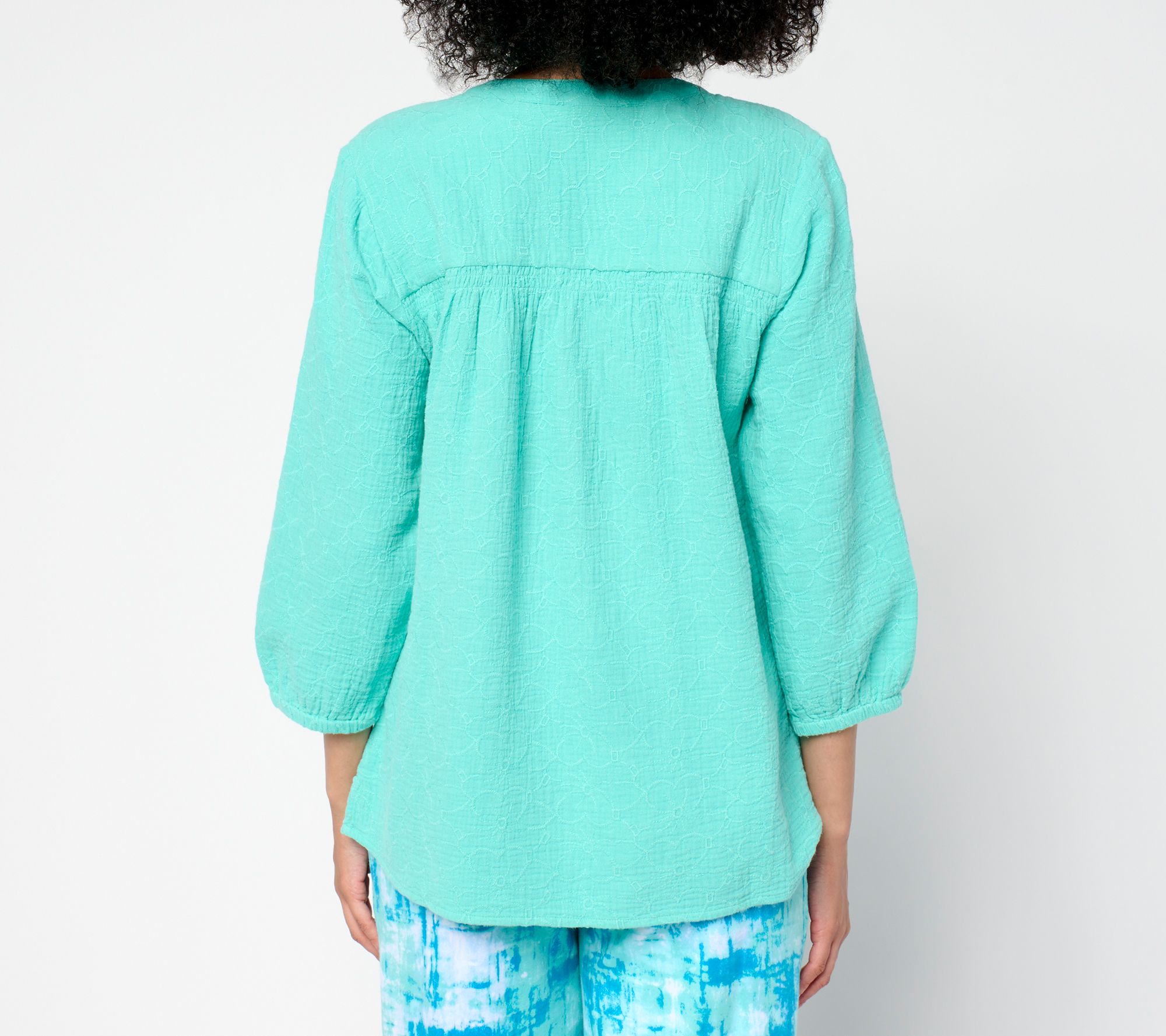 Cotton gauze makes your getaway wardrobe as effortless as possible -- so why not make it part of your every day 'fits as well? Weekdays to weekends, this breezy Denim & Co. Y-neck top is a perfect pick for pairing with jeans, wide-leg crops, or shorts for a casual workday, an easy-breezy beach day, or a quick bite with the besties. From Denim & Co.® Fashions.