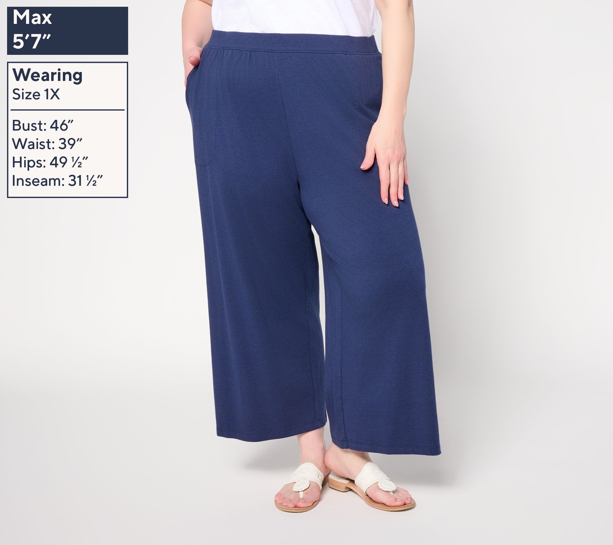 Coffee dates and lunch with the crew get a style upgrade with these pull-on crops from Denim & Co.'s Beach collection. Crafted in a comfy knit fabric with front pockets for practicality, they offer a relaxed beach vibe and breezy feel thanks to the trend-fresh wide leg. Pack 'em in your suitcase for beachcoming and sightseeing -- they'll be your favorite travel buddy. From Denim & Co.® Fashions.