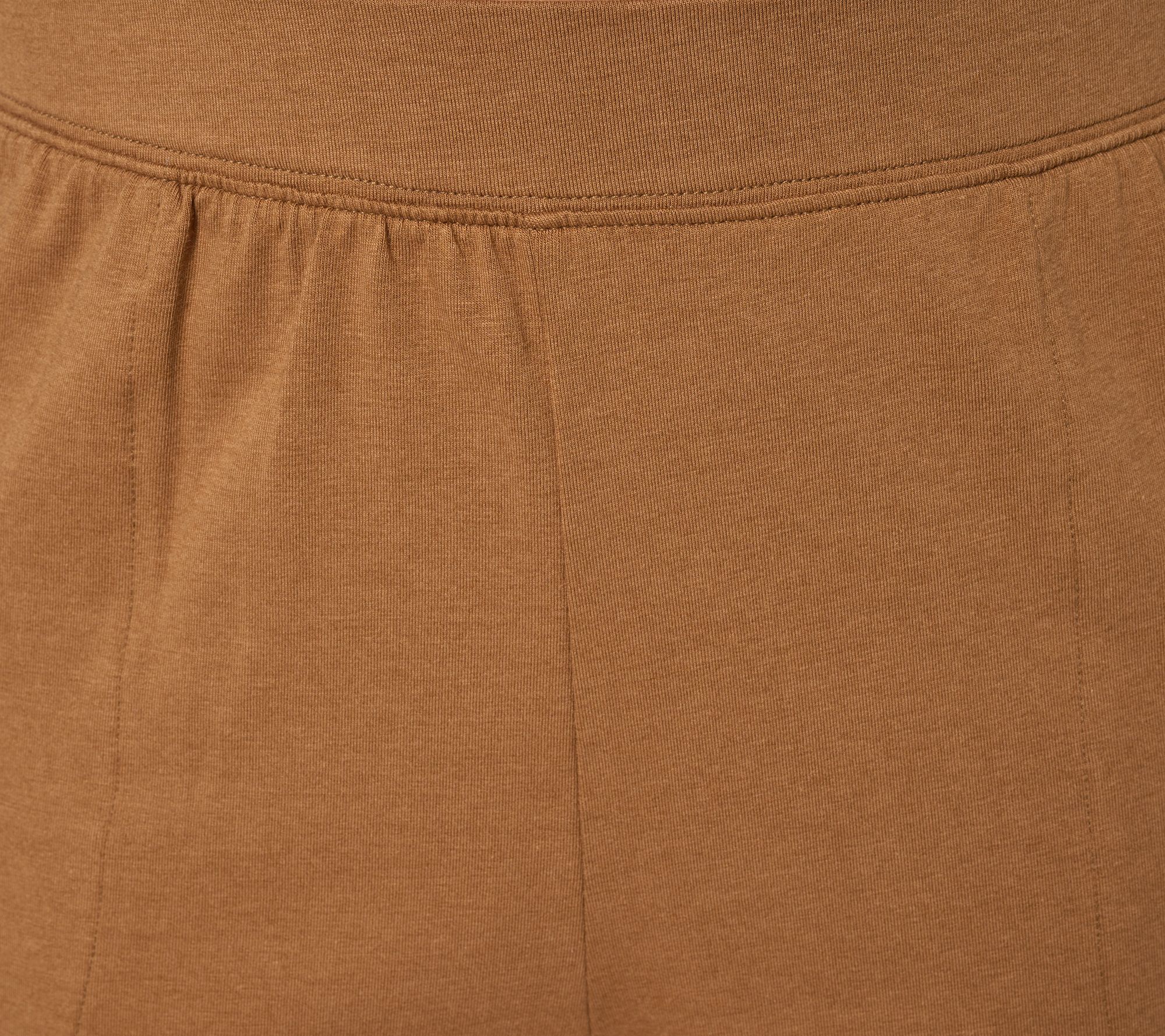 • Features: pull-on style, flat elastic waistband, front pockets, side slits at hem, crop length