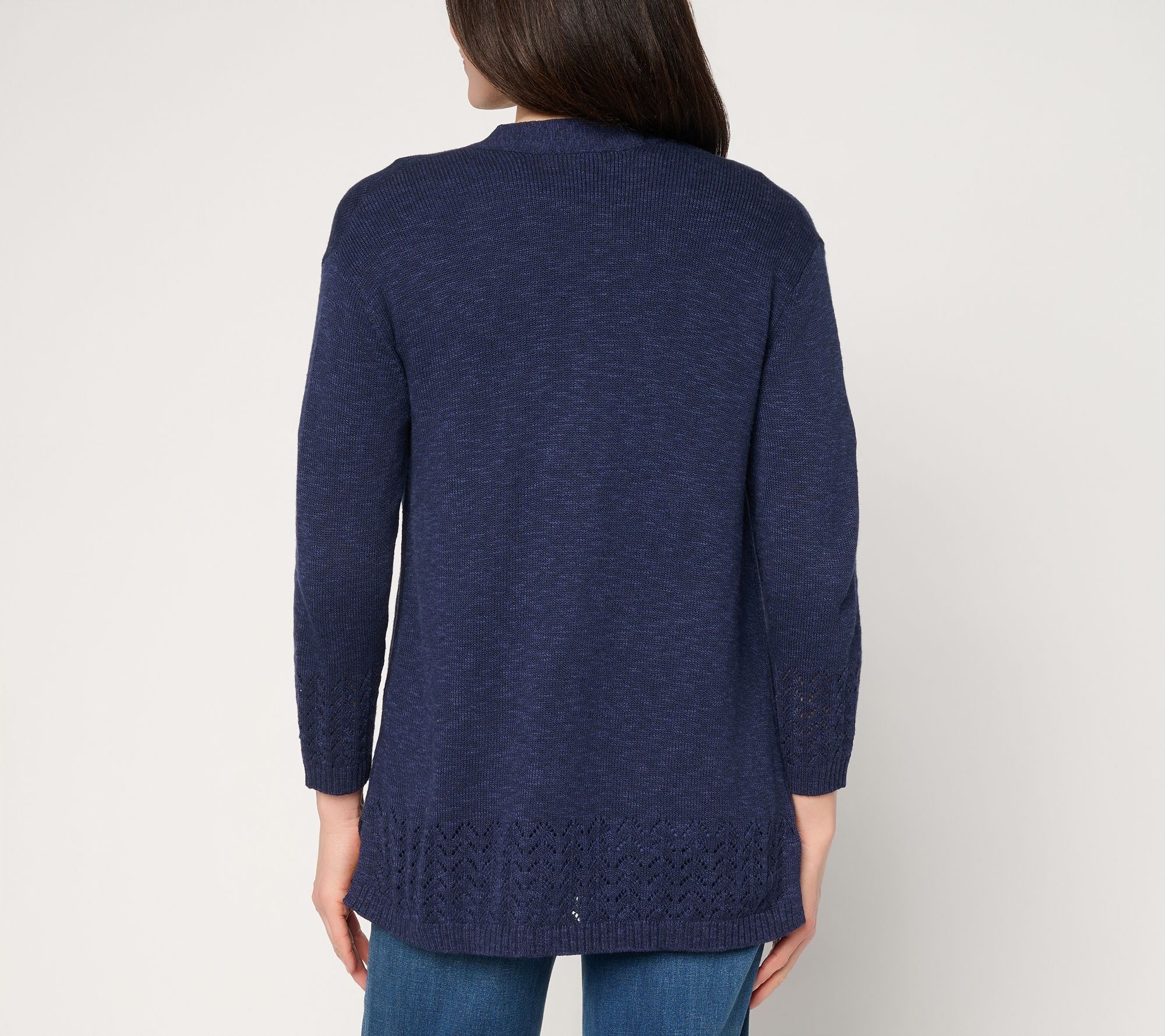 "As Is" Denim & Co. Beach Pointelle Sweater Cardigan