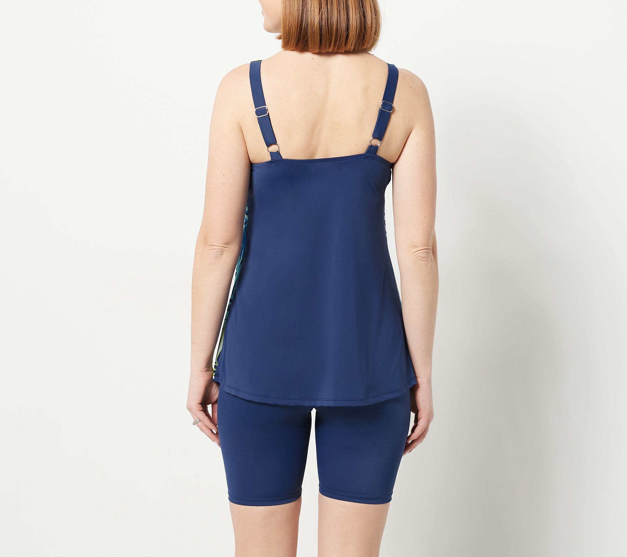 An active beach day? It might involve the kids or a playful pup. Or, it might involve just you, splashing in the surf like you're five again. But it should definitely involve this pretty, movement-minded tankini with cutely coordinated bike shorts. From Denim & Co.® Fashions.