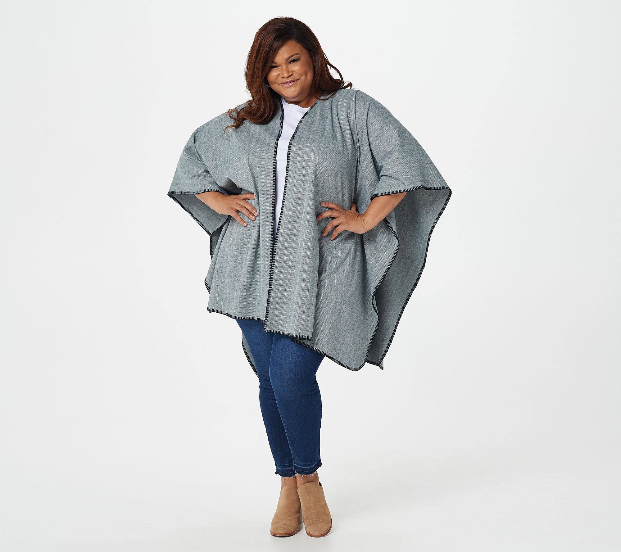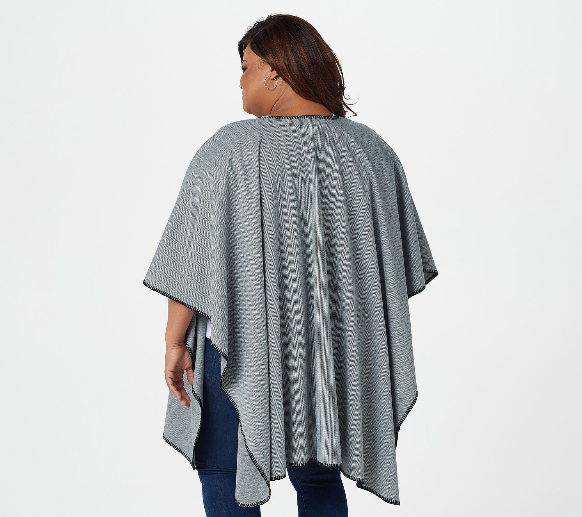 "As Is" Denim & Co. Blanket Stitch Herringbone Poncho Sweater