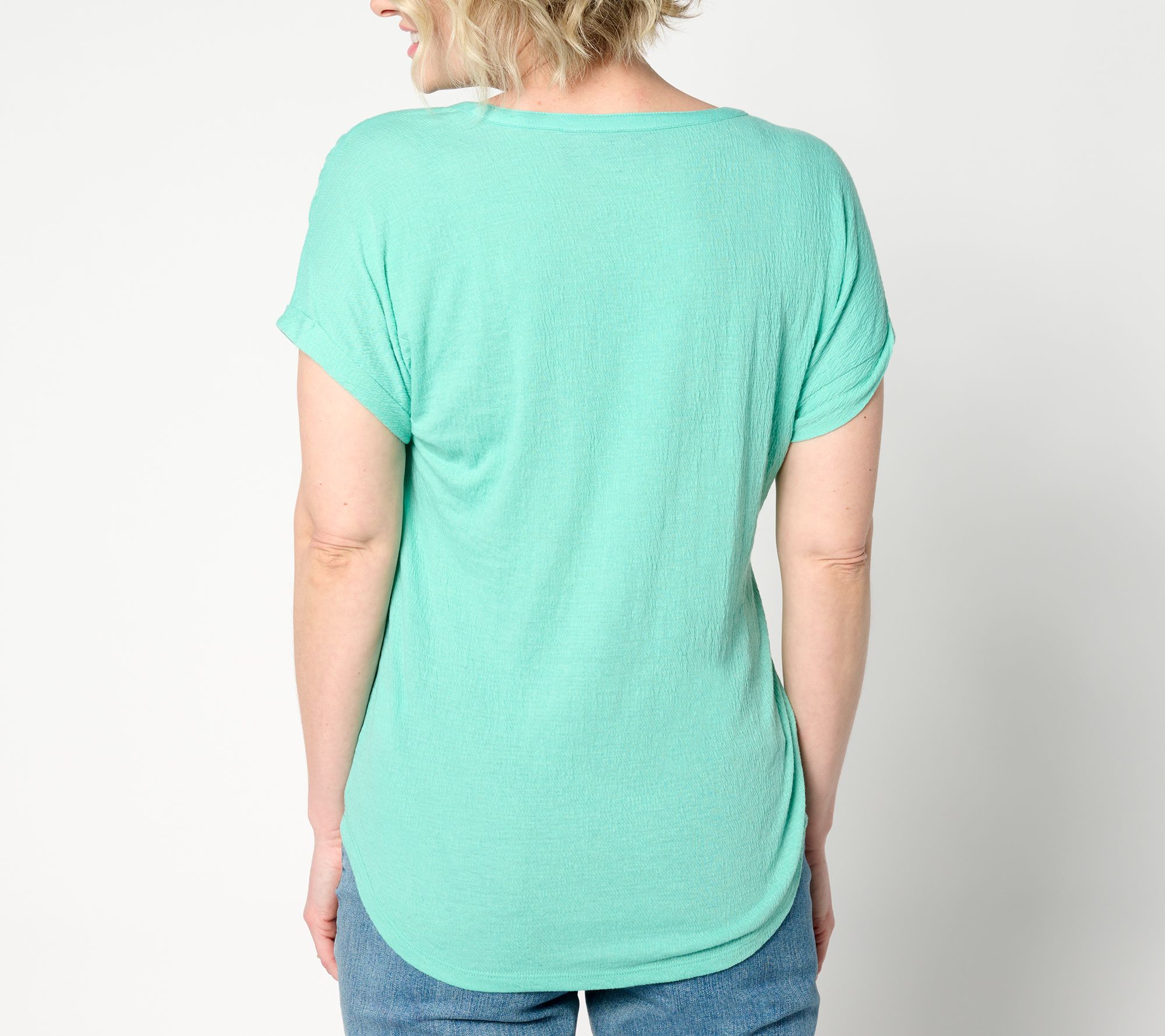 "As Is" Denim & Co. By the Beach Knit Gauze Dolman Sleeve Top