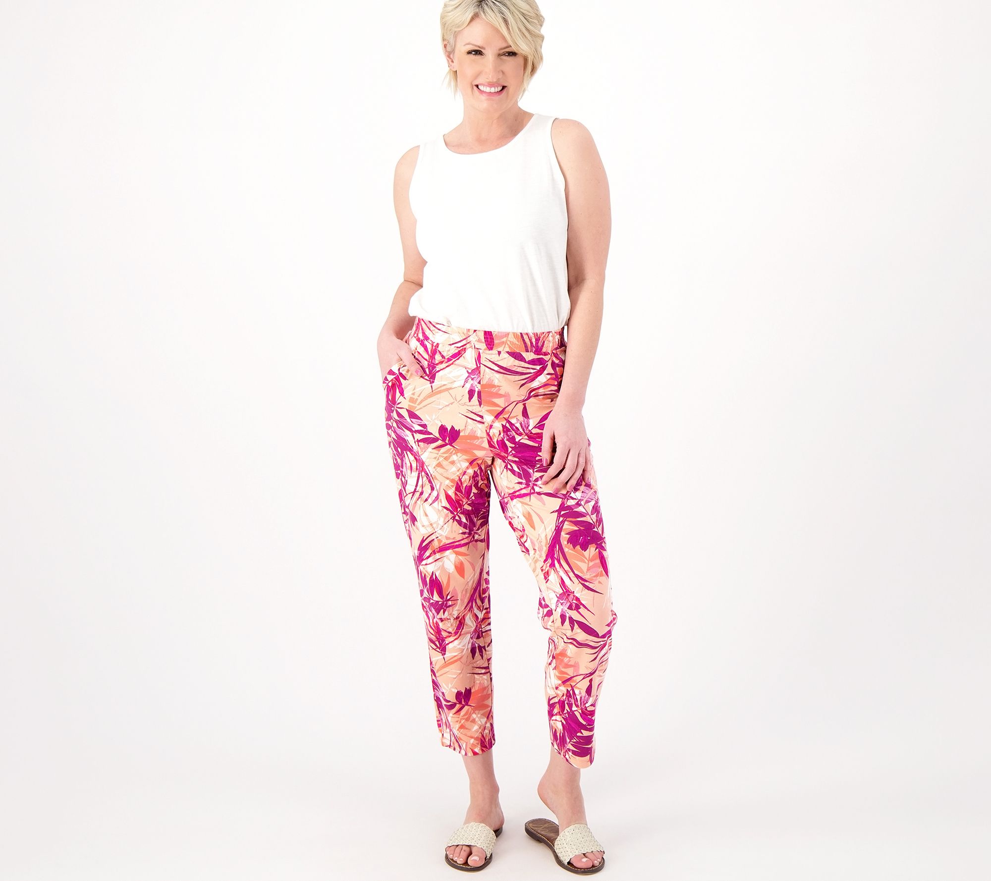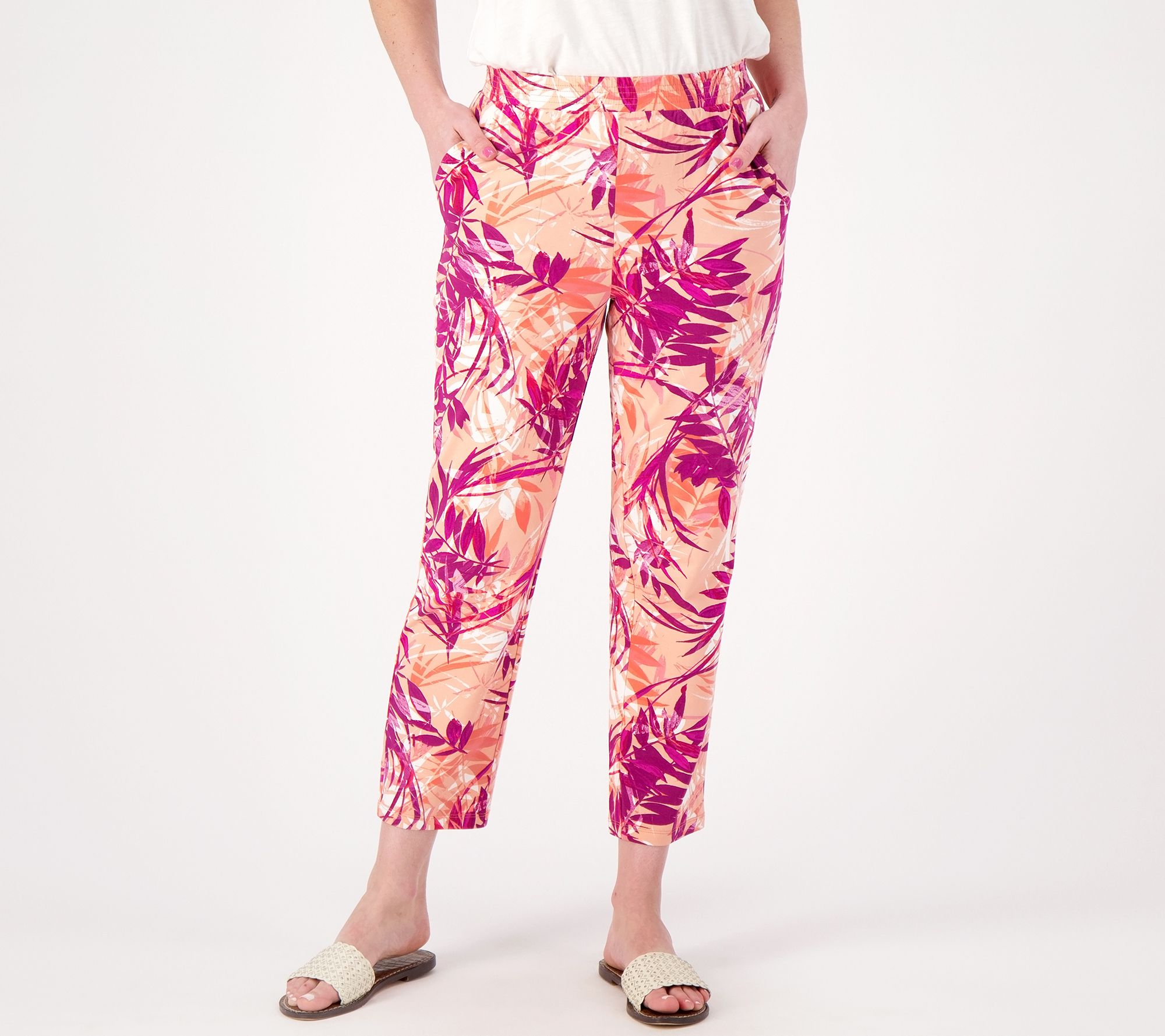 These vacay-ready pants have an easy pull-on style, with a bright cheerful print and front pockets for your cash, credit cards, and hotel room key. From Denim & Co.® Fashions.
