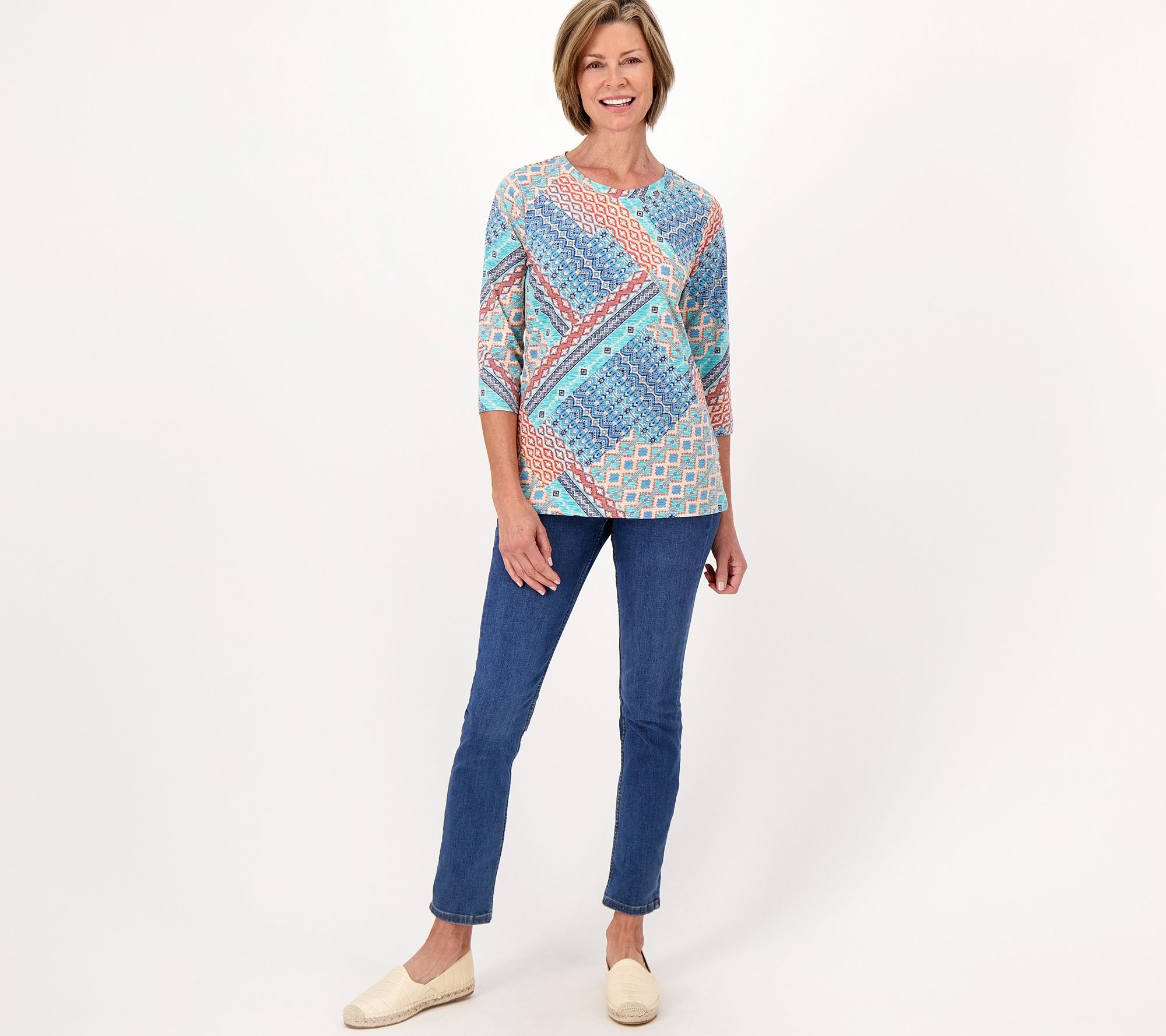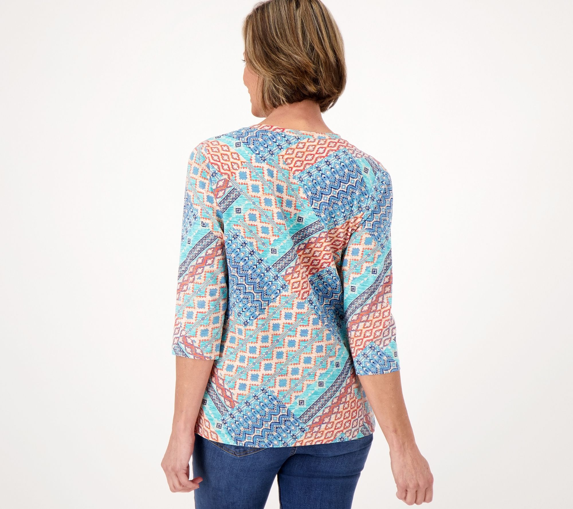 "As Is" Denim & Co. Canyon Retreat 3/4 Sleeve Texture Knit Print Top