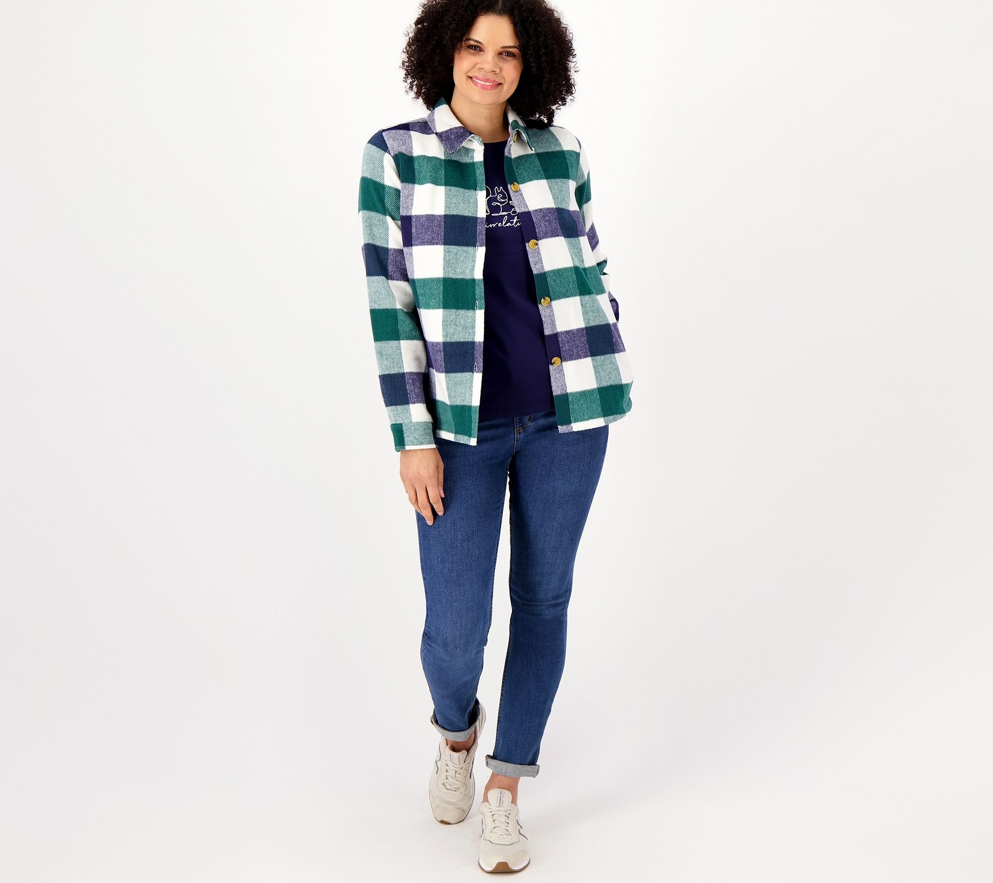 "As Is" Denim & Co. Canyon Retreat Cozy Plaid Button Front Shacket