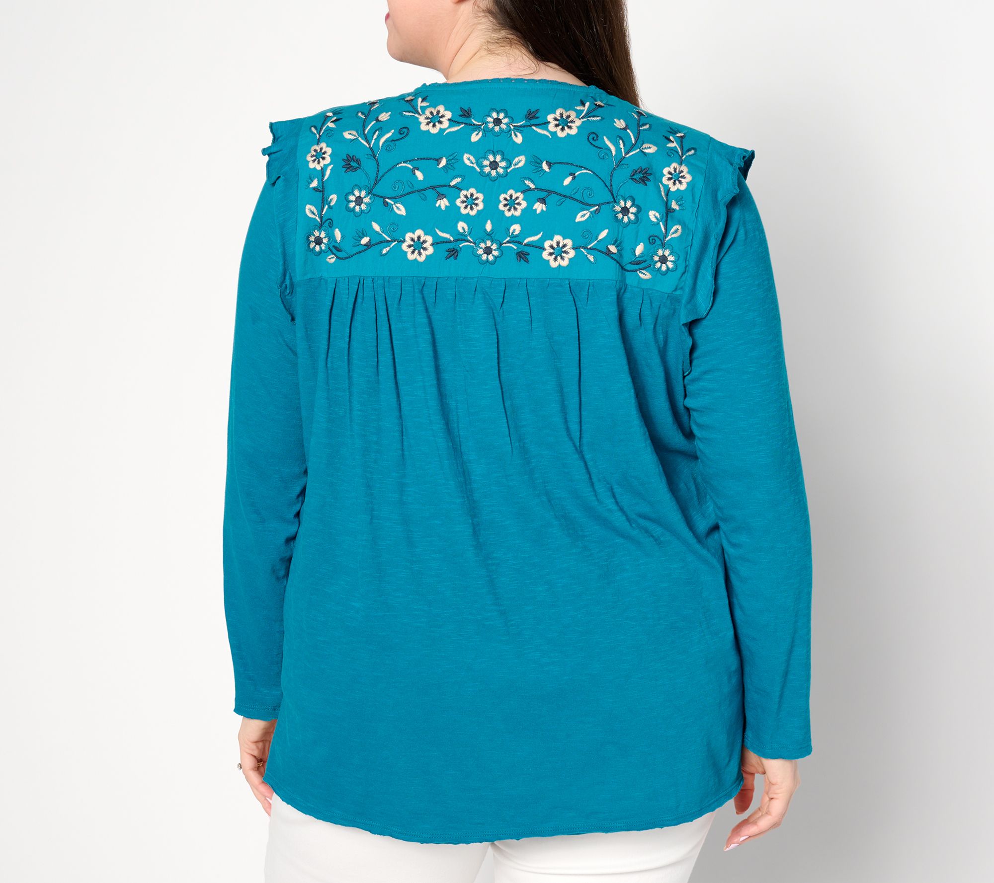 "As Is" Denim & Co. Canyon Retreat Embroidered Button Blouse