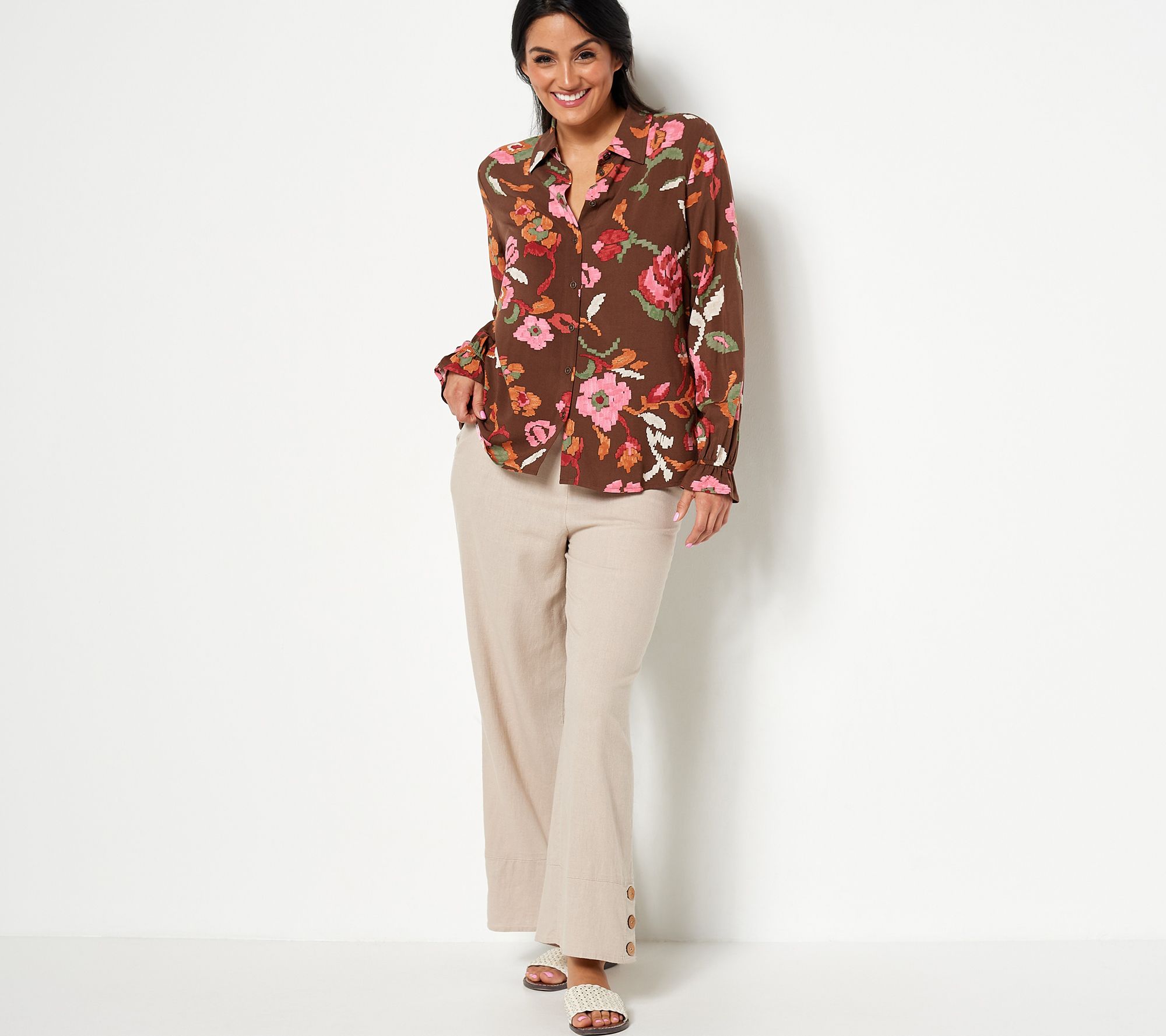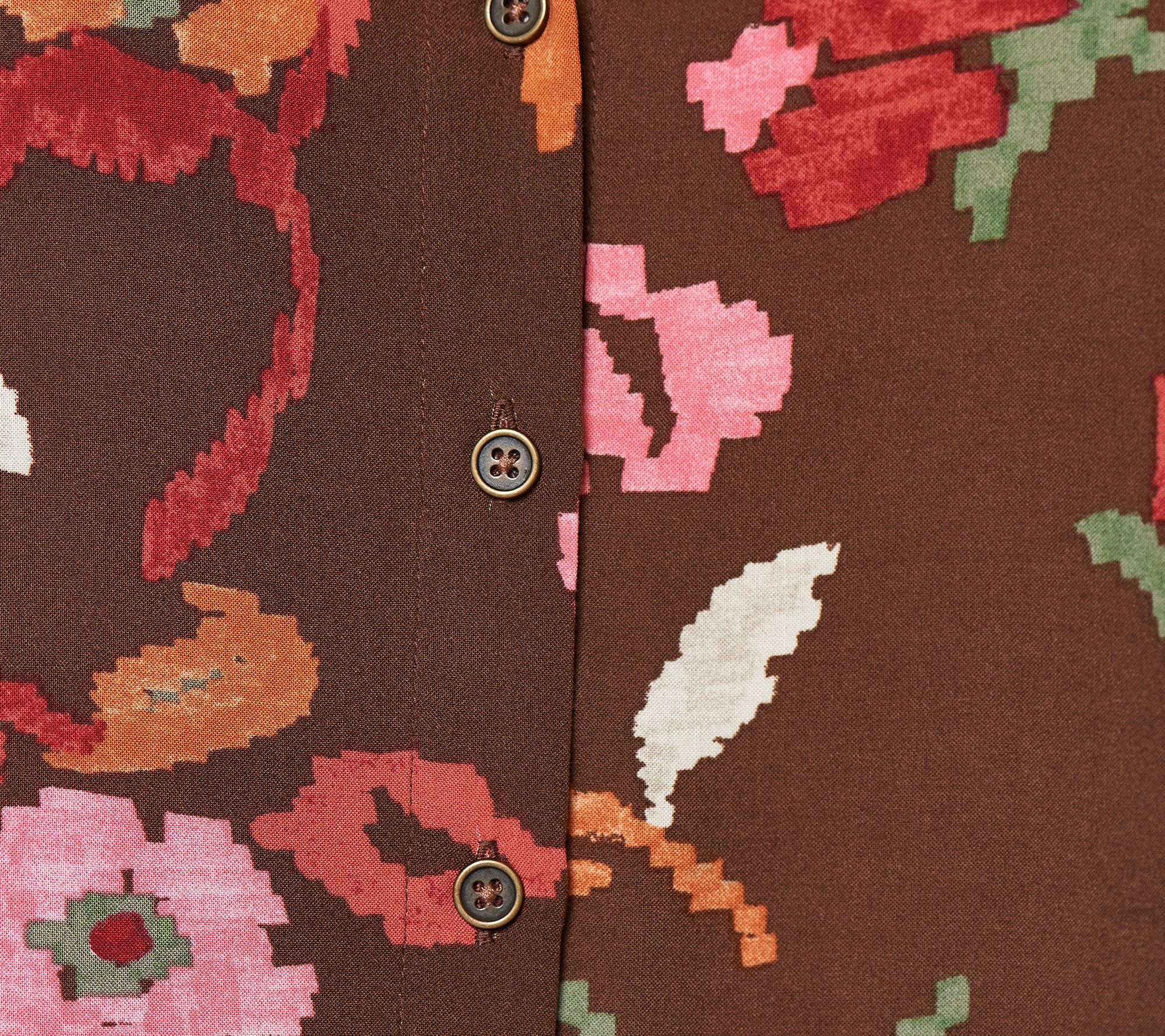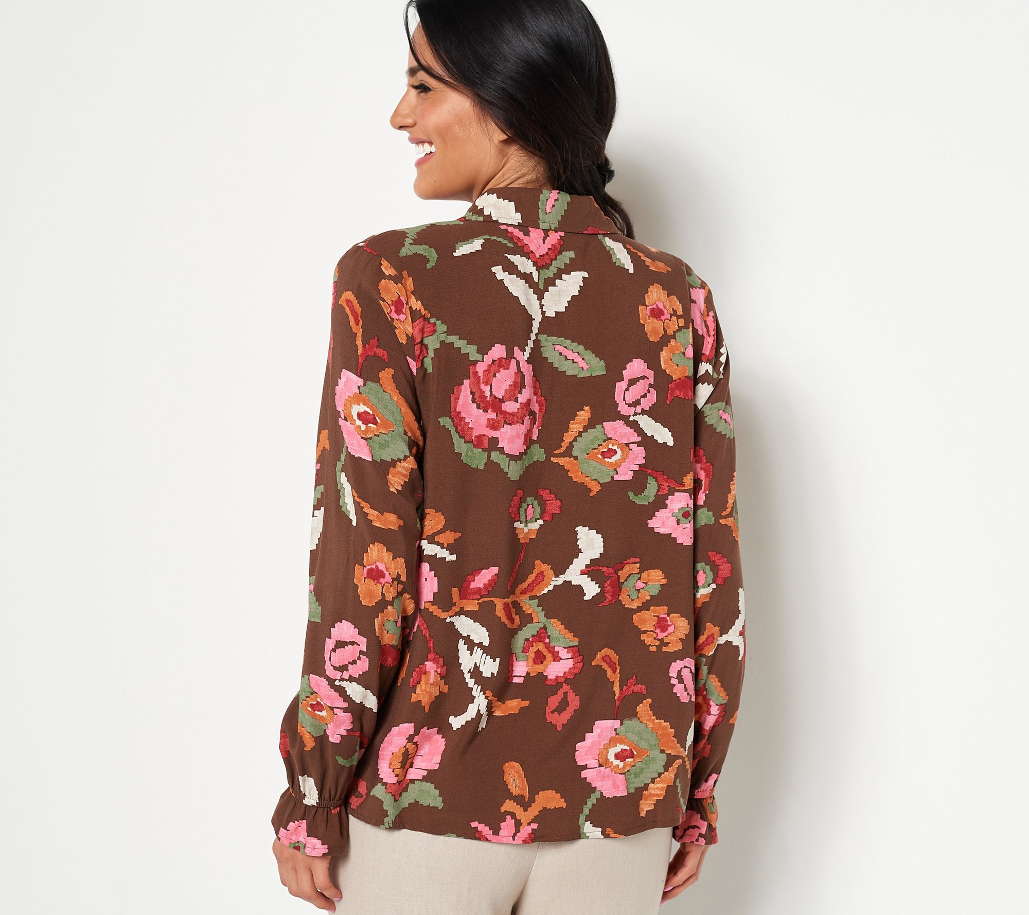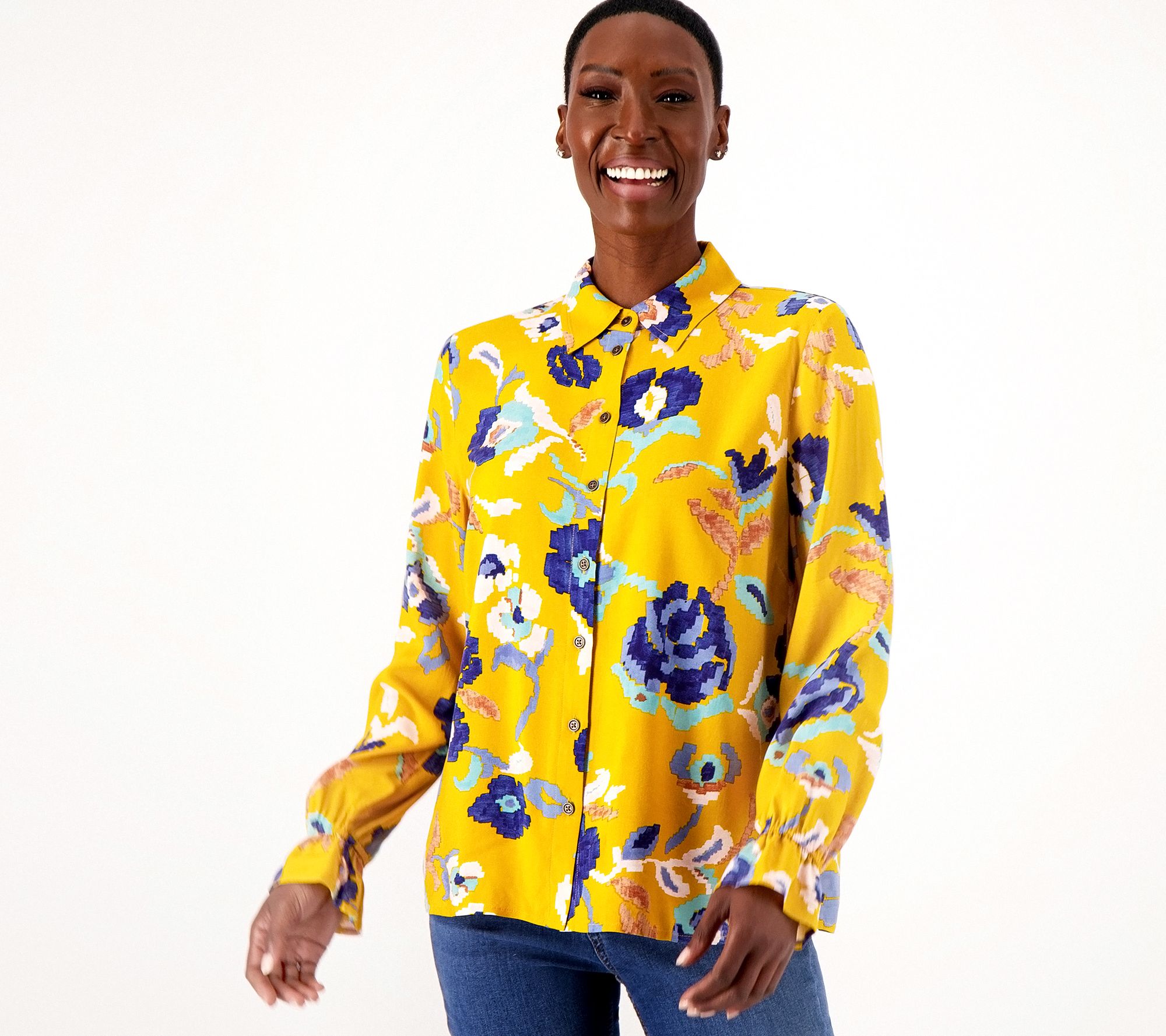 "As Is" Denim & Co. Canyon Retreat Floral Button Front Shirt w/ Cuff