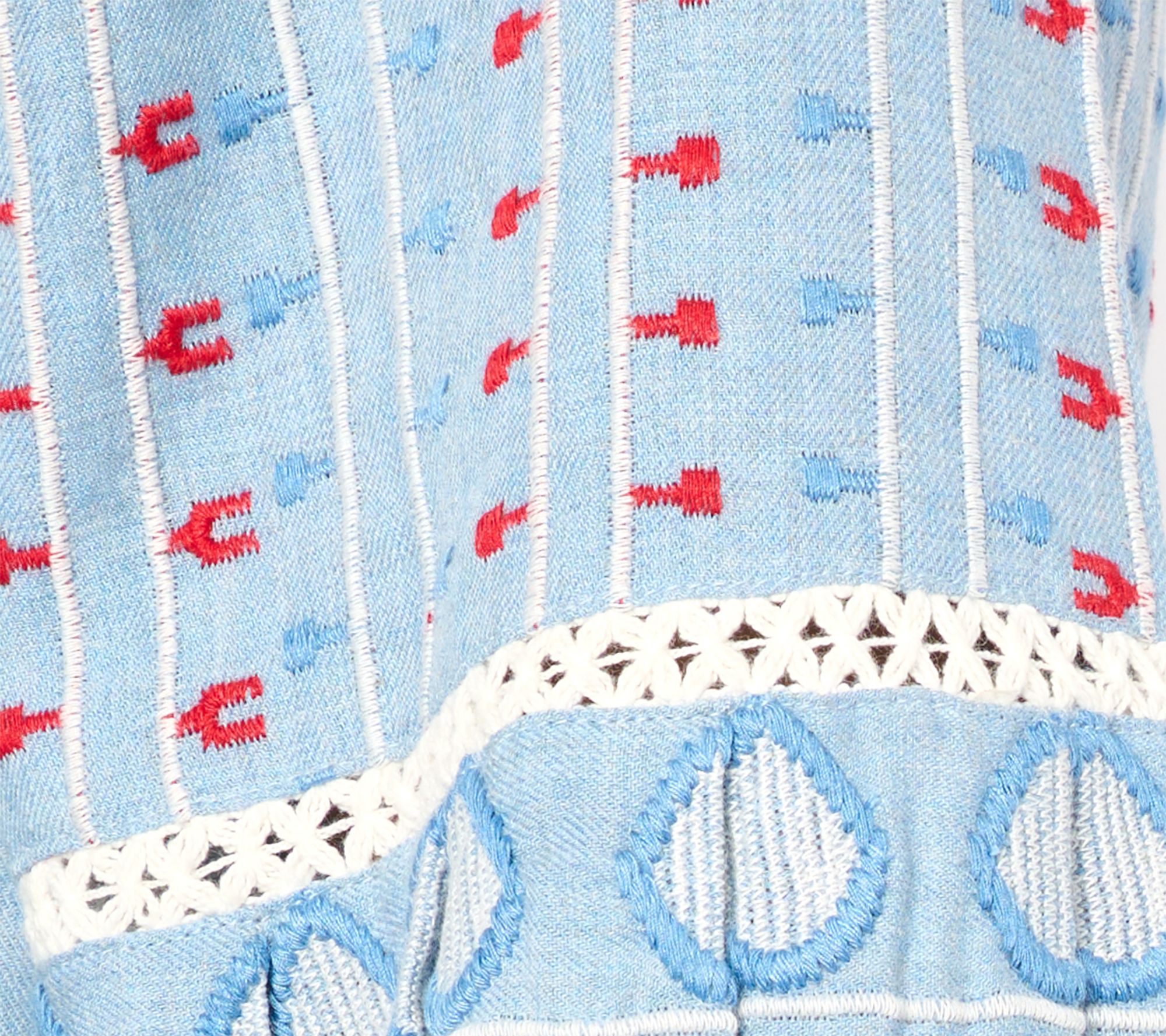 • Features: split neckline with ties, embroidered long raglan sleeves