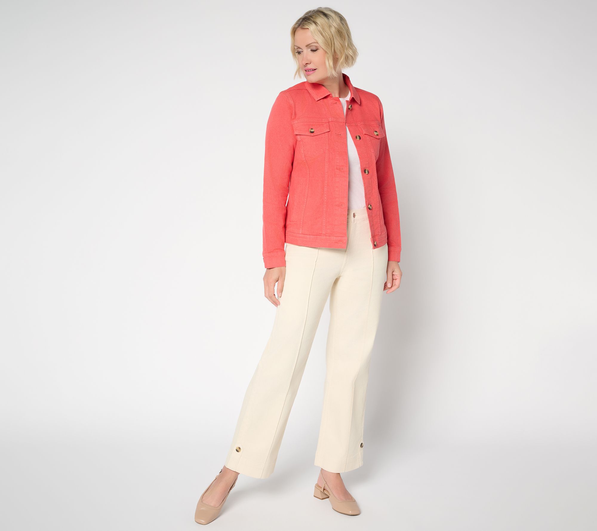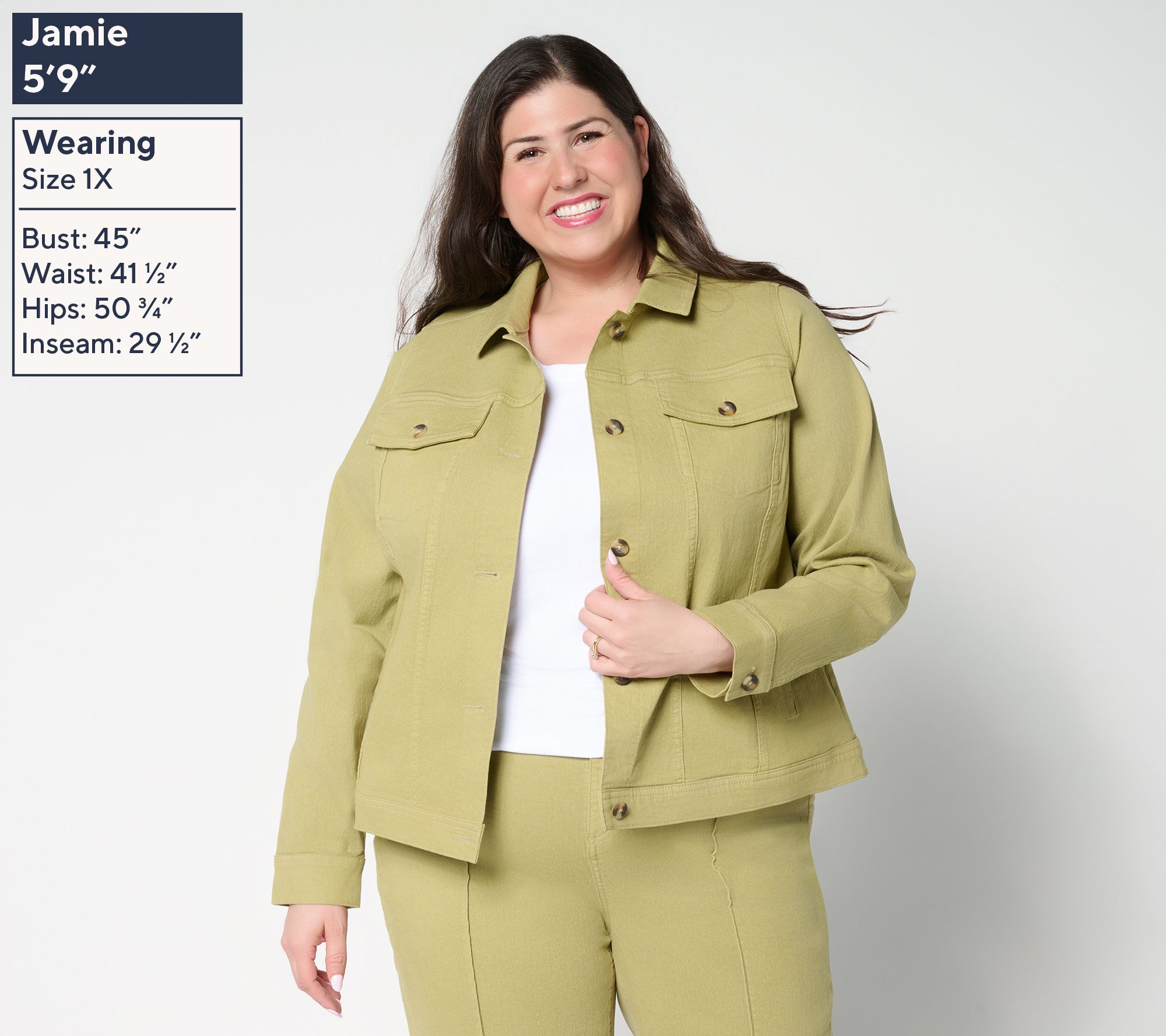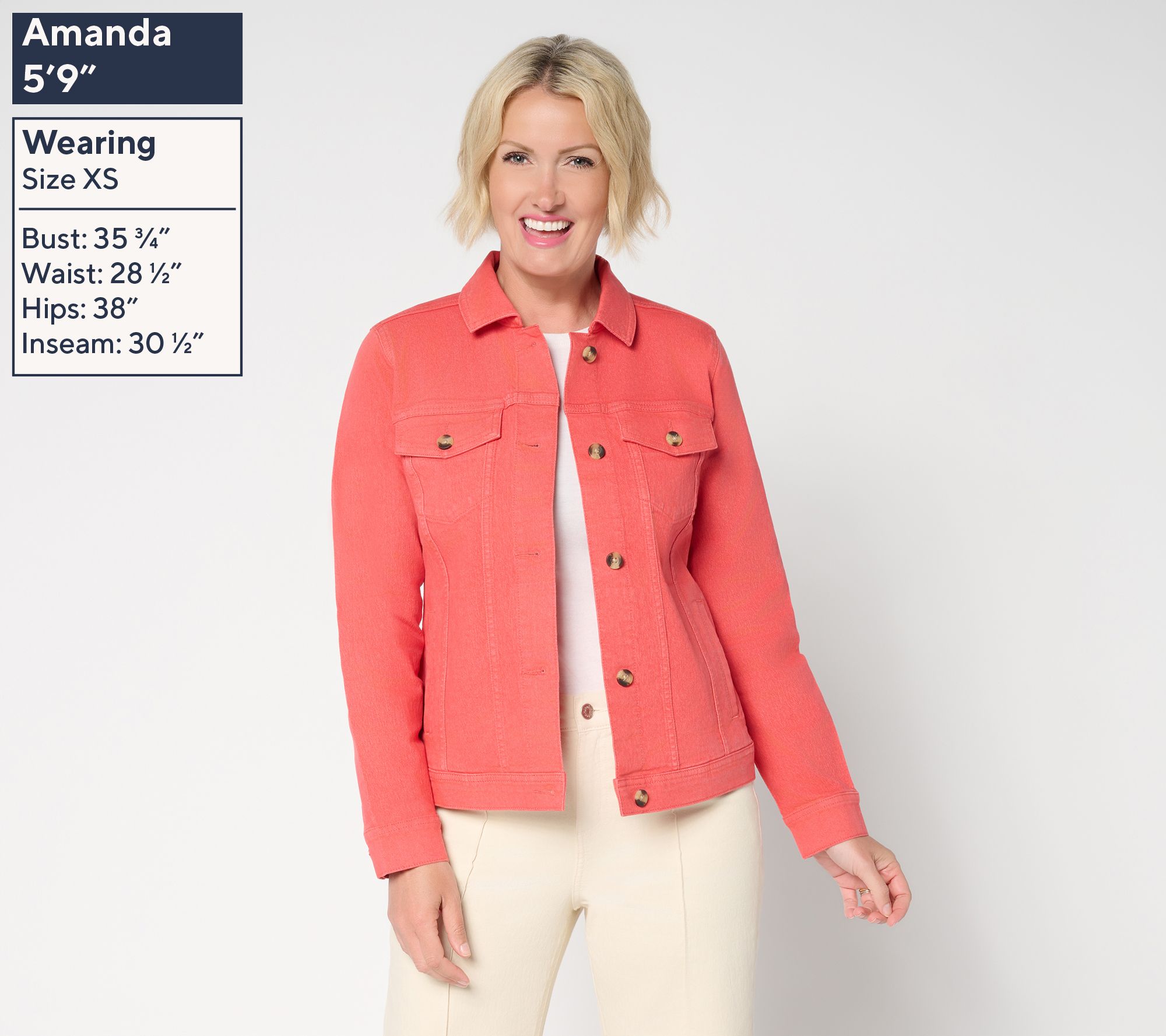 Whether you're running between meetings or headed to dinner with friends, this Classic Stretch Denim jacket lends a touch of versatility to any outfit. Welt pockets keep essentials at hand, while the button-front, collared design brings an effortless polish to casual ensembles. From Denim & Co.® Fashions.