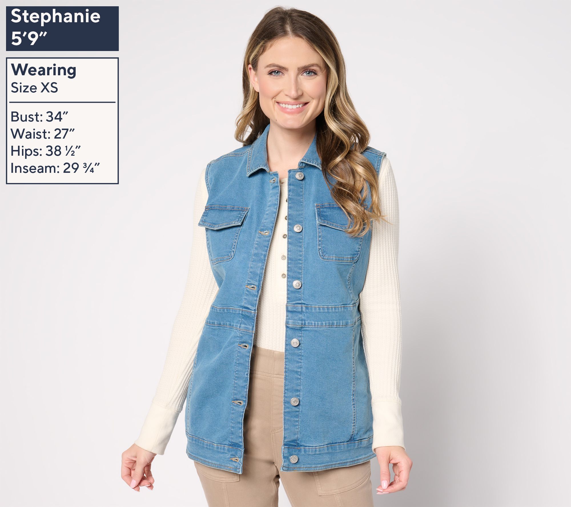 "As Is" Denim & Co. Classic Stretch Indigo Denim Vest
