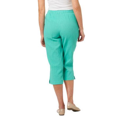 A summertime staple. Fashioned in lovely crinkle gauze, these capri pants are an easy, breezy wardrobe choice for the warmer months. From Denim & Co.(R) Fashions.