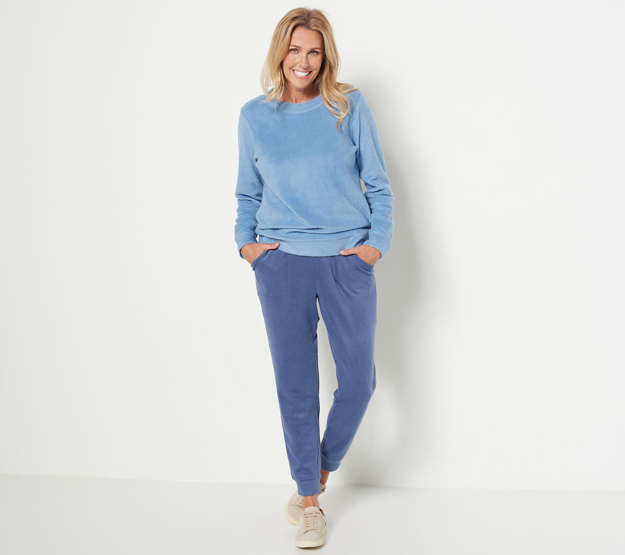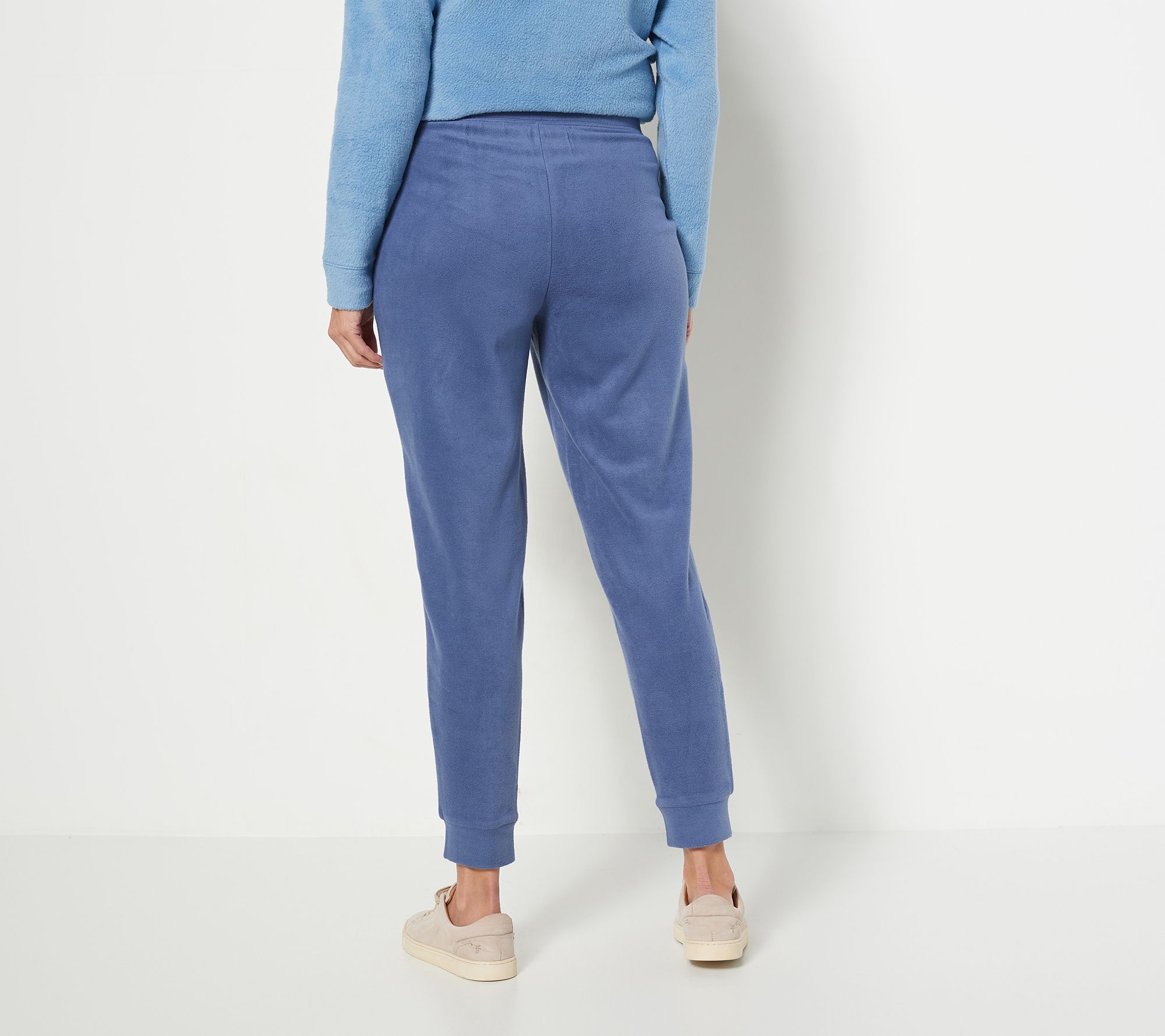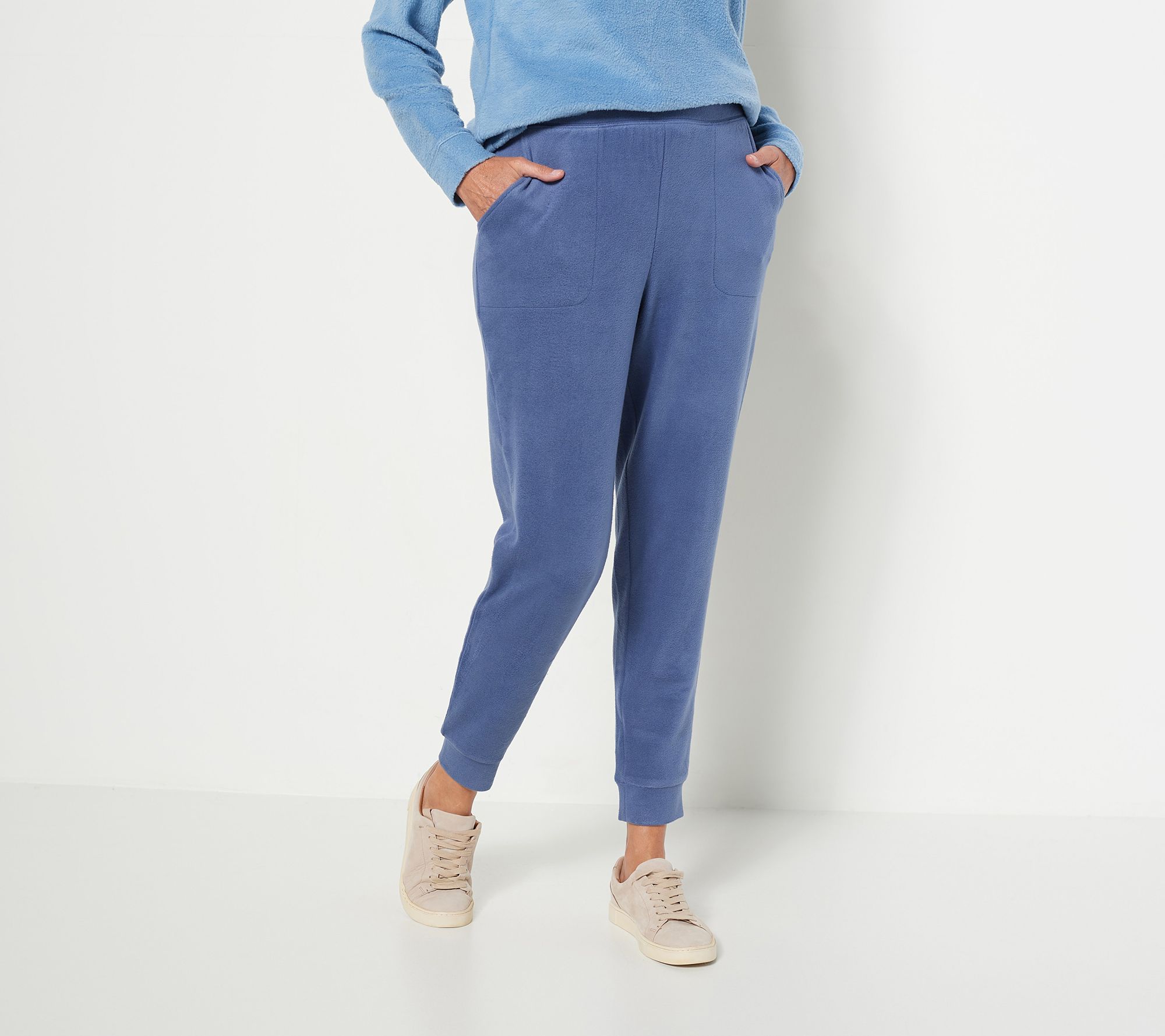 Jump into unbelievable comfort with these dangerously cozy fleece knit joggers. They feature self-folded cuffs, an elastic waistband, and pockets -- all the makings of a favorite pair of pants! From Denim & Co.® Fashions.