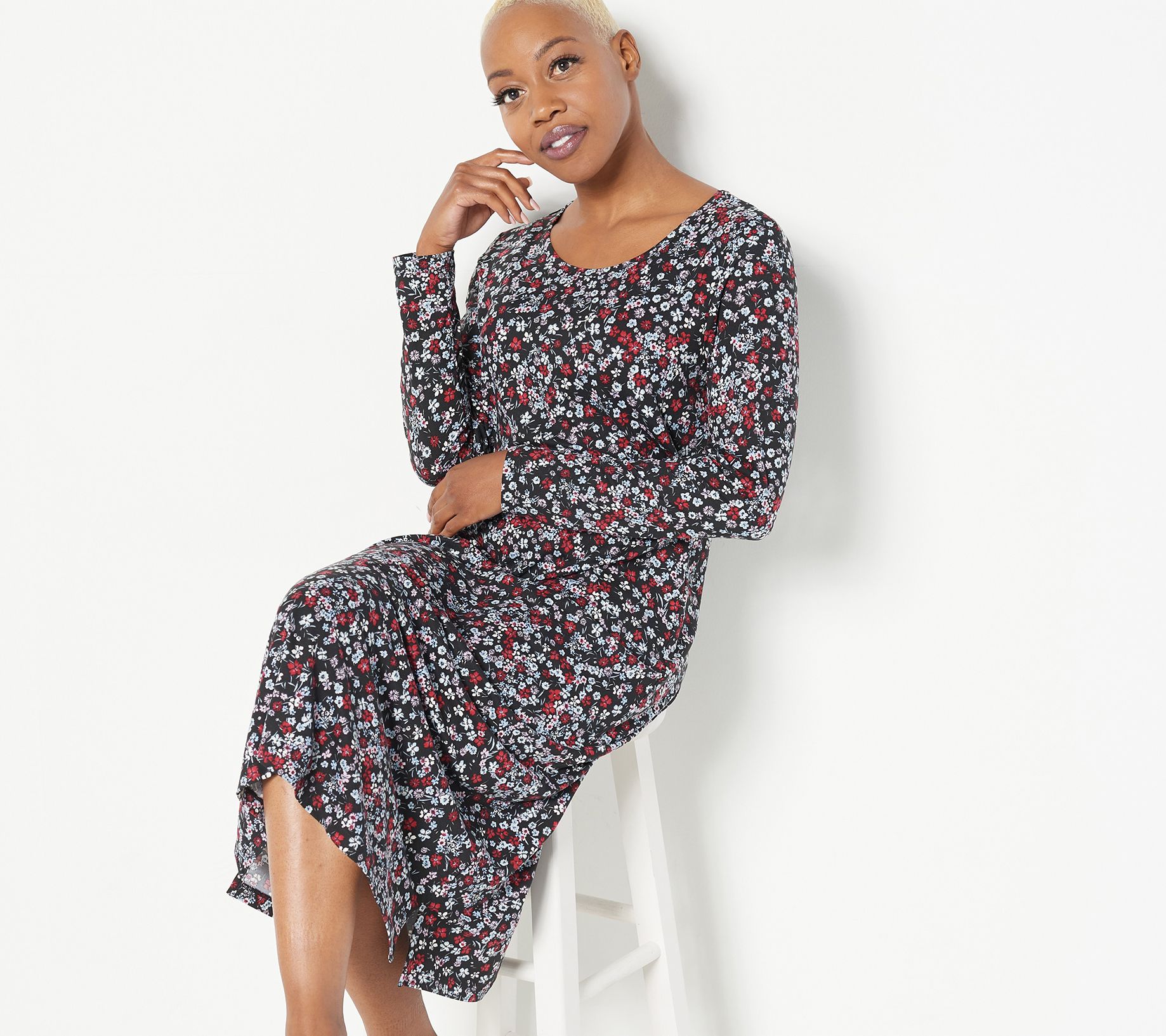 Cozy enough for slumber and cute enough not to slink down in your seat in the school drop-off line -- this printed night dress is a win-win! From Denim & Co.® Fashions.