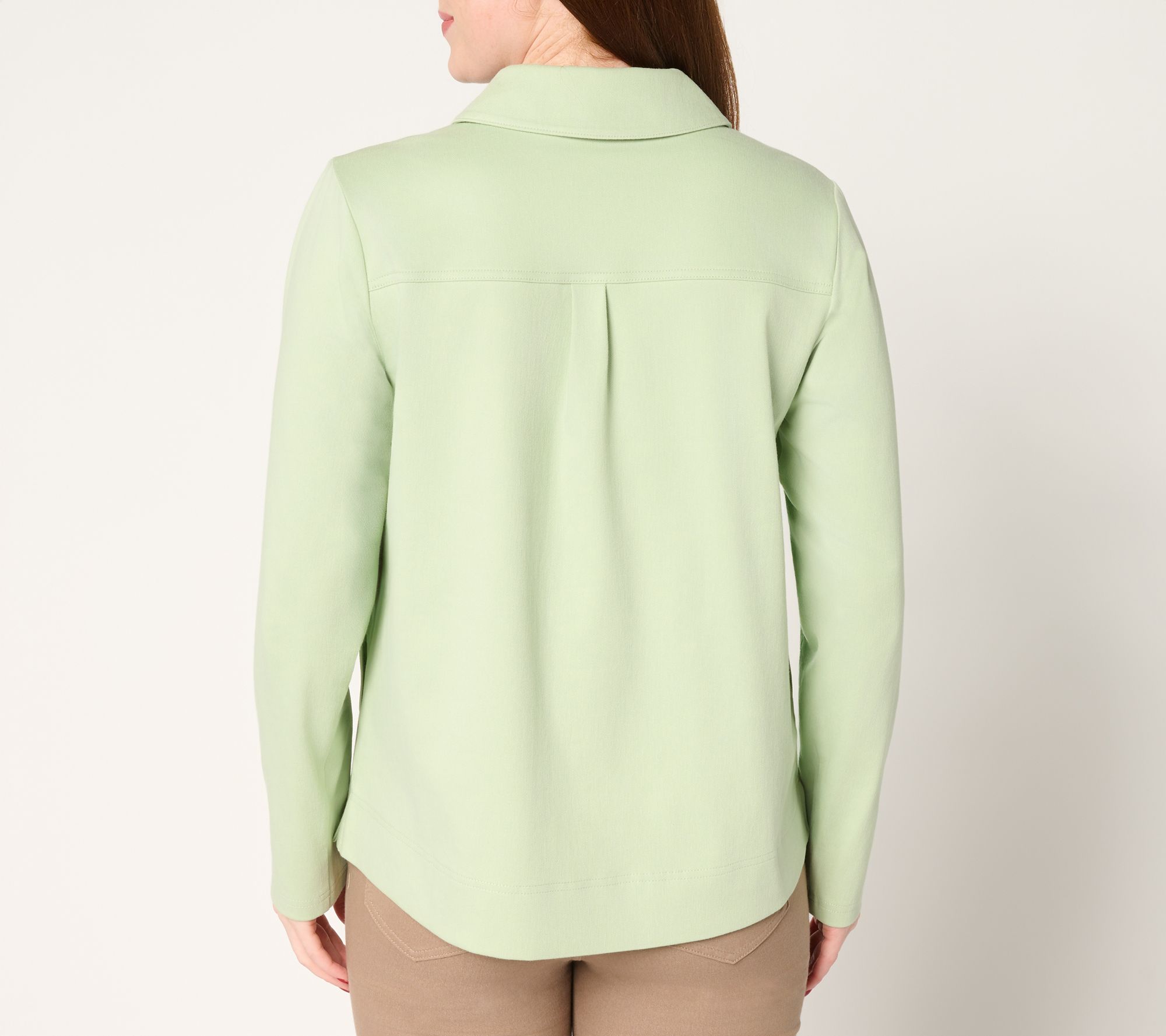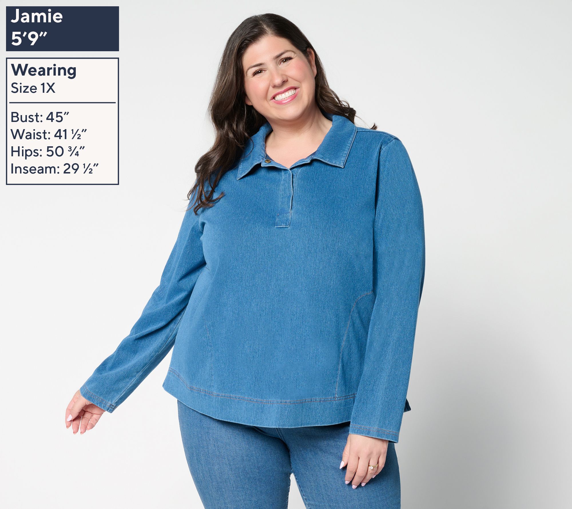 "As Is" Denim & Co. Comfy Knit Air Collared Popover Top w/ Pockets