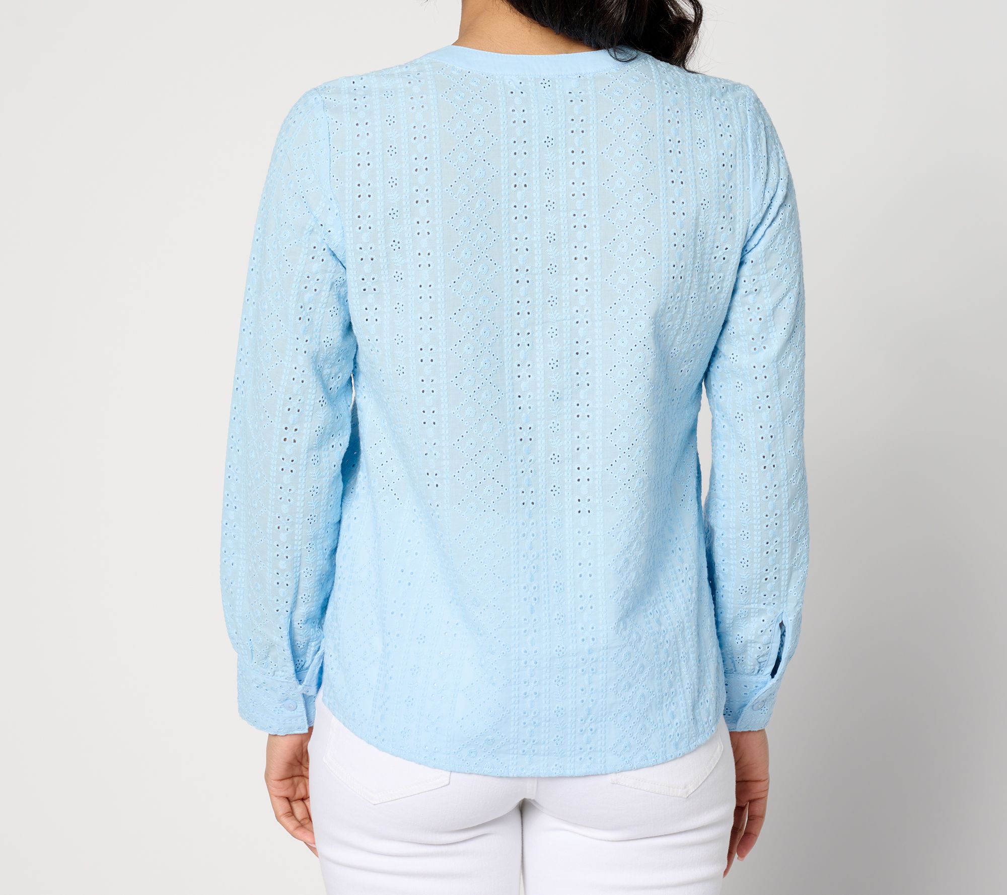 "As Is" Denim & Co. Cotton Eyelet Button Down Shirt