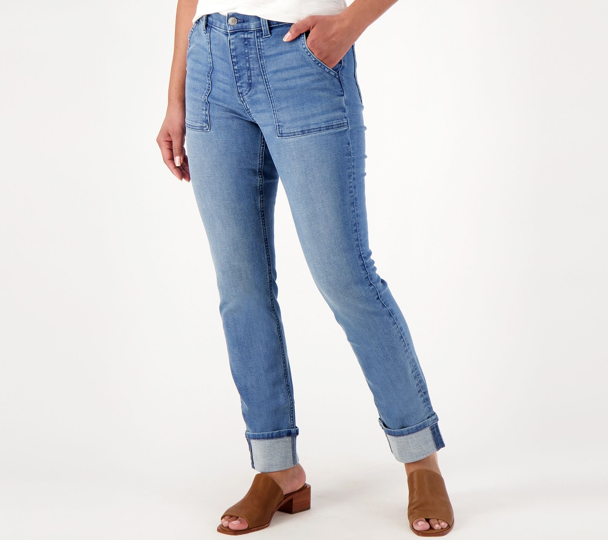 A bit of stretch and a stylish cuff make these utility jeans a favorite in your rotation. From Denim & Co.® Fashions.