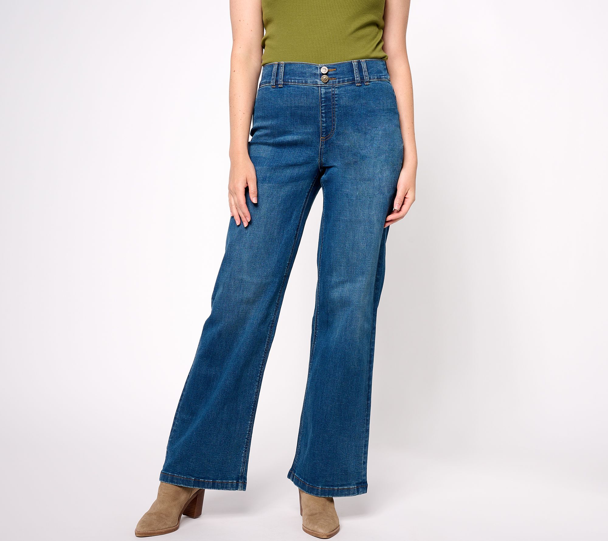 "As Is" Denim & Co. Easy Stretch Denim Regular Wide Leg Jean