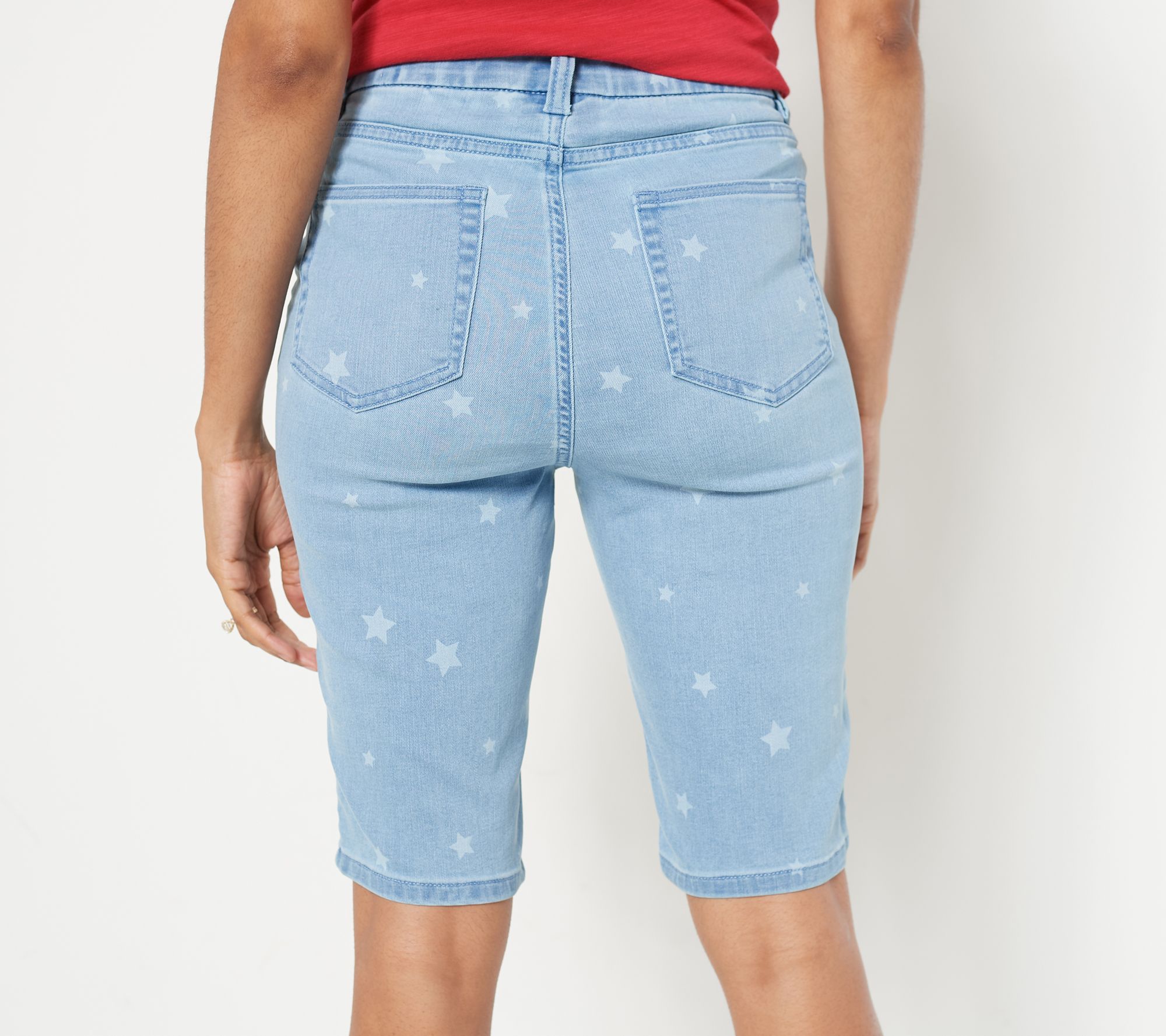 "As Is" Denim & Co. Easy Stretch Denim Star Print Bermuda Shorts