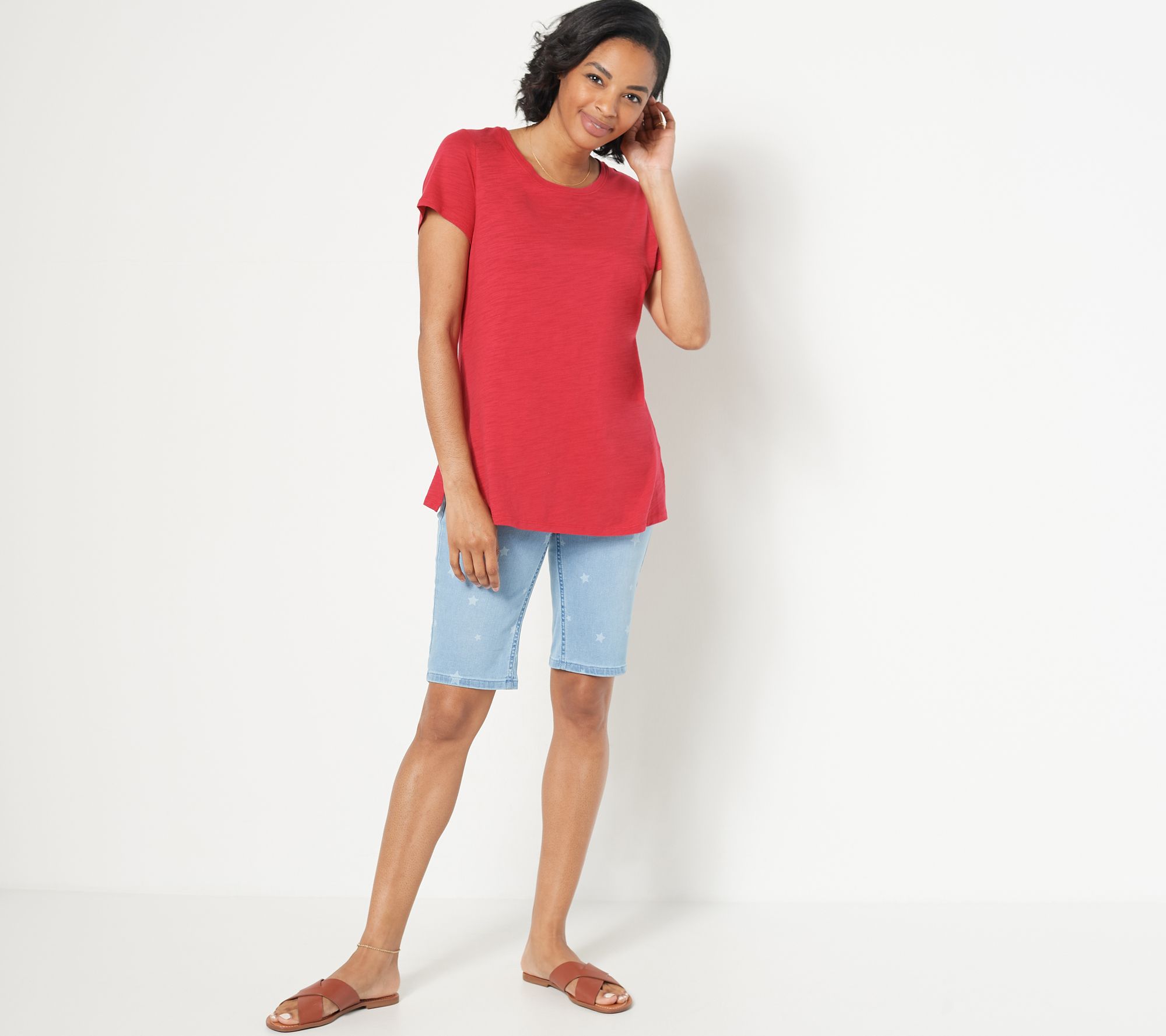 A star is born! Take a bow in these Easy Stretch Bermuda shorts and enjoy a super-comfy fabrication, just-right length, and (the best part!) a scene-stealing star print. From Denim & Co.® Fashions.