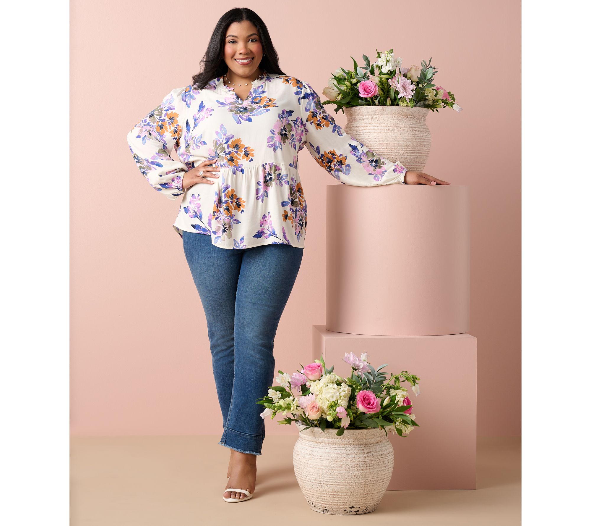 Frame those trendy loafers, colorful sneakers, or wedge sandals with the standout hems of these Easy Stretch jeans. A (faux) J-stitch fly and single button closure offer classic denim detailing. From Denim & Co.® Fashions.