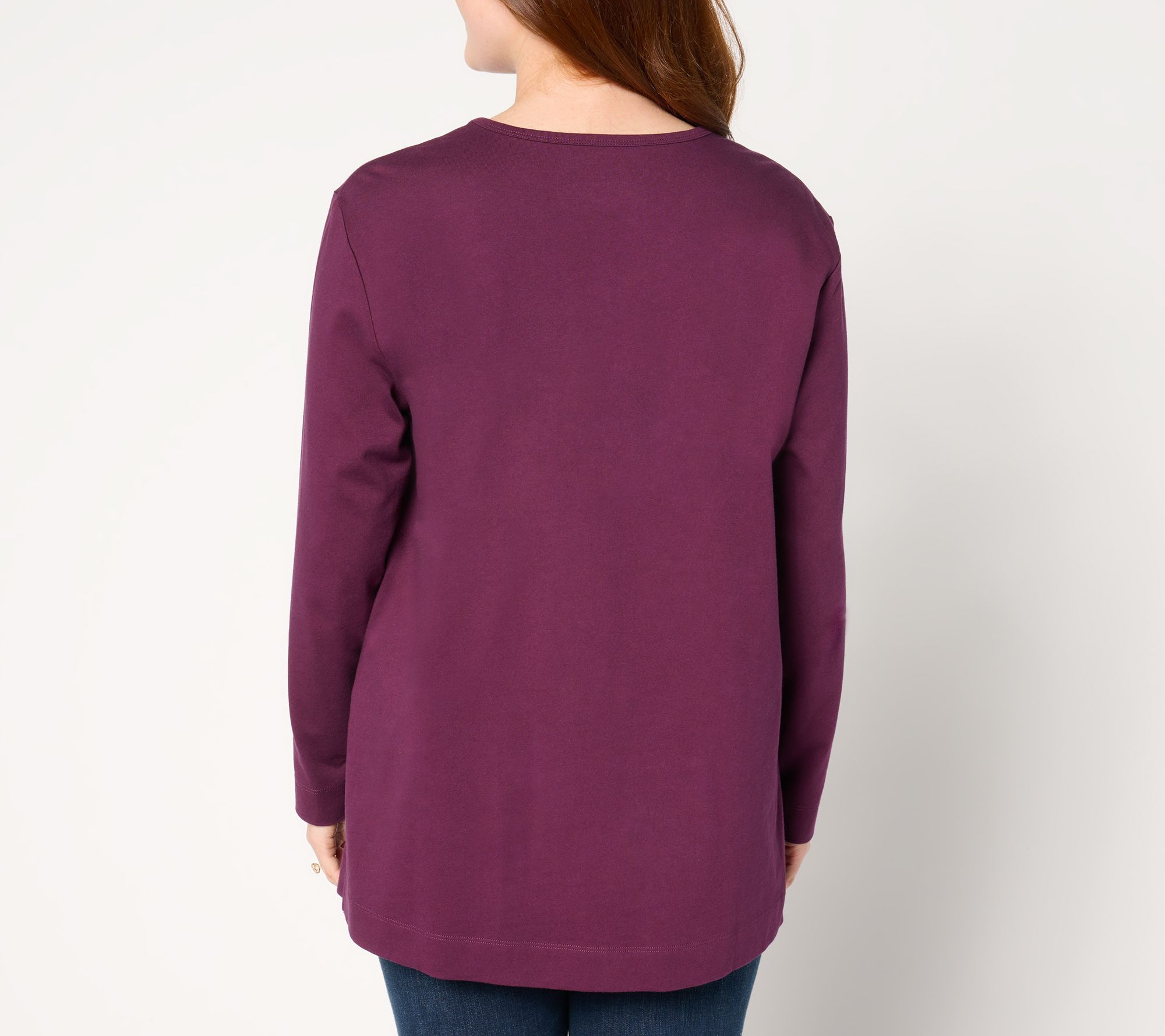 Enjoy effortless style and comfort with this cotton jersey oversized V-neck tunic. Its relaxed fit and slightly dropped shoulder make it perfect for casual outings or lounging at home. From Denim & Co.® Fashions.
