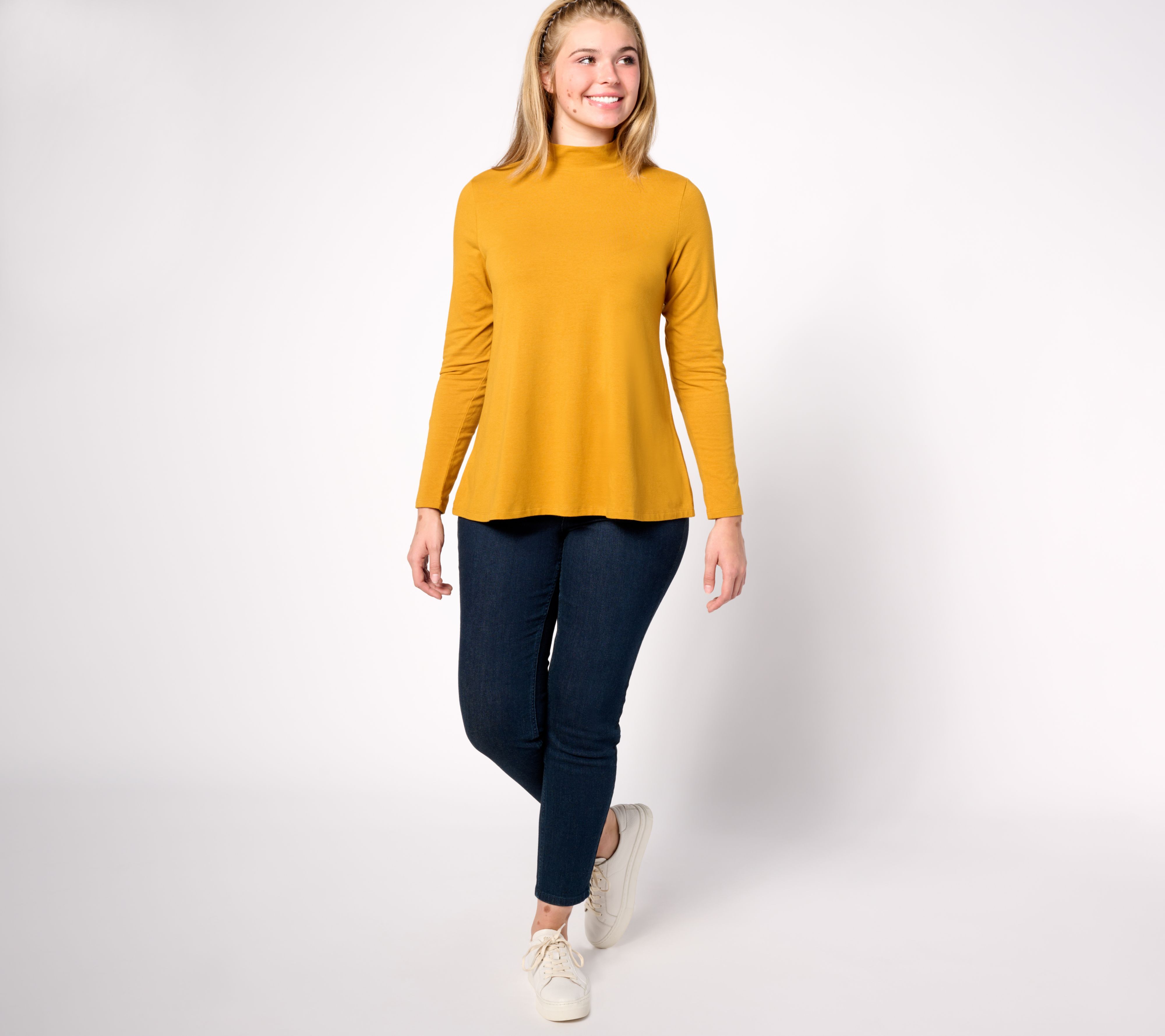 "As Is" Denim & Co. Essentials Favorite Jersey L/S Mock Neck Swing Top