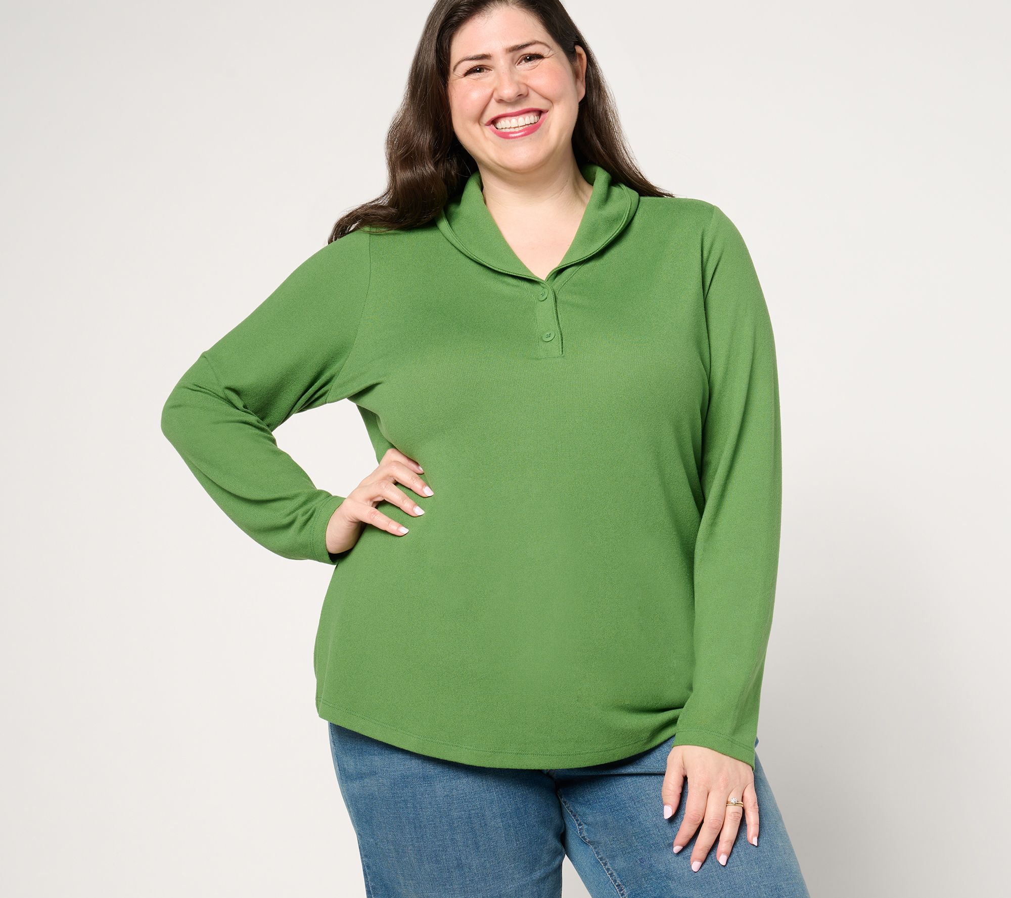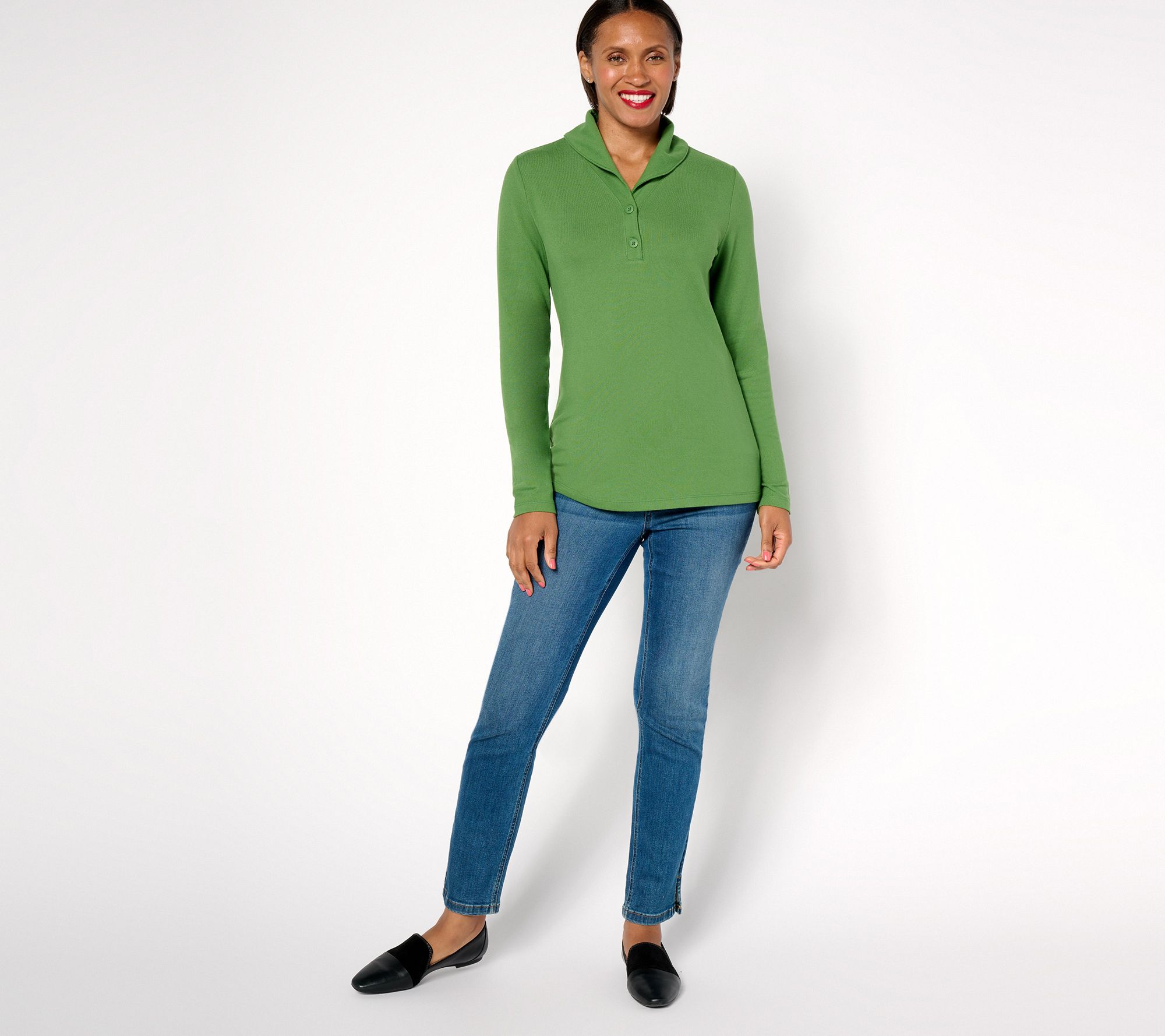 "As Is" Denim & Co. Essentials Heavenly Jersey Long Sleeve Henley Top
