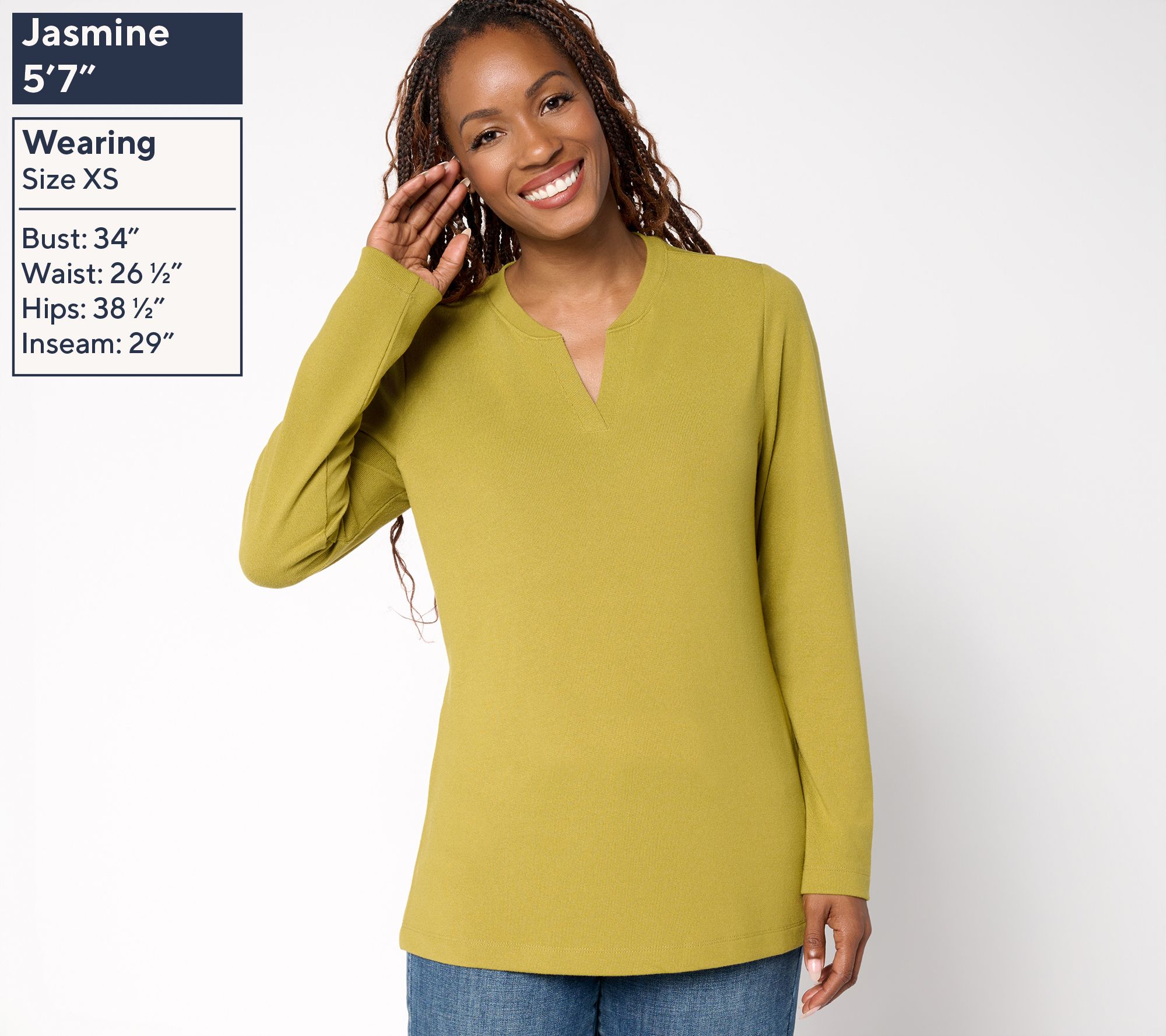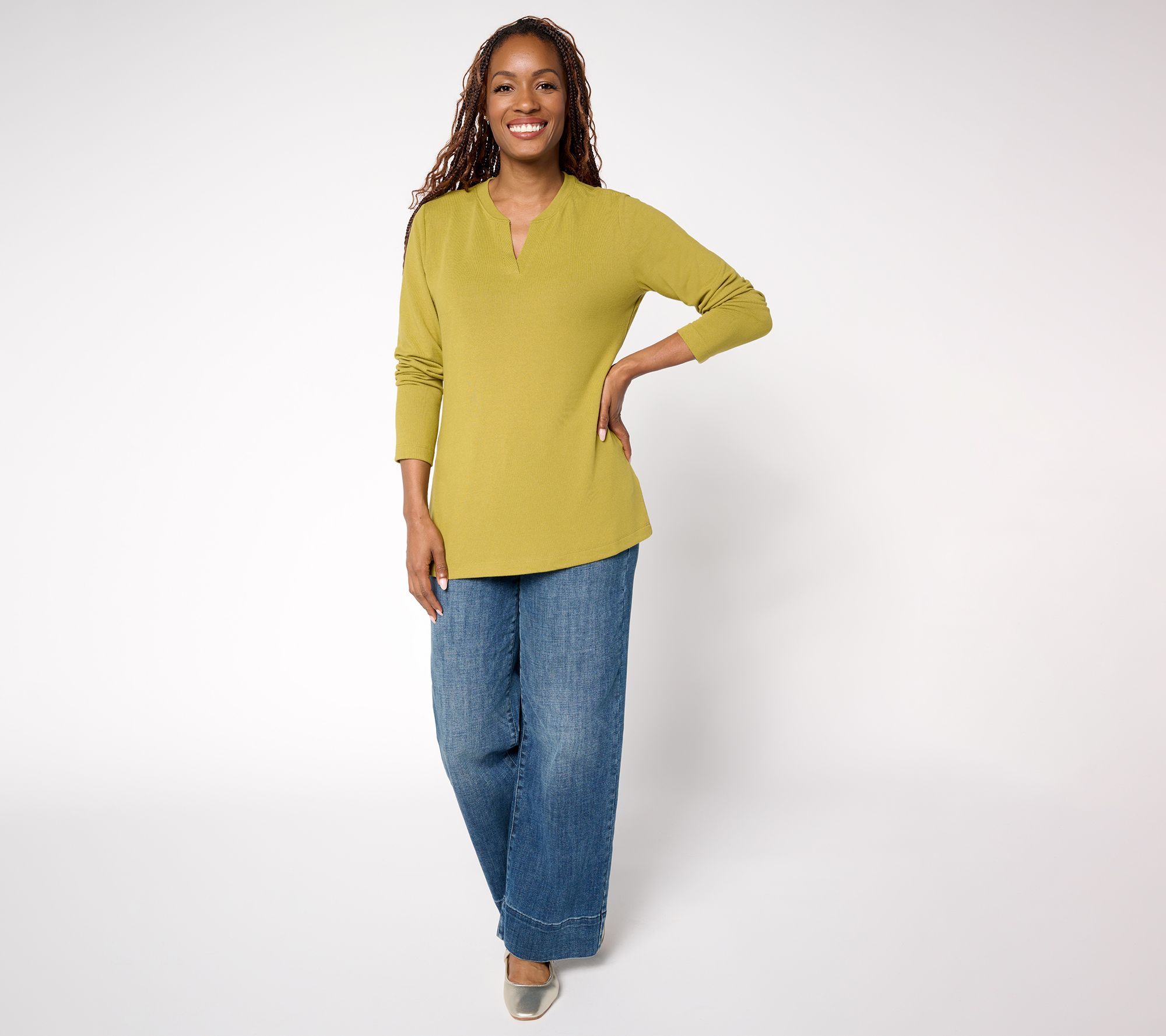 Bring extra ease to busy mornings and casual evenings with this essential top in soft Heavenly Jersey. The split neckline and long sleeves pair effortlessly with favorite jeans or tailored pants. From Denim & Co.® Fashions.
