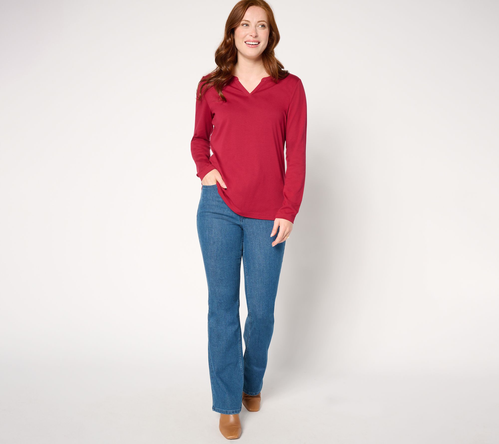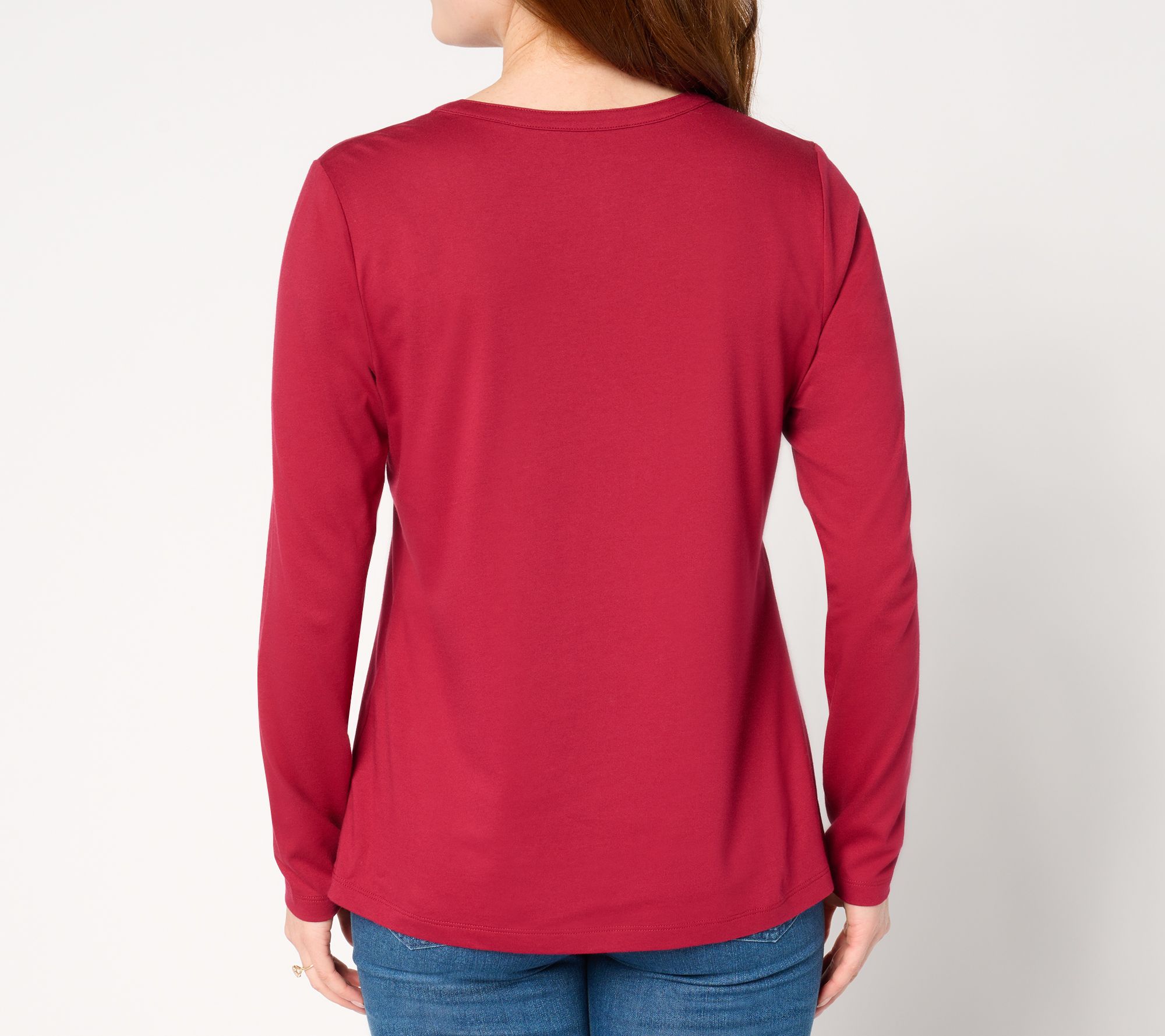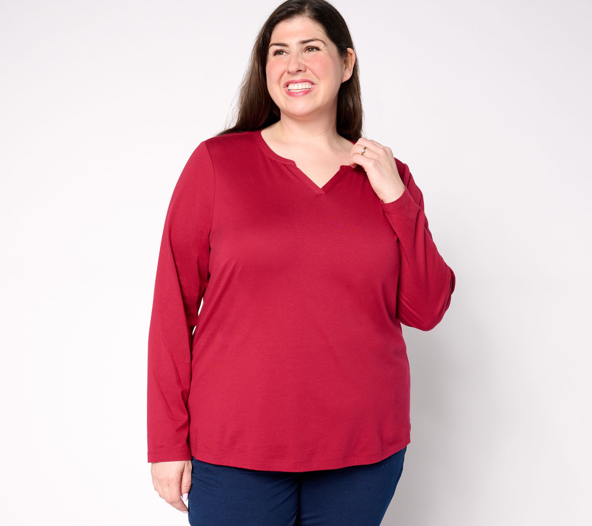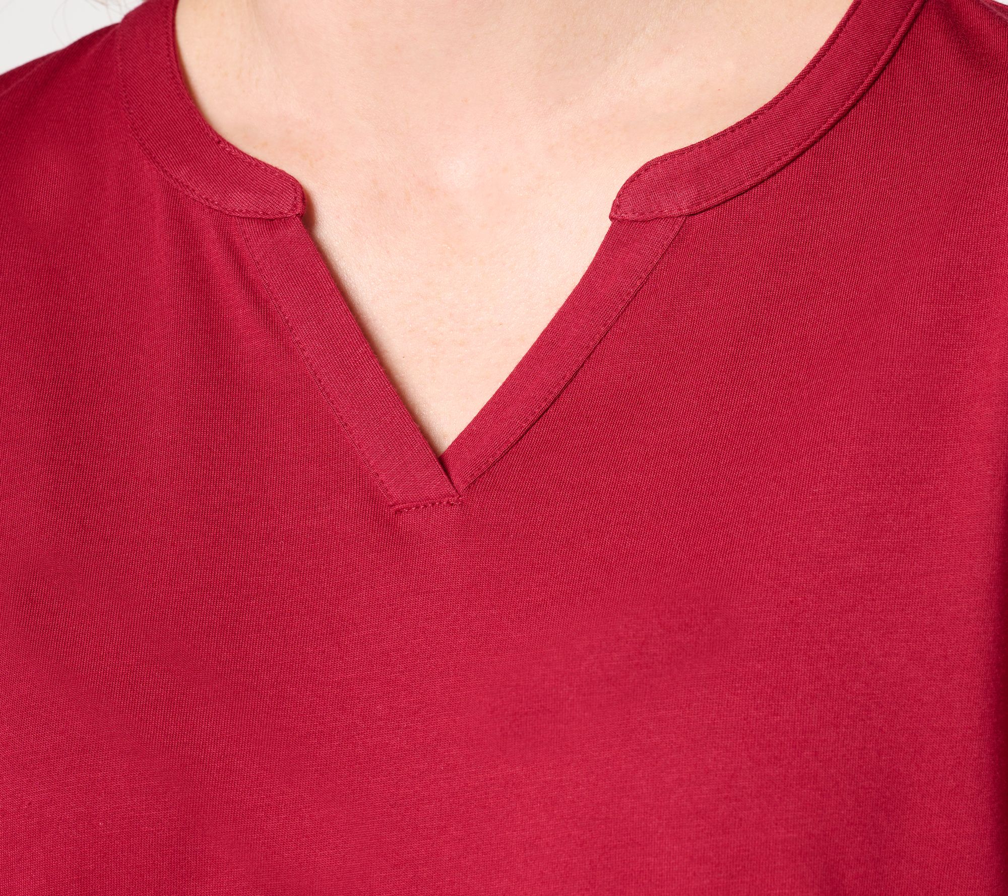"As Is" Denim & Co. Essentials Luxe Jersey Split V-Neck Long Sleeve Top