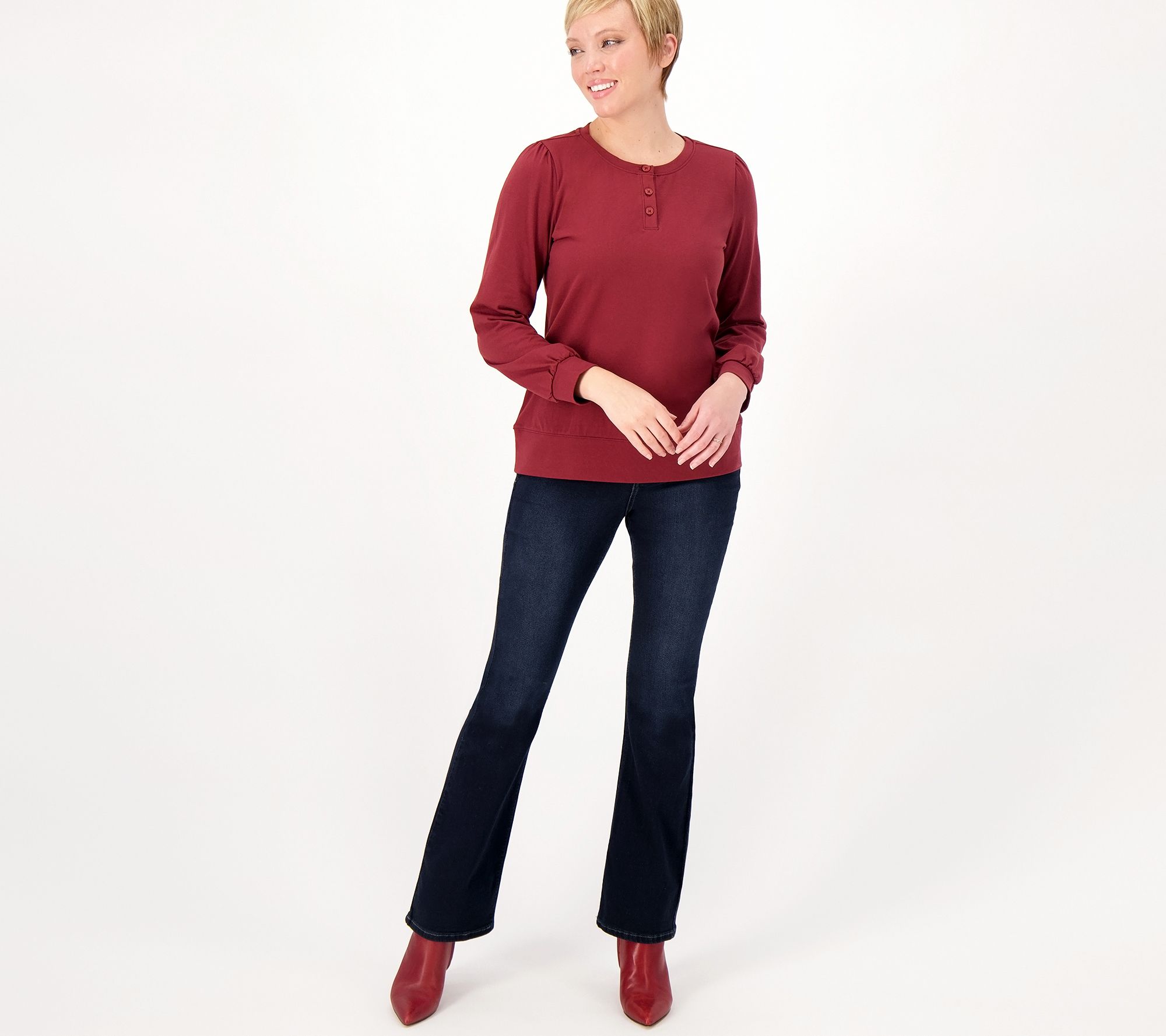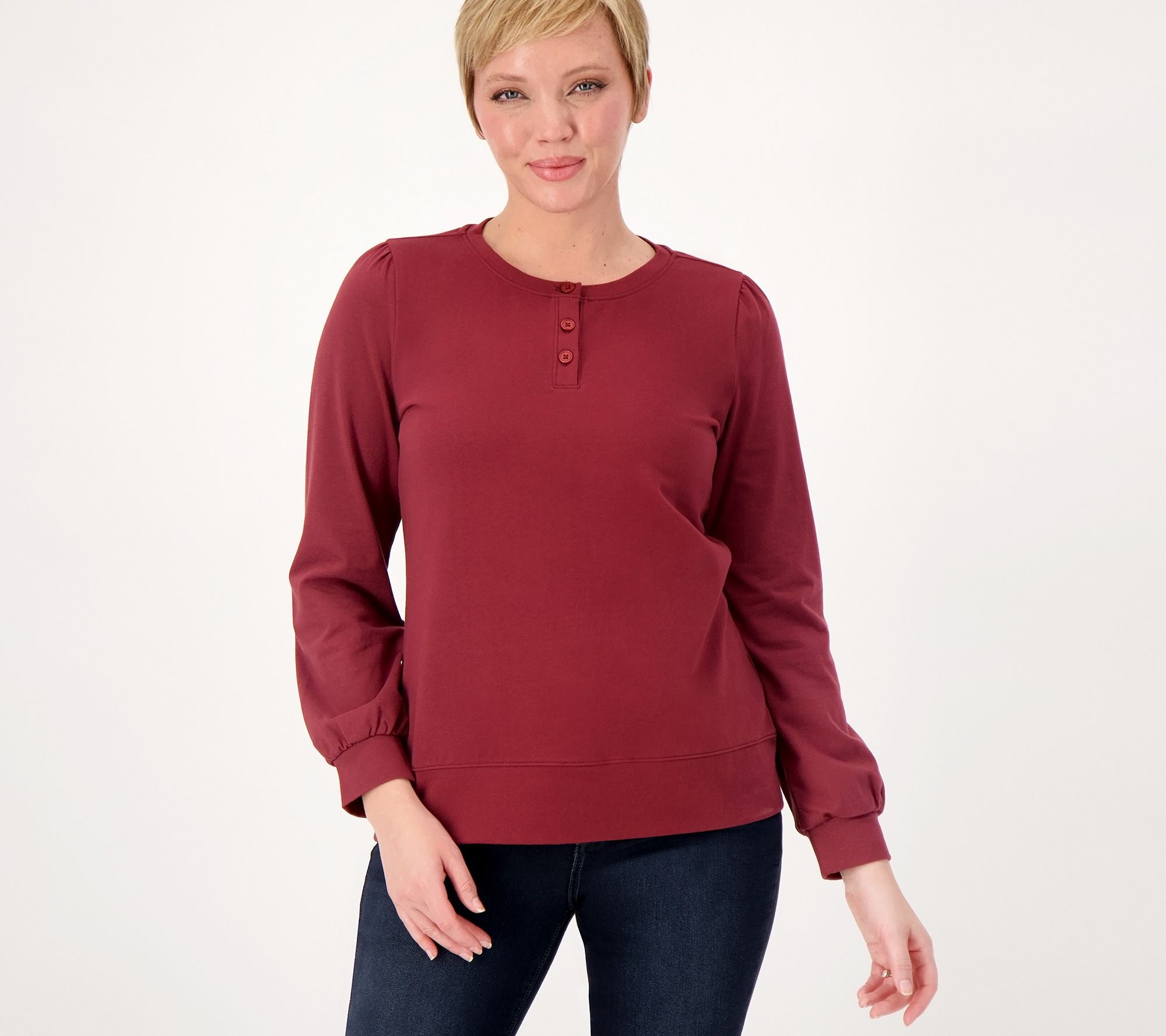 "As Is" Denim & Co. Essentials Perfect Jersey Button Henley Long Sleeve Top