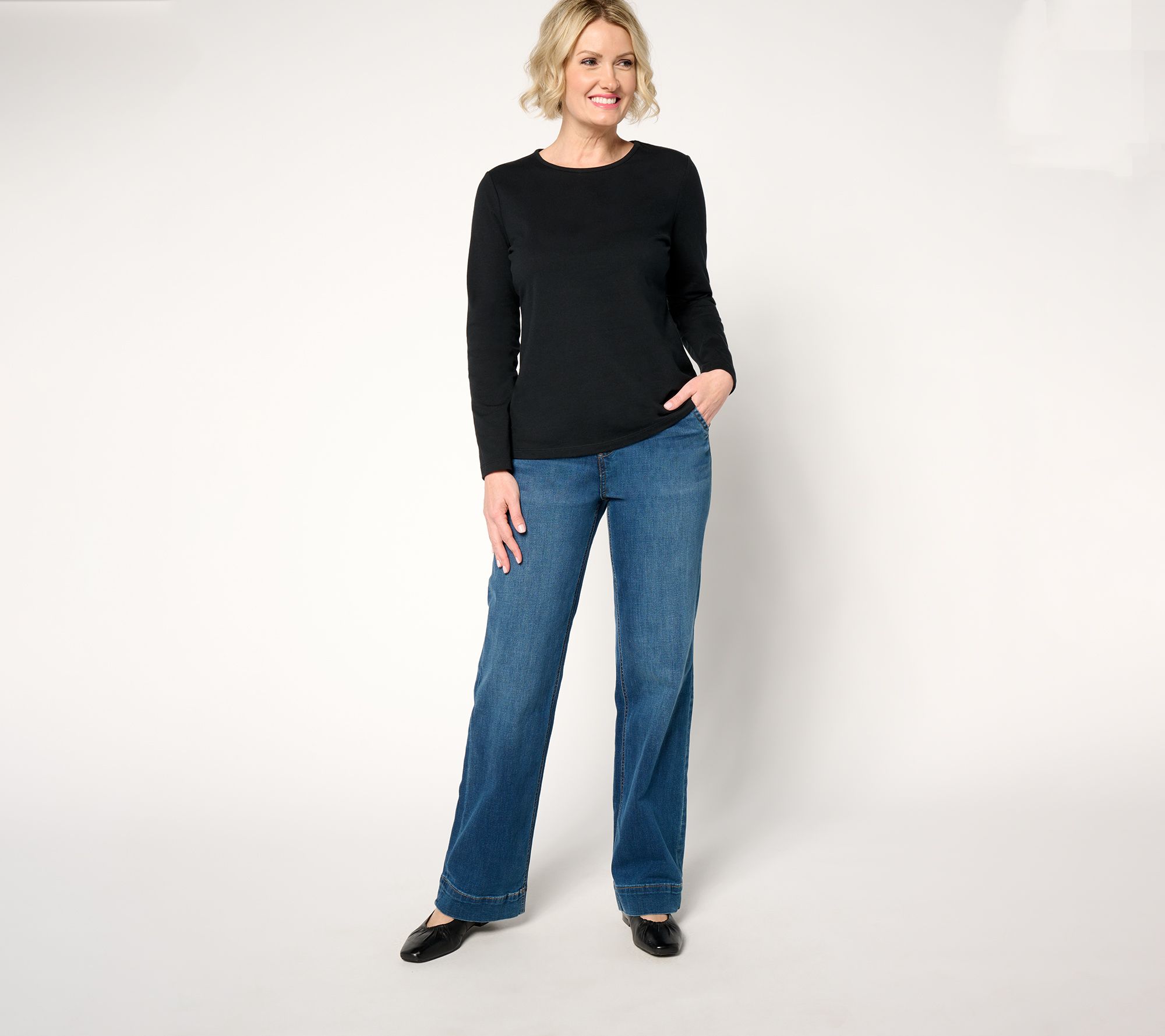 "As Is" Denim & Co. Essentials Perfect Jersey Long Sleeve Top