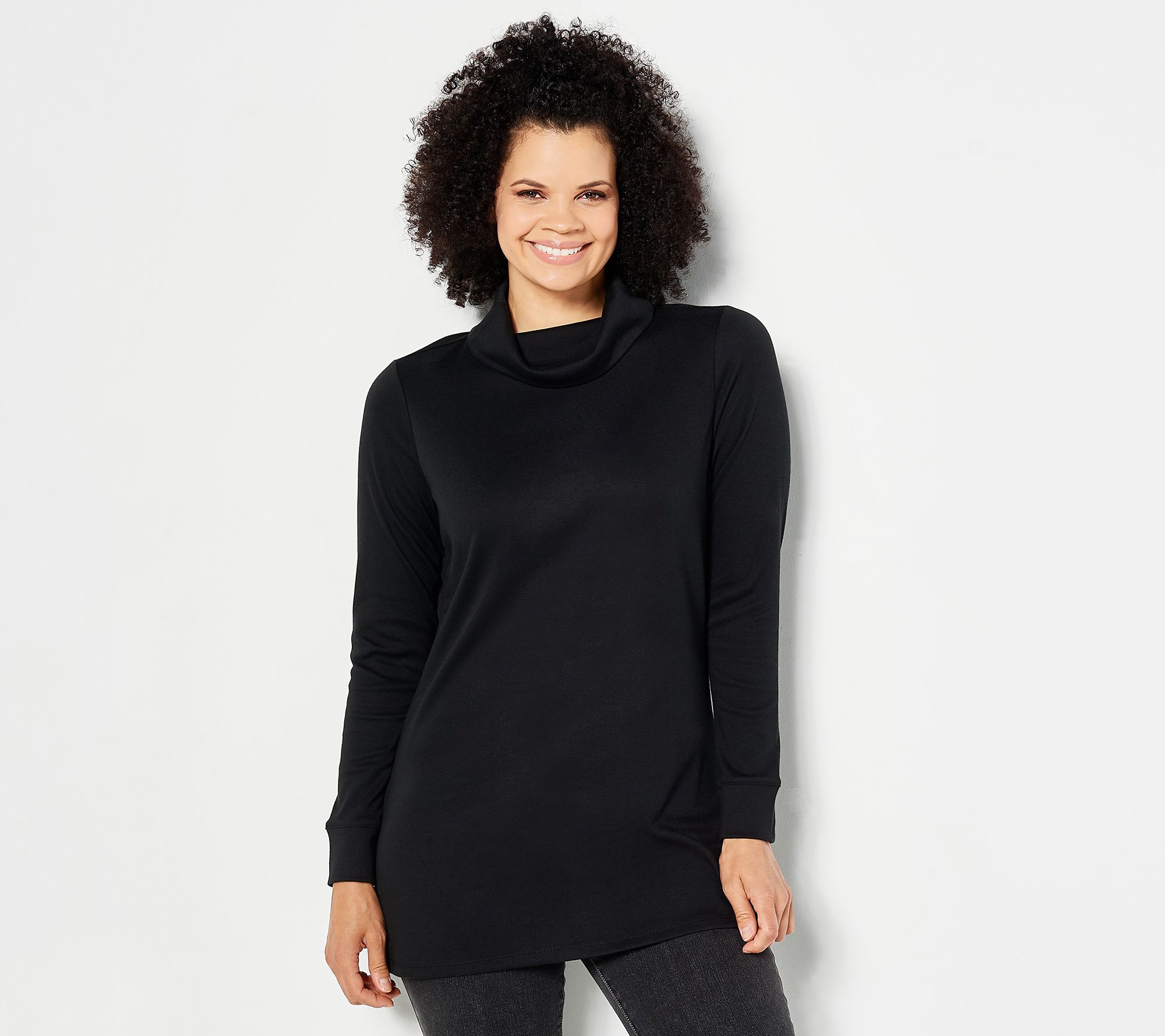 "As Is" Denim & Co. Essentials Petite Interlock Cowl Neck Tunic