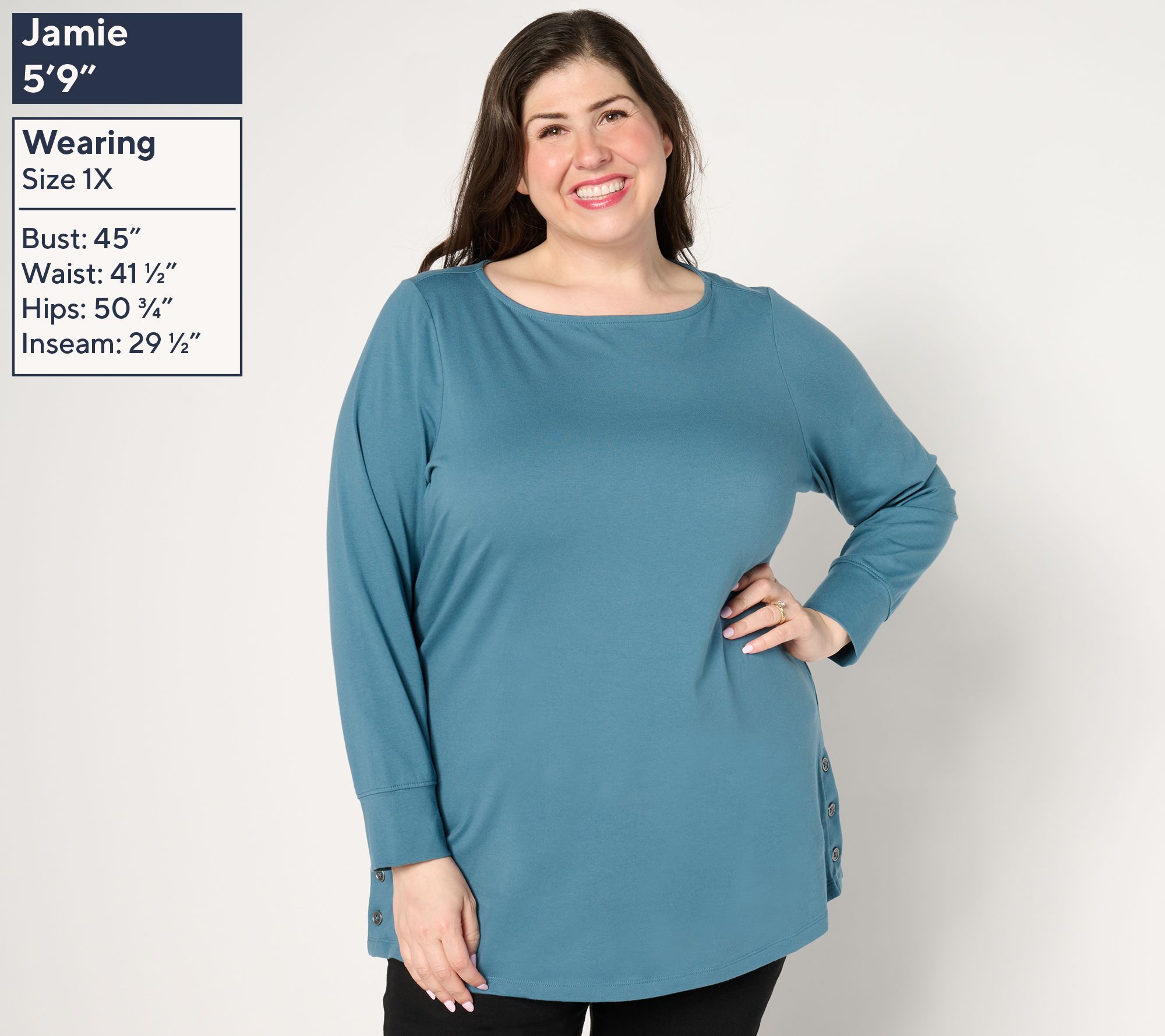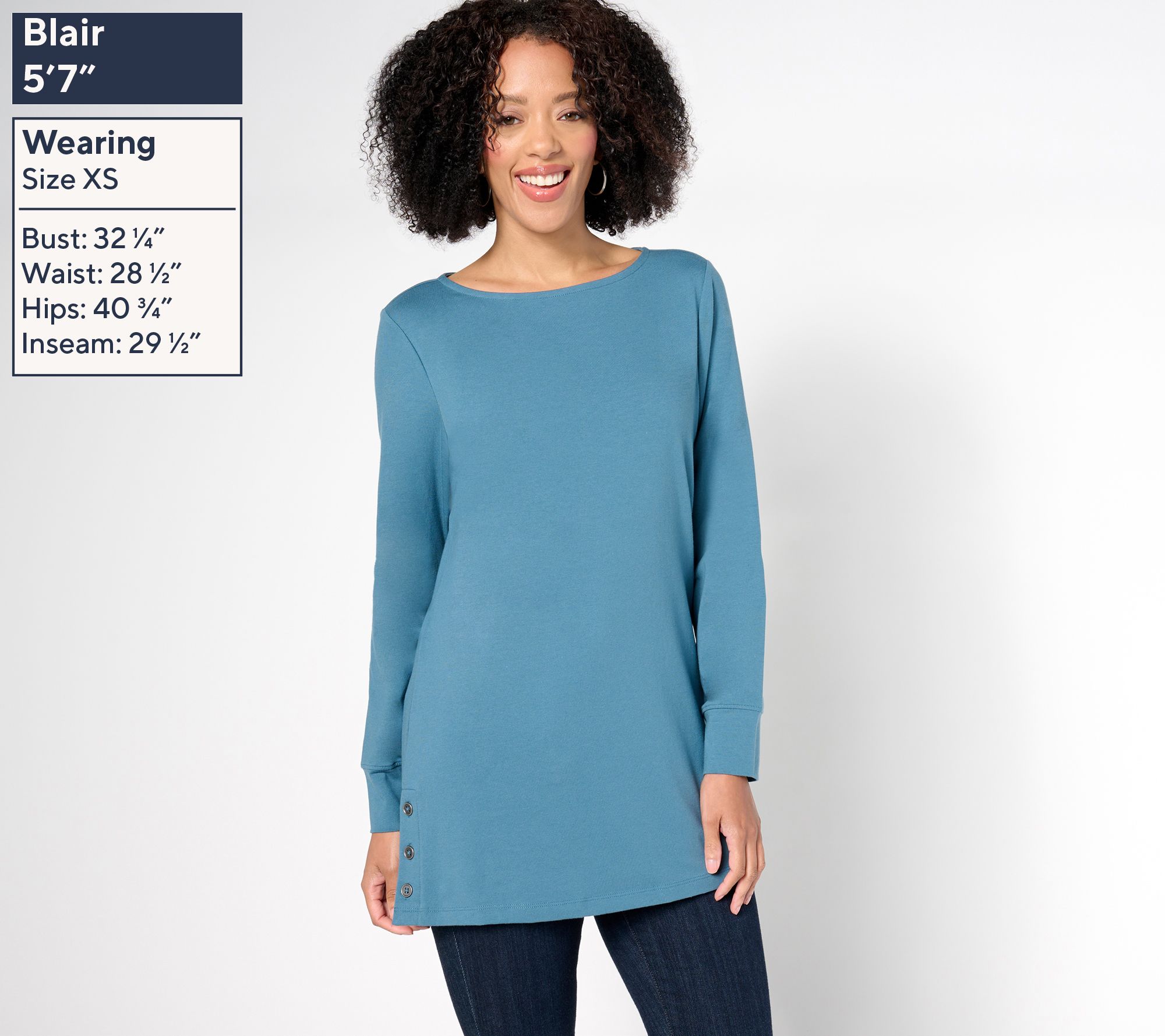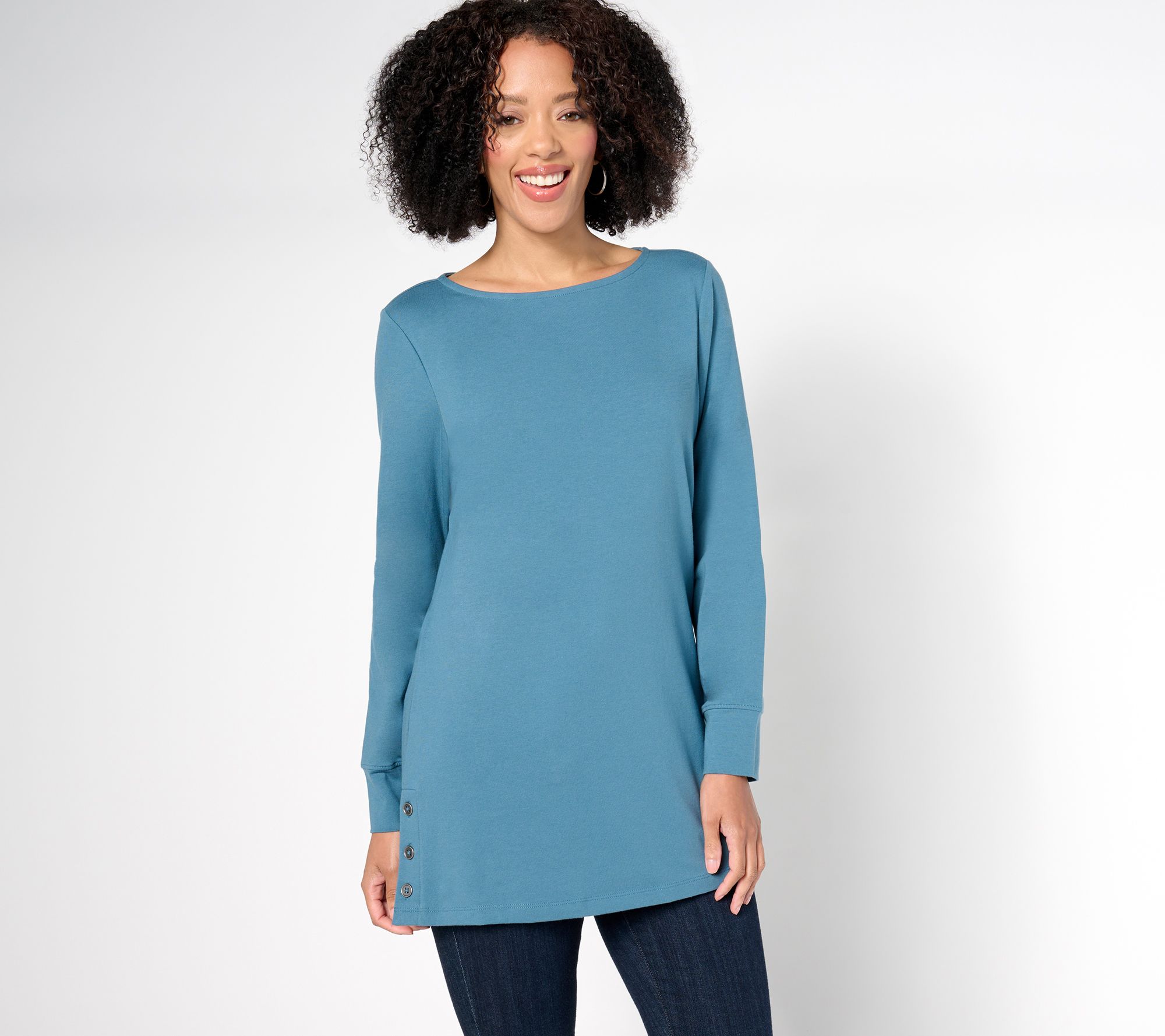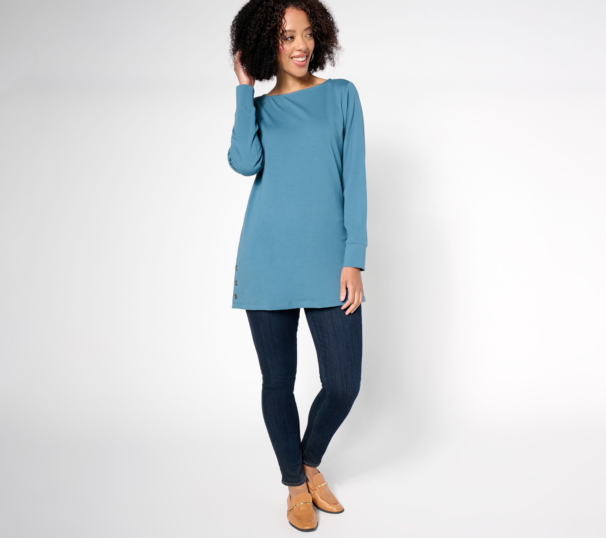 Make room in your closet for this essential boatneck tunic in Perfect Jersey. Effortless to pair with your favorite jeans or leggings (hello, extra length and adaptable buttoned sides), you'll wear it more than once in each and every weekly rotation. From Denim & Co.® Fashions.