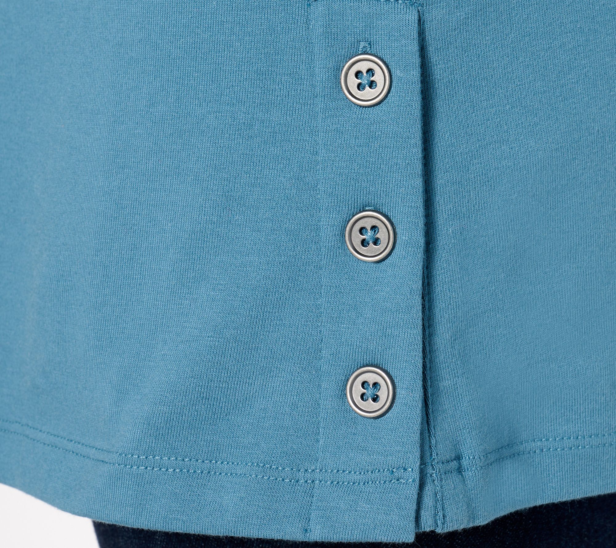 • Features: boat neckline, long sleeves, sleeve cuffs, side plackets with button detail along slit