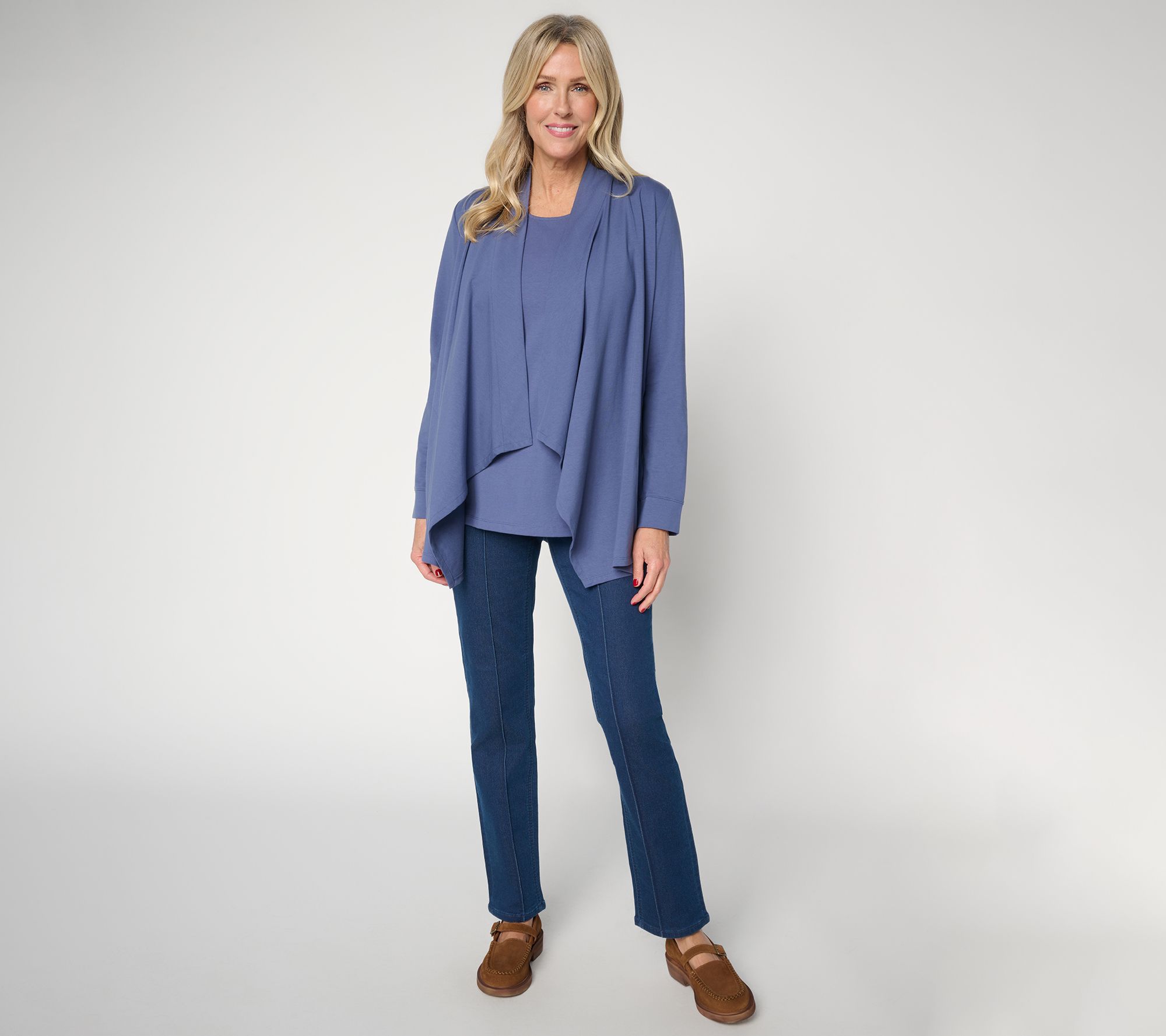 "As Is" Denim & Co. Essentials Regular Perfect Jersey Draped Cardigan