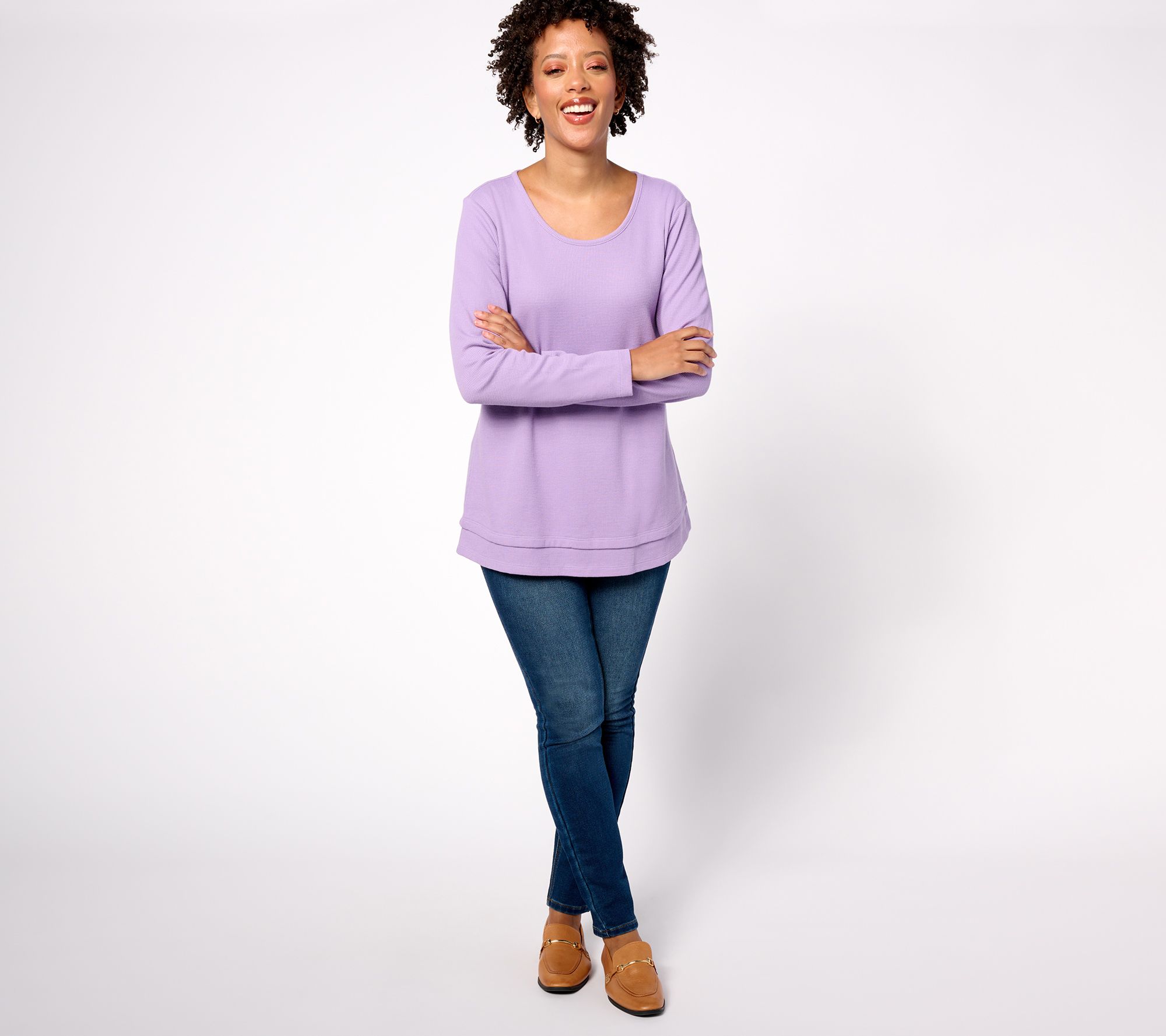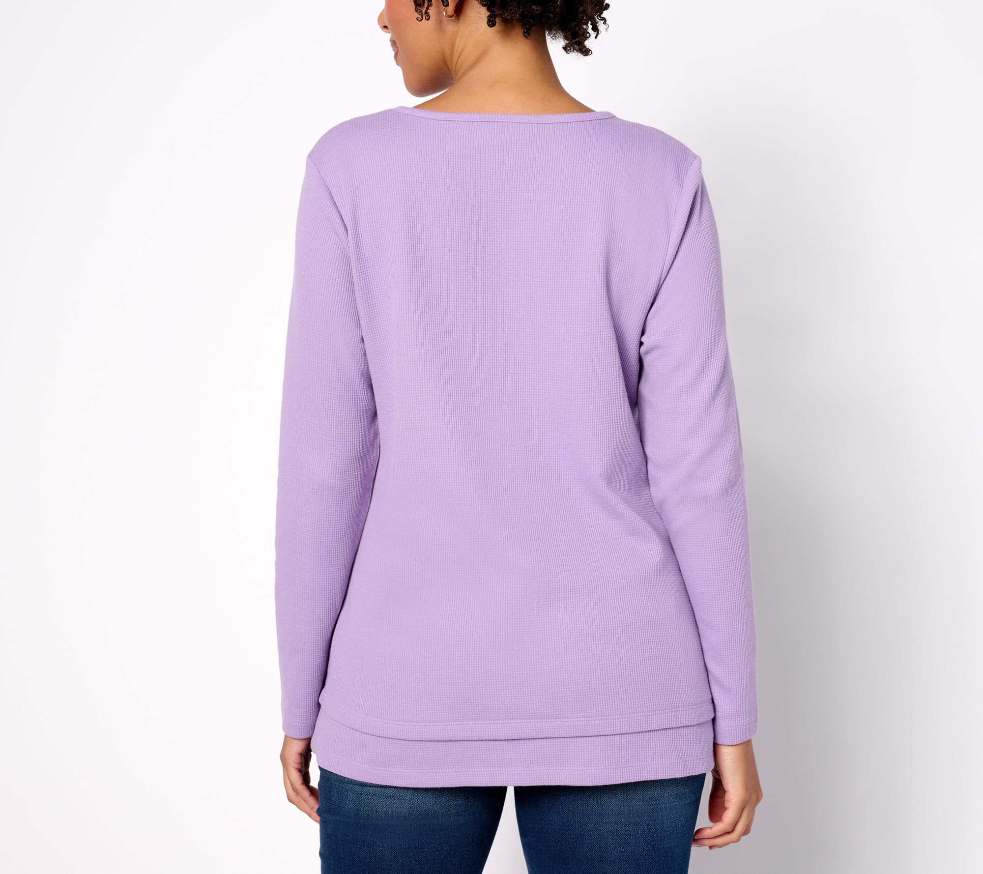 This classic waffle knit tunic is fashioned with a simple scoop neckline and a swing hemline. From Denim & Co.® Fashions.